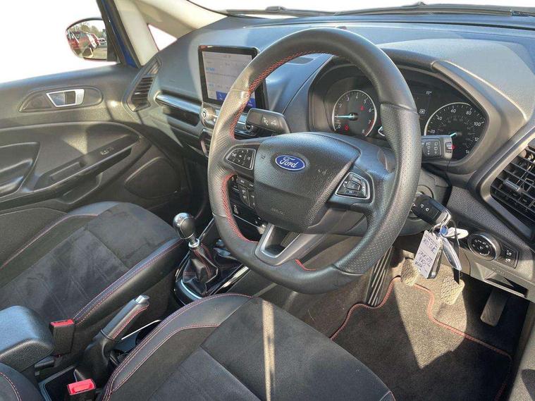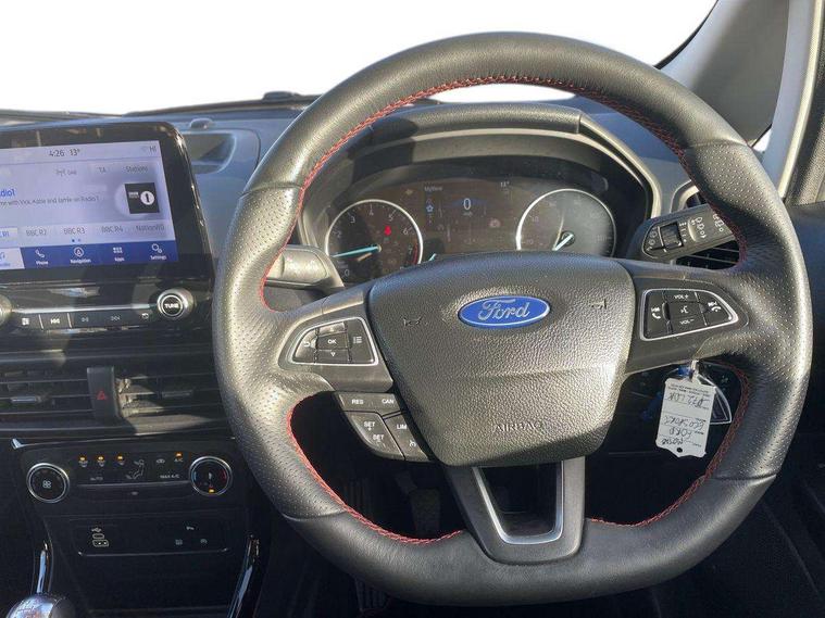 Cruise control, e-Call (emergency call), Easy fuel capless refuelling system, Ford SYNC 3 nav system with DAB radio, 8" screen, emergency assistance, Apple car play/Android auto, 2x USB, 6 speakers, Ford pass connect, Intelligent speed limiter, PAS, Rear parking sensors, Rear view camera, Traffic sign recognition, Trip computer, Sports suspension, Steering wheel mounted audio controls, Auto dimming rear view mirror, Automatic front wipers, Automatic headlights, Black roof rails, Body colour door handles, Body coloured bumpers, Chrome lower window surround, Electrically adjustable and heated door mirrors, Front fog lights, Front grille bars and surround in black, Headlight levelling control, Large rear roof spoiler, LED day running lights, LED third brake light, Power front and rear windows, Puddle lights, Quick-clear heated windscreen, Rear side wing doors, Rear wiper, ST Line body styling kit - Black headlamp bezel, front and rear sport bumpers, body colour lower door claddings, 12V socket in front and rear, 3 seat bench in 2nd row, 60/40 split rear seats, Ambient lighting, Centre console with sliding front armrest, Cooled glovebox, Courtesy lights with map reading light, Driver seat height/lumbar adjust, Driver's side glovebox, Driver/passenger sunvisors and lidded vanity mirrors, EATC - Electronic Auto Temperature control, Folding grab handles, Front head restraints, Front seat back map pockets, Illuminated glovebox, Illuminated luggage compartment, Isofix system on outer rear seats, Luggage compartment carpet, Neosuede/Partial sensico leather upholstery, Overhead console with sunglasses holder, Rake adjustable rear seats, Reach + rake adjustable steering column, Rear headrests, Sensico trimmed steering wheel, handbrake and gearshift gaiter with red stitching, Single front passenger seat, ST-Line Front floor mats with red stitching, Stainless steel sports pedals, Storage drawers under front seats, Tie down hooks, Variable boot floor, 3x3 point rear seatbelts, ABS, Autonomous emergency braking, Child locks on rear doors, Curtain airbags, Driver airbag, Drivers knee airbag, Electronic Stability Programme with hill launch assist, Front passenger airbag deactivation, Front side airbags, Passenger airbag, Pre collision assist system with AEB, Seatbelt reminder for driver and front passenger, Traction control, Tyre pressure monitoring system, Immobiliser, MyKey system, Remote central locking, Thatcham 1 volume sensing alarm, Low rolling resistance tyres, Tyre inflation kit,