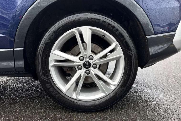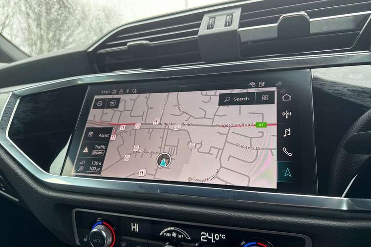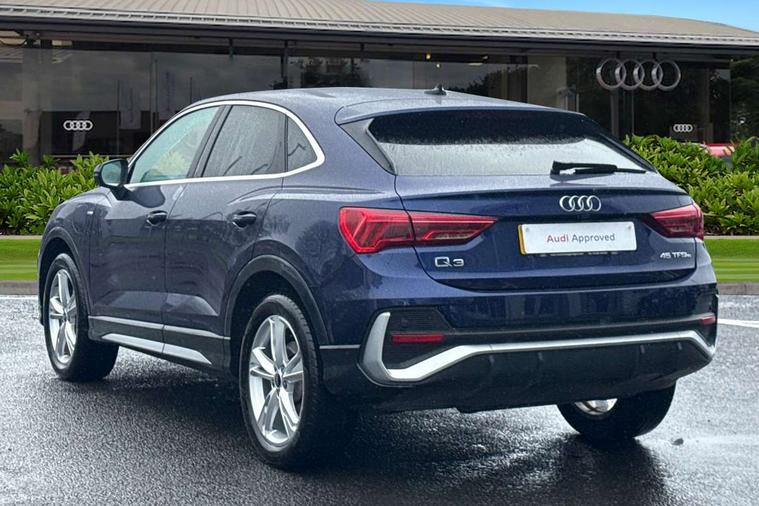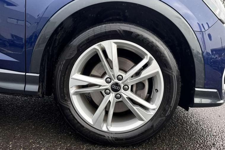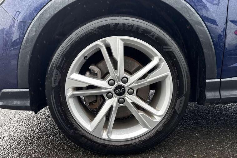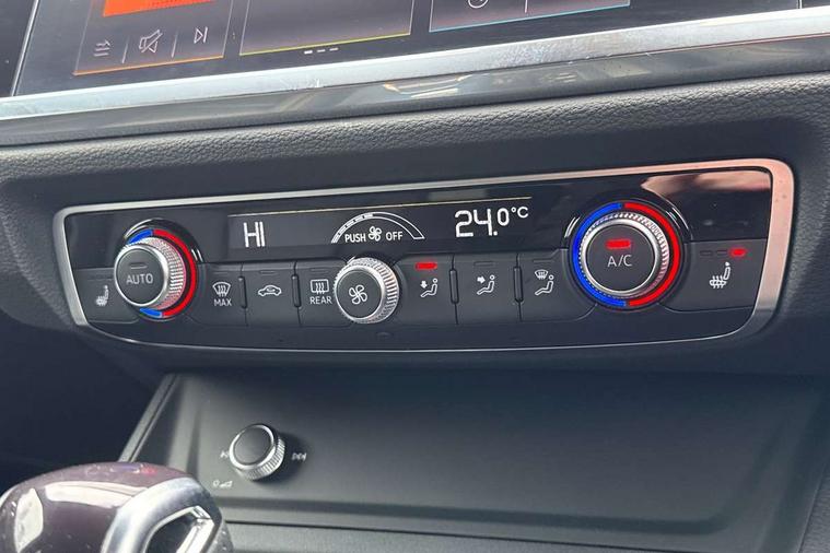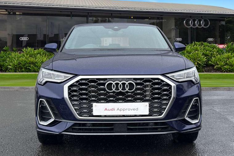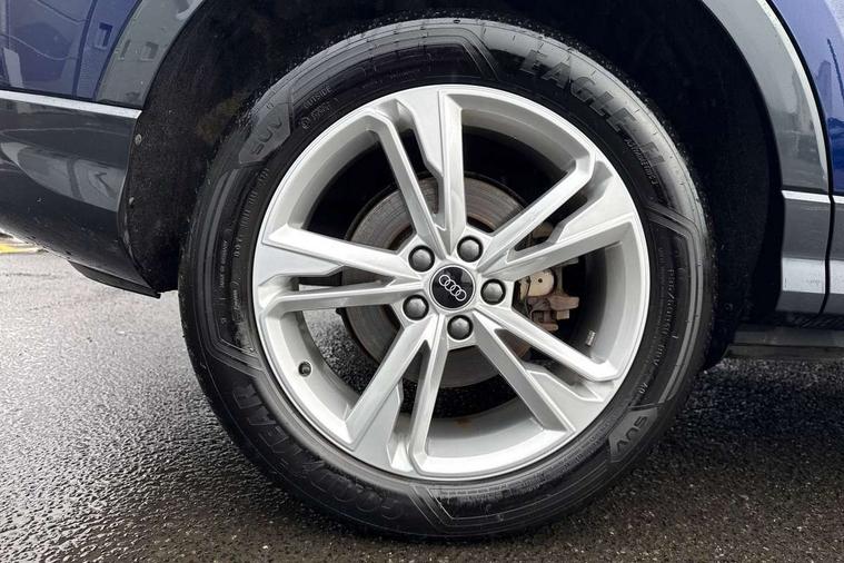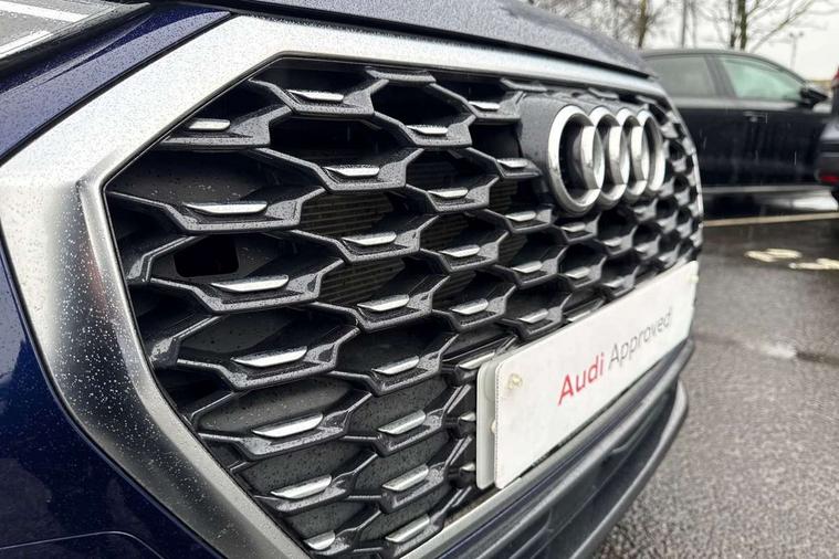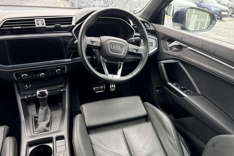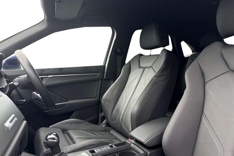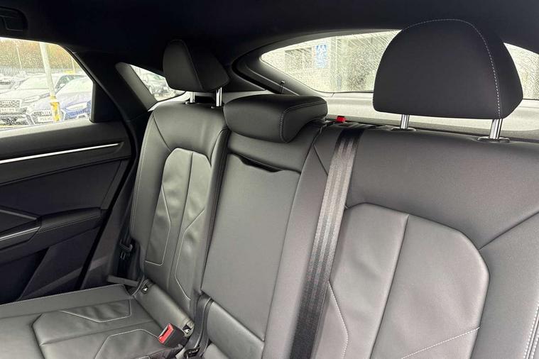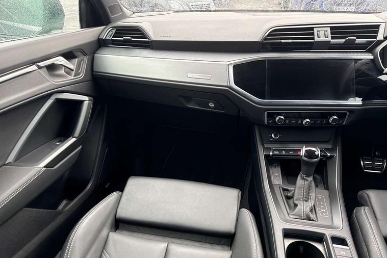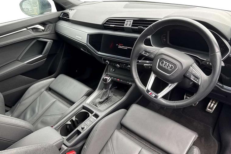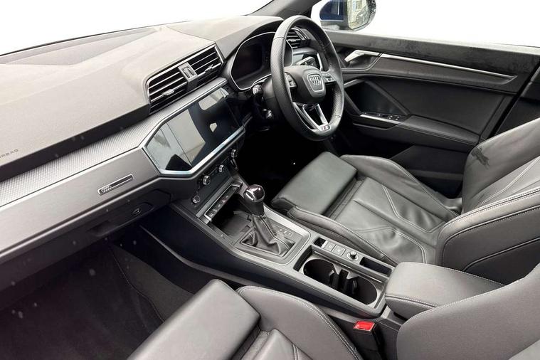 Audi drive select, Audi lane departure warning, Audi Virtual Cockpit - 10.25" display, Bluetooth interface, Camera based traffic sign recognition, Legal emergency call, MMI Navigation Plus with high resolution 10.1 inch touchscreen colour display, Power operated tailgate, Progressive steering, Service interval indicator, Smartphone interface includes wireless Apple carplay/Android Auto, Start stop system with recuperation, Voice control system with natural language interaction, 3 pin 10 amp domestic charging cable, 3.6 kw On-board charger, Standard suspension, Type 2 mode 3 32 amp charging cable, Type 2 socket for AC charging, 2 USB-C ports with charge and data functions, 6 passive loudspeakers, DAB digital radio module, Acoustic windscreen, Aluminium window trim, Auto dimming frameless rear view mirror, Diffuser grille in grained matt black, Diffuser trim in selenite silver, Electrically folding, adjustable and heated door mirrors with integrated LED side indicators and kerb view function for passenger side, Front and rear electric windows, Front fog lights, Front side air inlets in selenite silver, Front underbody protection in manhattan grey paint finish, Grille surround in aluminium silver matt, High gloss black finish B and C pillars, LED Dynamic rear indicators, LED headlights with LED daytime running lights, LED rear lights, LED third brake light, Privacy glass dark tinted rear and rear-side windows (from B-pillar backwards), Radiator grille in anthracite black with inlay in matt aluminium silver, Rain and light sensors, Rear side wing doors, Rear underbody protection in matt black, Rear wiper, S line badges on front wings, S line front and rear bumpers and side skirts in contrasting Manhattan grey paint finish, Side skirt insert in matt Platinium grey, Variable front intermittent wipers, 12V socket in rear centre console, 3 seat bench in 2nd row, 3 spoke leather multifunction steering wheel features S badging and grips in perforated leather with contrast stitching, 40:20:40 folding with manual adjustment for 60:40 forwards/backwards position and backrest angle, Adjustable rear seat bench/backrest with centre armrest and cupholder, Black cloth headlining, Dual zone electronic climate control, Front and rear black floor mats with contrast stitching, Front and rear headrests, Front and rear roof module including reading lights, Front centre armrest, Glove compartment lighting, Height and reach adjustable steering wheel, Illuminated door sill trims with S logo, ISOFIX child seat mounting for front passenger with airbag deactivation and outer rear seat including top tether attachment point for outer rear seats, Luggage compartment light right in white, Luggage compartment sill protection in stainless steel, Manual front seats with height adjustment, Perforated leather gearknob, Single front passenger seat, Stainless steel pedals, Ambient lighting pack - Q3, Non smoking pack - Q3, 3x3 point rear seatbelts, 6 airbags - Driver, front passenger, curtain and side windows, Audi pre-sense front with pedestrain and cyclist recognition, Electrically operated child locks on rear doors, Electromechanical parking brake, Electronic stabilisation control including ABS, ASR and EDL, Front seatbelt reminder, Hill descent control, Hill hold assist, Pre sense basic, Seatbelt monitoring, Tyre pressure warning, Warning triangle and first aid kit, Anti theft alarm, Anti theft wheel bolts, Immobiliser, Remote central locking, Aluminium look interior elements, Black dashboard, Dark matt brushed aluminium inlay, Detail dashboard around MMI touch colour display in glass look, black with surround in aluminium look, Leatherette door armrest, Tool kit, Tyre repair kit,