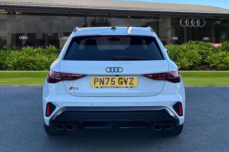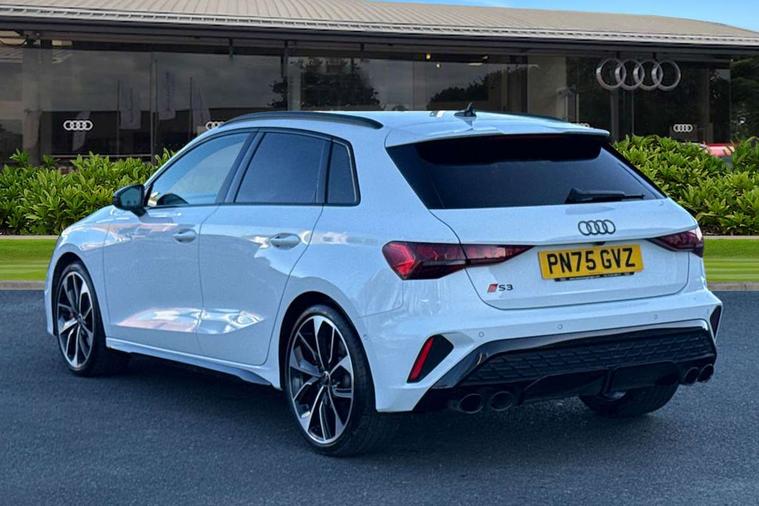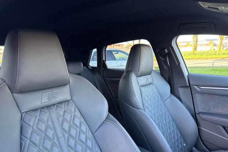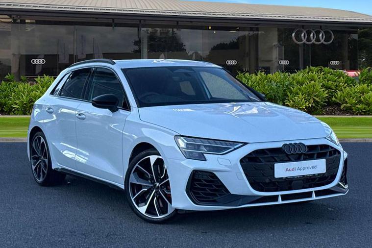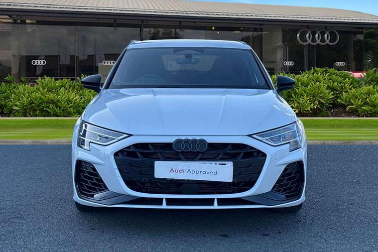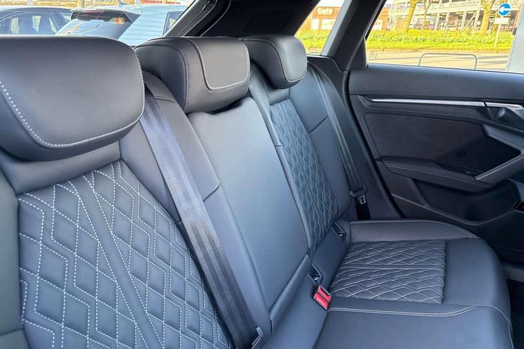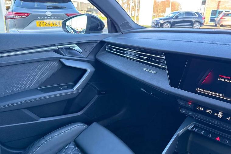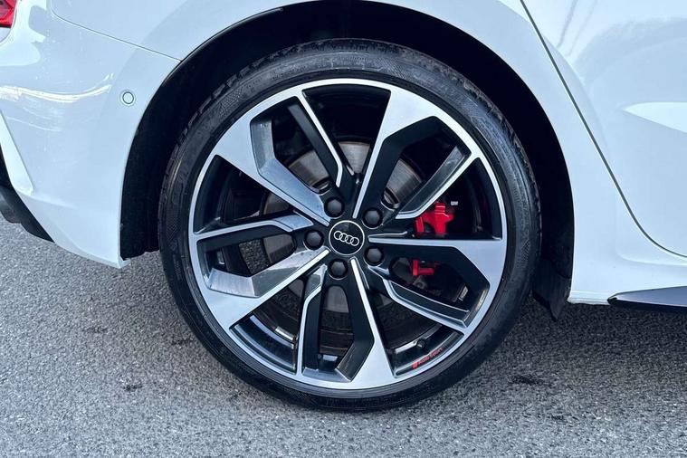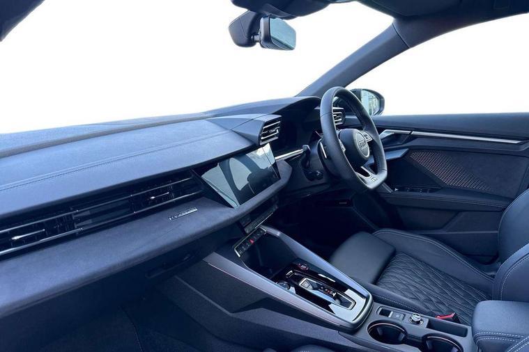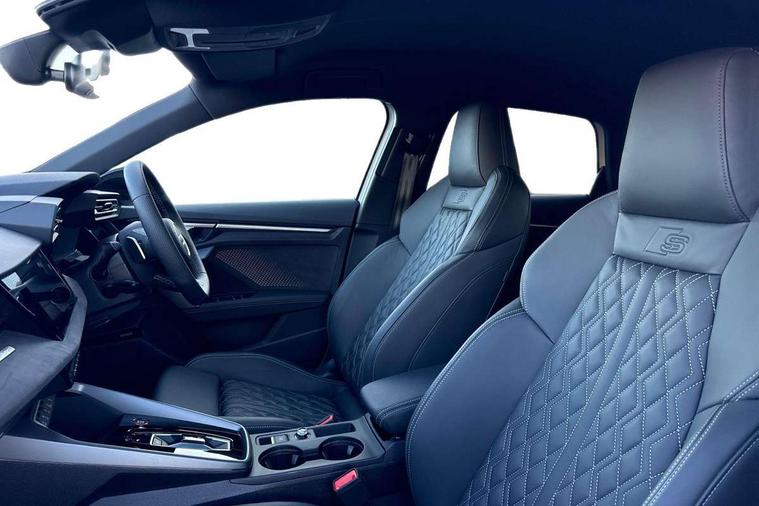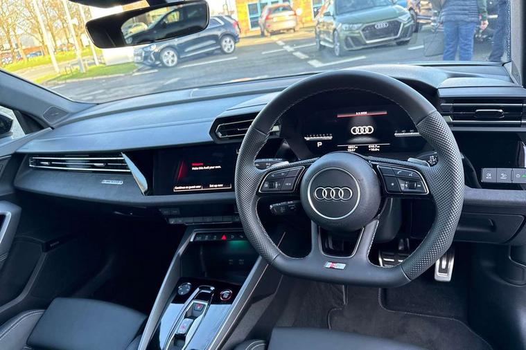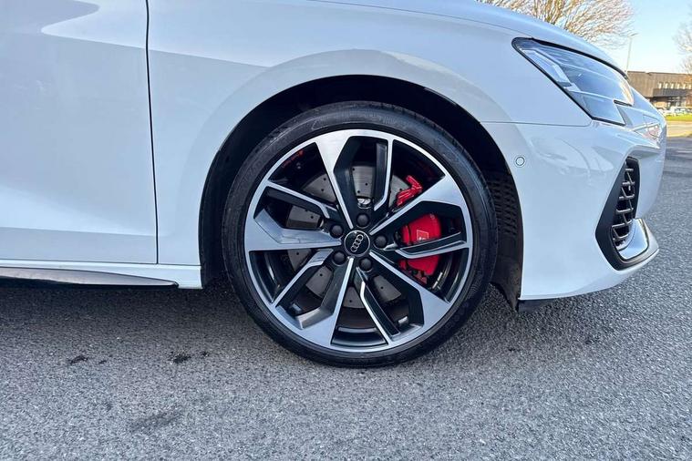 Adaptive cruise control (ACC), Adjustable speed limiter, Audi drive select (Auto, Comfort, Dynamic, Efficiency and Individual), Audi virtual cockpit plus - 12.3" full HD resolution dynamic digital instrument cluster, Automatic start/stop system with recuperation, Bluetooth interface, Camera based traffic sign recognition, Collision avoidance assistant, Driver attention and fatigue detection, e-Call (emergency call), Emergency assist, Intersection assist, Lane departure warning system, MMI Navigation Plus with high resolution 10.1" colour touch screen display, Park Assist with parking system Plus, Progressive steering, Reversing camera, Service indicator, Smartphone interface with app store includes wireless Apple carplay, Android auto and Amazon alexa integration, Trip computer, Voice control system with natural language interaction, quattro permanent all-wheel drive with torque splitter, S sport suspension with spring damper adjustment and lowering by 15mm, Audi Phonebox light with wireless charging, DAB Digital radio, USB ports with charging function in the rear, Anthracite grey Audi rings (front and rear), Audi Beam uses LEDs to project the rhombus S logo onto the ground as you exit your S3, Auto dimming frameless rear view mirror, Black accents front and rear bumpers including air inlets, Black accents in front grille and frame, Black accents in window trims, Electrically adjustable/heated/folding/auto dimming door mirrors with integrated LED indications + kerb view function for passenger side, Exterior model badging, Front and rear side air inlets in grained matt black with dark liquid chrome frame, Front electric windows, Front radiator grill in high gloss dark chrome, Heat insulating glass windscreen, Illuminated door sills with aluminium inserts at the front with S logo, LED 3rd brake light, Light and rain sensors, Privacy glass - dark tinted rear window, rear door and side windows, Rear diffuser and grill in grained matt black with inlay in dark liquid chrome, Rear electric windows, Rear side wing doors, Rear wiper, S grille, S3 front bumper with S specific air intake grilles, S3 roof spoiler, Side sill trim in dark liquid chrome, 12V socket and storage compartment in front centre console, 3 seat bench in 2nd row, 3 spoke flat bottomed leather multifunction sport steering wheel with gear shift paddles, 3-zone deluxe automatic air conditioning, 4 way electrically adjustable lumbar support for driver and front passenger, 40/20/40 split folding rear seat bench, Black cloth headlining, Black front and rear floor mats, Fine Nappa leather upholstery with front sports seats S embossed logo, Front and rear centre armrest in artificial leather with contrasting stitching on armrests and instrument panel, Front and rear headrests, Heated front seats, Height and reach adjustable steering wheel, i-Size child seat mounting on the front passenger side and outer rear seats, i-Size and top tether on the outer rear seats, Manual boot compartment lid, Manually adjustable front seats, Rear centre armrest with cupholder, S badging on the steering wheel, Seat side bolsters, Single front passenger seat, Stainless steel pedals and front footrest in black, Aluminium interior elements pack - A3, Storage package - A3, Technology pack with Matrix LED headlights - A3, 3x3 point rear seat belts, Driver and front passenger airbag with passenger airbag deactivation, Electronic Stabilisation Control (ESC) including ABS, ASR and EDL, First aid kit with warning triangle and 2 safety vests, Front side airbags with head airbags and interaction airbag, Hill hold assist, Pre-sense front with pedestrian and cyclist detection, Seatbelt monitoring, Tyre pressure loss indicator, Anti theft alarm, Anti-theft wheel bolts, Electronically operated child locks, Immobiliser, Black dashboard, Tyre repair kit,