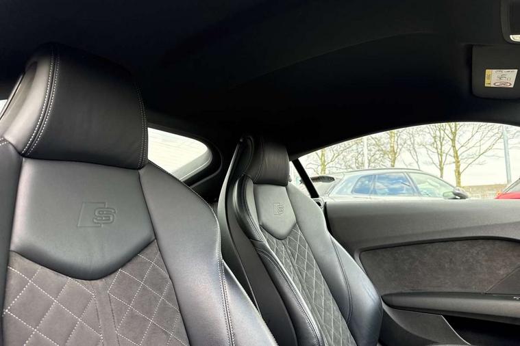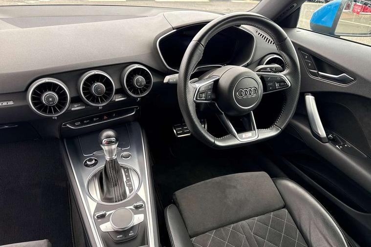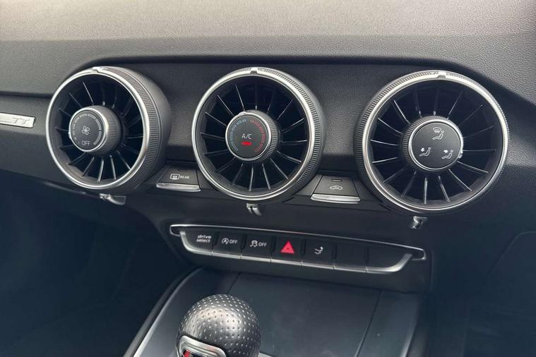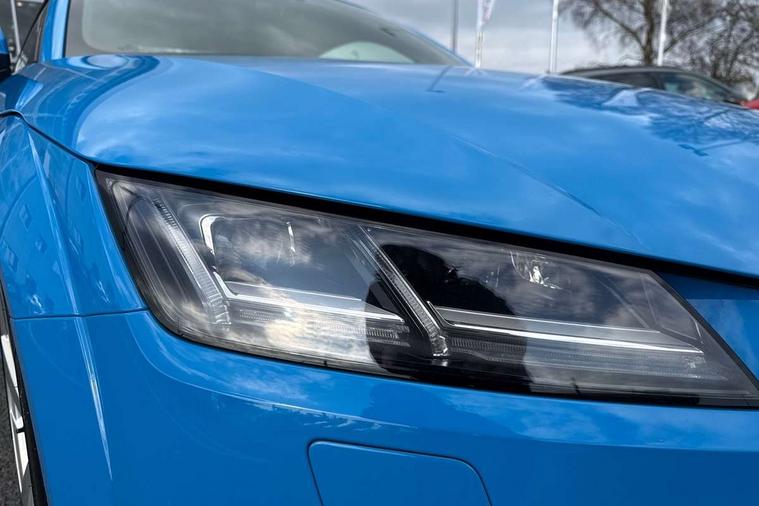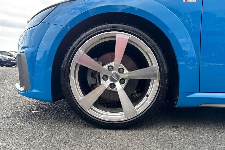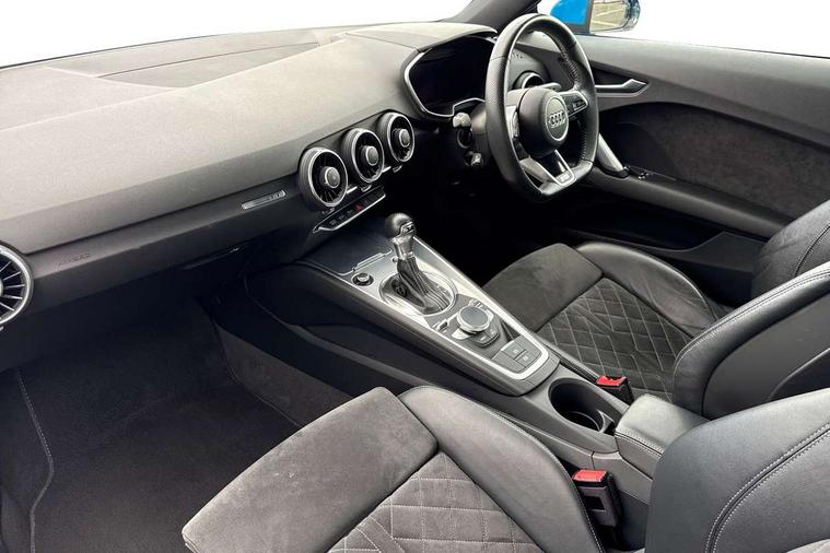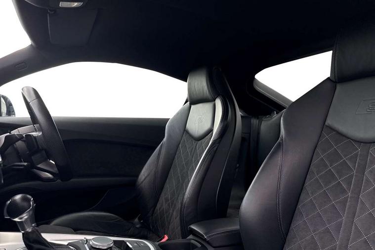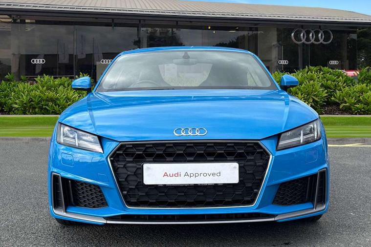 Audi drive select with 4 Pre configured modes, Audi virtual cockpit - 12.3" high-resolution LCD display with fully customisable instrument cluster, Cruise control + speed limiter, MMI touch panel, Mobile phone preparation with bluetooth interface, Progressive power assisted steering, Service interval indicator, Start/Stop system with energy recuperation, TP memo, S line sports suspension, AM/FM radio, Audi music interface, Bluetooth audio streaming, DAB Digital radio, MMI Radio with CD player and SD/XC card slot, Auto dimming rear view mirror, Auto headlight range control, Body colour bumpers, Body colour electrically adjustable and heated door mirrors with built in LED side indicators, Dynamic rear indicators, Electric folding door mirrors, Electric front windows, Front fog lights, Green tinted heat insulating glass, Headlight wash system, High gloss black radiator grille, LED daytime running lights, LED headlights with LED rear lights + dynamic rear indicators, Light and rain sensors, Retractable rear spoiler, S line badges on front wings, S Line body styling, S Line front and rear bumpers, S line rear diffuser with platinum grey insert, S line sill plates, Sunband for windscreen, 12V socket, 3 spoke flat bottomed high multi-function leather sport steering wheel with gearshift paddles, 4 way electric lumbar support for driver and front passenger, Air conditioning, Black headlining, Door sill trims with S line logo, Extended aluminium look with stainless steel pedals, Front centre armrest, Front super sports seats, Heated front seats, Height adjustable driver's seat, Height adjustable front head restraints, Height/reach adjust steering wheel, ISOFIX child seat mounting for front passenger seat with airbag deactivation, Perforated leather gearknob, Rear head restraints, Rear top tether child seat ISOFIX attachment, S Line badge on steering wheel, Split folding rear seat, Tool kit, Top tether anchor plate for isofix child seat, Non smoking pack - TT/TT RS, 3 point front seat belts, ABS, ASR traction control, Brake energy regeneration, Curtain airbags, Driver and front passenger airbag with front passenger airbag deactivation, EDL traction control, Electromechanical parking brake, ESP, First aid kit, Front side airbags, Head airbags, Hill hold assist, Seatbelt warning, Tyre pressure warning, Warning triangle, Anti theft alarm, Anti theft wheel bolts, Immobiliser, Keyless Go, Remote central locking, Matt brushed aluminium inlays, Tyre repair kit,