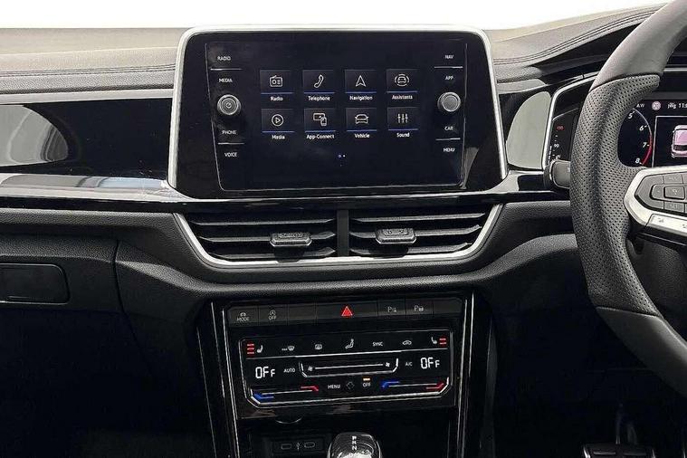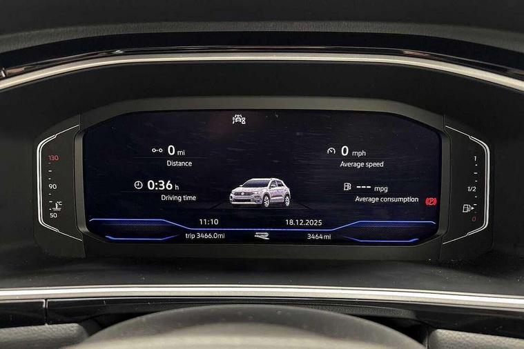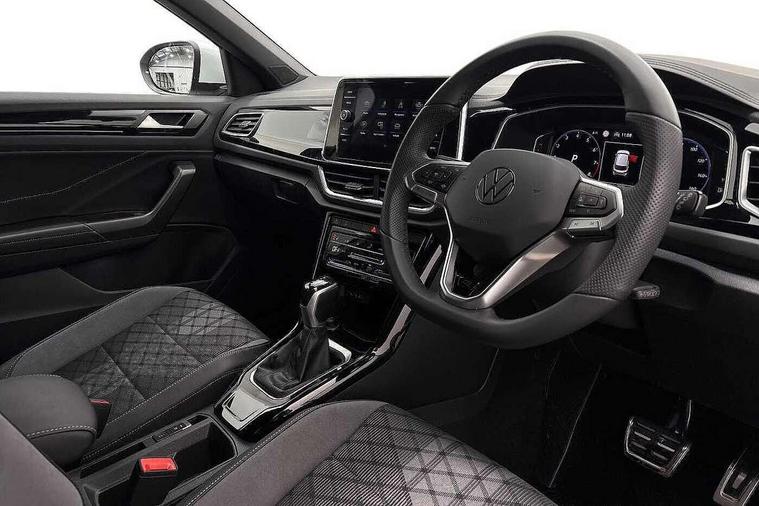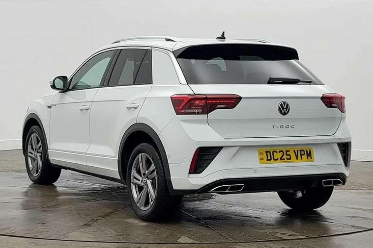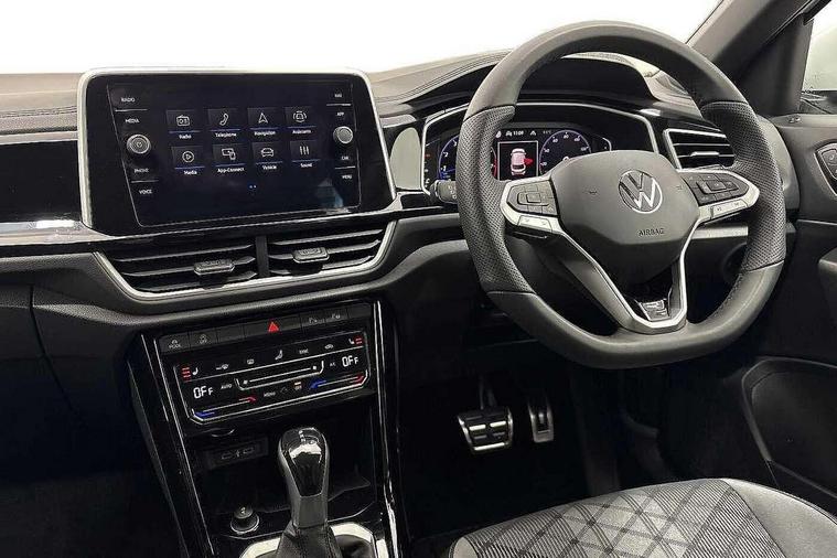 10.25" Digital cockpit pro, Advanced driver attention and drowsiness monitor, Emergency call service, Lane keeping system Lane Assist, Mobile phone interface, Modified key software - reduce switch off time for key status change to Long no motion, Online services, Park assist including front and rear parking sensors, Service interval indicator, Tailgate/trunk lid release from outside, Think blue trainer driver tips and journey analysis, Warning sound and light for front seatbelts unfastened, Wireless app connect, Battery regeneration during braking, Start/stop function with battery regeneration, DAB Digital radio, Diversity antenna for FM reception, Front and rear 6 speakers, Music playback - MP3, WMA and AAC files, Premium USB cable in choice of either Apple or Android smartphone compatibility, SD card slot, Simultaneous pairing of 2 compatible mobile devices, Title and cover art display, We Connect and We Connect Plus functionality, Auto dimming interior rear view mirror, Automatic hazard lights activation under emergency braking, Automatic headlight control with LED separate daytime running lights with coming/leaving home function, Body coloured exterior mirror housings and door handles, Electrically adjustable and heated door mirrors, Extended roof spoiler, Exterior mirrors aspherical on driver side, convex on front passenger side, External USB type C socket and charging sockets, Front windscreen wiper with intermittent wipe and 4 position delay, Heated rear window, LED 3rd brake light, LED rear combination lamps, LED rear number plate lights, Power windows with comfort operation and circuit breaker, Privacy glass for rear side windows and rear window, R-Line design body coloured bumpers, Rain sensor, Rear exhaust tailpipe, Rear fog light on one side and reversing lights on both sides, Rear side wing doors, Rear wash/wipe with intermittent wipe setting, Remote electrically foldable door mirrors, puddle lights and reverse activated passenger's door mirror, 12V power socket in centre console, 3 rear head restraints, 3 seat bench in 2nd row, 4 load lashing points in luggage compartment, Air care climatronic air conditoning system with active combination filter and 2-zone temperature control, Black roof lining, Chrome plated decorative trims, Chrome plated radiator grille inserts, air vent surrounds and light switch surrounds, Door and side trim panel with leatherette insert, Front + rear carpet mats, Front centre armrest, Front cupholders x 2, Front footwell illumination, Front reading light, Front scuff plates with R Line logo, Front seat back storage pockets, Glove compartment door with light, Instrument lighting, white adjustable panel illumination, Interior ambient lighting and surround lighting, Interior light delay, Isofix child seat preparation, Leather gearshift handle, Load-through provision with cup holder when folded down ('Unsplit rear seat bench, split folding backrest, with centre armrest), Luggage compartment lighting, Single front passenger seat, Stainless steel pedals, Storage compartment in left and right luggage area, Storage compartment in rear doors, Storage compartments in driver and front passenger doors, Sunvisors with illuminated vanity mirrors, Variable boot floor, height adjustable and removable, Driver assistance pack without proactive passenger protection - T-Roc, 3 point height adj front seatbelts + pretensioners, 3 point seatbelts in outer rear with ECE label, ABS, Child locks on rear doors, City emergency braking and pedestrian monitoring, Driver and front passenger airbag with front passenger airbag deactivation, Driver and front passenger safety-optimised head restraints, Drivers seatbelt reminder, Electronic parking brake, Electronic Stability Control (ESC) inc EDL (Electronic Differential Lock) and ASR (Traction Control), Front and rear passengers curtain airbag system including front side airbags, Hill start assist, Predictive pedestrian protection, Rear disc brakes, Two tone horn, Tyre pressure loss indicator, Volkswagen roadside assistance, Piano black decorative inserts in dashboard and front door trim panels, Trims for alloy wheels,