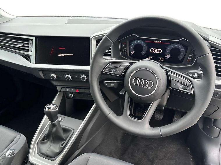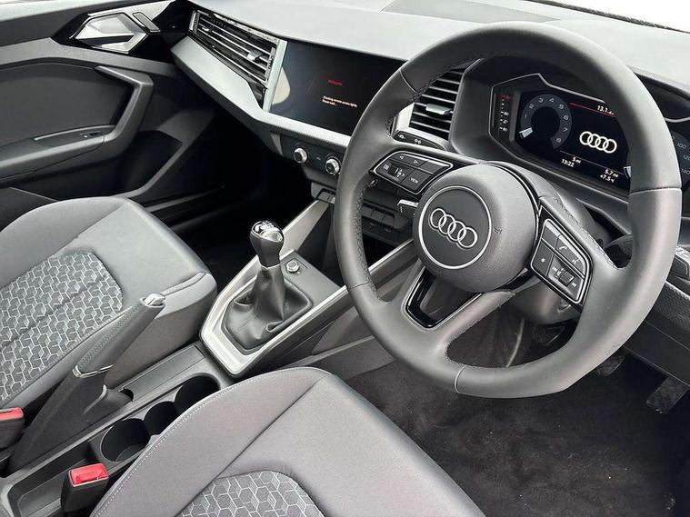 10.25" Digital instrument cluster display screen, Audi connect safety emergency and service including E-call, Audi smartphone interface, Automatic start/stop system, Bluetooth interface, Driver's information system, Electromechanical power steering, Lane departure warning system, Service interval indicator, Speed limiter, Voice control system, Washer fluid level indicator, Dynamic suspension, 1 x SDXC card reader, 1 x USB type C and 1 USB type A charging points, Audi music interface, Bluetooth audio streaming, DAB Digital radio, MMI radio plus with 8.8" colour MMI display screen and MMI touch, Auto dimming rear view mirror, Body coloured bumpers, Body coloured door mirrors, Electric front and rear windows, Front side air inlets in grained matt black and C frame in titanium black, Heat insulating glass windscreen and side windows, Heated rear windscreen, LED headlights with LED rear lights + dynamic rear indicators, Radiator grille in matt titanium black, Radiator protective grille frame in matt aluminium silver, Rain and light sensors, Rear fog lights, Rear wiper, Side front spoiler lips in grained matt black, Titanium black matt diffuser, 12V socket in centre console with two cup holders, 3 rear seats, Door sills trims with aluminium inlays, Driver and passenger seat with manual height adjust with forward and backwards adjustment, Front head restraints, Front/rear floor mats, Height and reach adjustable steering wheel, Illuminated glovebox, ISOFIX child seat mounting in front passenger and rear outer seats, Leather gear knob with aluminium trim, Leatherette handbrake grip, Luggage compartment light with front and rear reading lights, Lumbar adjustment for front seats, Novum cloth upholstery with front sport seats, Rear head restraints, Split folding rear seats, Titanium grey cloth headlining, 3x3 point rear seatbelts, Audi pre-sense front with pedestrain and cyclist recognition, Brake assist function, Driver and front passenger airbag with front side and head airbags, Electronic Stability Control including ABS, EBD, ASR and EDL, Front and rear seatbelt reminder, Front passenger airbag deactivation switch, Hill hold assist, Seatbelt height adjustment for front seats, Seatbelt monitoring, Tyre pressure warning light, Warning triangle and first aid kit, Anti theft alarm, Anti theft wheel bolts and loose wheel warning, Immobiliser, Remote central locking with 2 remote folding keys, Aluminium trim for control switches, air vents and digital instrument cluster, Silver grey accent areas including air vents, door handle recesses and centre console in diamond paint finish, Slate grey inlays polygon structure in fine paint finish,