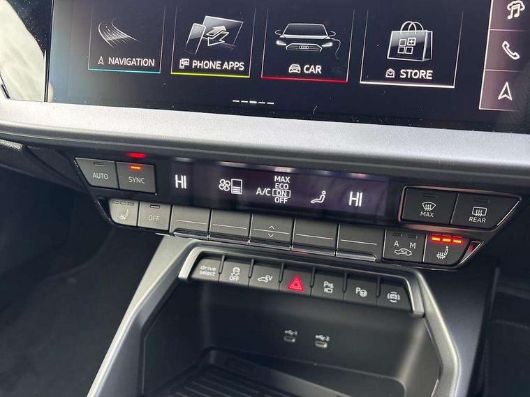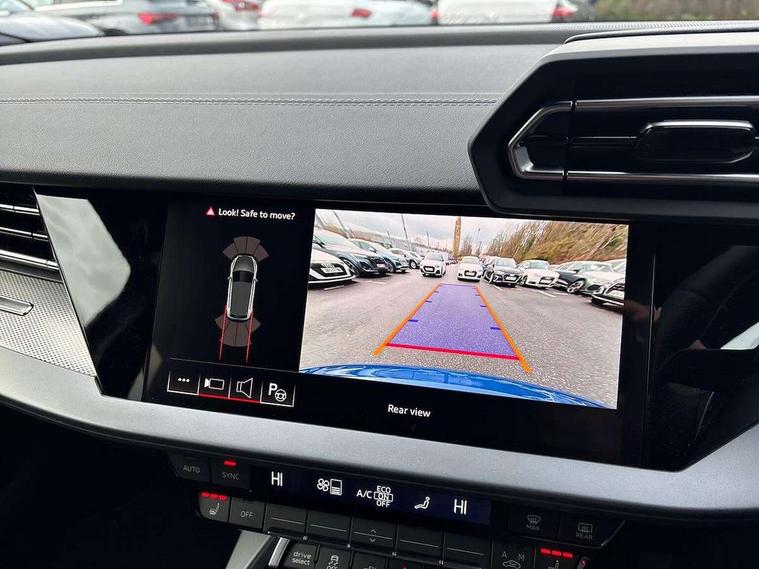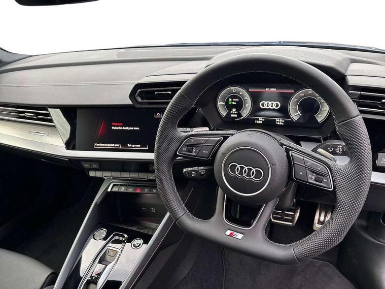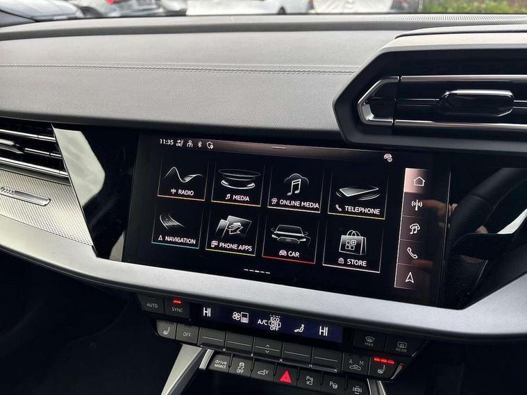 Adaptive cruise control (ACC), Adjustable speed limiter, Audi drive select (Auto, Comfort, Dynamic, Efficiency and Individual), Audi smartphone interface with app store includes wireless Apple carplay, Android auto and Amazon alexa integration, Audi virtual cockpit plus - 12.3" full HD resolution dynamic digital instrument cluster, Automatic start/stop system with recuperation, Bluetooth interface, Camera based traffic sign recognition, Collision avoidance assistant, Driver attention and fatigue detection with driver monitoring camera, e-Call (emergency call), Electromechanical power speed sensitive steering, Emergency assist, Intersection assist, Lane departure warning system, MMI Navigation Plus with high resolution 10.1" colour touch screen display, Park Assist with parking system Plus, Reversing camera, Service indicator, Trip computer, Voice control system with natural language interaction, 3 pin 10 amp domestic charging cable, CCS socket for DC charging, Charging cable for public charging, mode 3 (type 2), 32 A, Compact charging system, Industrial connector CEE 32 A, 230 V, length 1.6 m, Standard suspension, Type 2 socket for AC charging, Audi Phonebox light with wireless charging, Audi sound system - 10 loudspeakers including centre loudspeaker and subwoofer, DAB Digital radio, USB ports with charging function in the rear, Acoustic glass windscreen, All weather light, Aluminium window trim, Auto dimming frameless rear view mirror, Automatic dynamic range control, Body colour exterior mirrors, Chrome exhaust tailpipes, Dipped beam, main beam, position light and turning light, Electrically adjustable/heated/folding/auto dimming door mirrors with integrated LED indications + kerb view function for passenger side, Exterior model badging, Front and rear side air inlets in grained matt black with dark liquid chrome frame, Front electric windows, Front radiator grill in high gloss dark chrome, Heat insulating glass windscreen, Illuminated door sills with aluminium inserts at the front with S logo, Intersection light, LED 3rd brake light, LED brake lights, LED daytime running x3, LED headlights with LED rear lights and dynamic rear indicators, LED rear number plate lights, LED reverse light, LED tail lights, Light and rain sensors, Manoeuvring light, Motorway light, Privacy glass - dark tinted rear window, rear door and side windows, Rear diffuser and grill in grained matt black with inlay in dark liquid chrome, Rear electric windows, Rear side wing doors, Rear wiper, S line bumpers, S roof spoiler, Side S line emblems on front wings, Side sill trim in dark liquid chrome, Static Cornering lights, 12V socket and storage compartment in front centre console, 3 seat bench in 2nd row, 3 spoke flat bottomed leather multifunction sport steering wheel with gear shift paddles, 3-zone deluxe automatic air conditioning, 4 way electrically adjustable lumbar support for driver and front passenger, 40/20/40 split folding rear seat bench, Black cloth headlining, Black front and rear floor mats, Convenience auxiliary air conditioning, Front and rear centre armrest in artificial leather with contrasting stitching on armrests and instrument panel, Front and rear headrests, Heated front seats, Height and reach adjustable steering wheel, i-Size child seat mounting on the front passenger side and outer rear seats, i-Size and top tether on the outer rear seats, Manual boot compartment lid, Manually adjustable front seats, Rear centre armrest with cupholder, S badging on the steering wheel, Seat side bolsters, Single front passenger seat, Stainless steel pedals and front footrest in black, Twin leather upholstery with front sports seats S embossed logo, Aluminium interior elements pack - A3, Multi-coloured LED interior lighting package with Multi-coloured contour lighting of instrument panel - A3, 3x3 point rear seat belts, Acoustic vehicle alerting system, Driver and front passenger airbag with passenger airbag deactivation, Electronic Stabilisation Control (ESC) including ABS, ASR and EDL, First aid kit with warning triangle and 2 safety vests, Front side airbags with head airbags and interaction airbag, Hill hold assist, Pre-sense front with pedestrian and cyclist detection, Seatbelt monitoring, Tyre pressure loss indicator, Anti theft alarm, Anti-theft wheel bolts, Electronically operated child locks, Immobiliser, Black dashboard, Inlay in dark aluminium spectrum, Tyre repair kit,