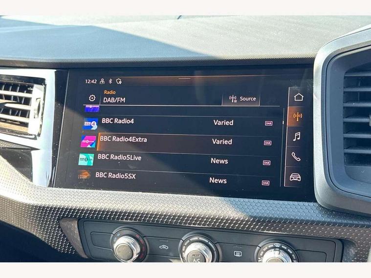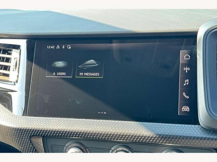 10.25" Digital instrument cluster display classis style instrument dials + speed, odometer, time, outside temperature, telephone menu + fuel level warning, Audi smartphone interface with connect compatible smartphone via USB directly MMI display + Nav, music, third party apps controlled via MMI controller, Automatic start/stop system, Bluetooth interface, Driver's information system, Electromechanical power steering, Emergency e-call, Emergency services call system, Lane departure warning system, Service interval indicator, Speed limiter, Voice control system, Washer fluid level indicator, Dynamic suspension, 1 x SDXC card reader, 2 x USB type C connection points, 6 passive loudspeakers, DAB Digital radio, MMI radio plus with 8.8" colour MMI display screen and MMI touch, Auto dimming rear view mirror, Body coloured bumpers, Body coloured door mirrors, Electric front and rear windows, Electrically adjustable, heated, folding door mirrors with integrated LED side indicator, Front side air inlets with front spoiler lip and rear diffuser in matt black grained, Heat insulating glass windscreen and side windows, Heated rear windscreen, High level LED brake light, LED headlights with LED rear lights + dynamic rear indicators + headlight adjustment and high beam, turning light + LED daytime running lights, Radiator grille in matt black, Rain and light sensors, Rear fog lights, Rear side wing doors, Rear wing door, Rear wiper, 12V socket in centre console with two cup holders, 3 rear seats with headrests, 3 seat bench in 2nd row, 3 spoke leather multifunction plus steering wheel, 40:60 Split folding rear seat or folded fully, Air vents, door handle recesses and centre console in black, Delta cloth upholstery, Driver and passenger seat with manual height adjust with forward and backwards adjustment, Front head restraints, Front passenger seat, Front/rear floor mats, Height and reach adjustable steering wheel, ISOFIX child seat mounting for front passenger and outer rear seats including top tether attachment point of outer rear seats, Leather gear knob with aluminium trim, Leatherette handbrake grip, Luggage compartment light with front and rear reading lights, Manual air conditioning, Titanium grey cloth headlining, Luggage compartment pack - A1, 3x3 point rear seatbelts, Audi pre-sense front with pedestrain and cyclist recognition, Brake assist function, Driver and front passenger airbag with front side and head airbags, Electronic Stability Control including ABS, EBD, ASR and EDL, Front passenger airbag deactivation switch, Hill hold assist, Manual rear child locks, Seatbelt height adjustment for front seats, Seatbelt monitoring, Tyre pressure warning light, Warning triangle and first aid kit, Anti theft alarm, Anti theft wheel bolts and loose wheel warning, Immobiliser, Remote central locking with 2 foldaway keys, Black inlays polygon structure, 15" 5 arm design alloy wheels,