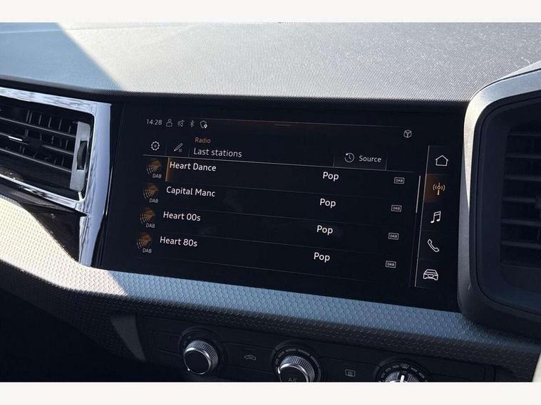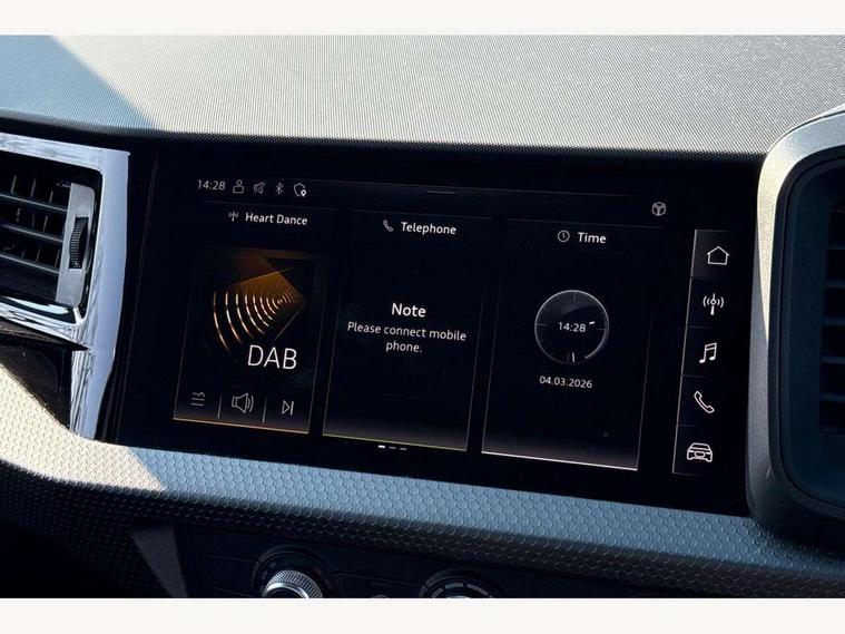 10.25" Digital instrument cluster display classis style instrument dials + speed, odometer, time, outside temperature, telephone menu + fuel level warning, Audi smartphone interface with connect compatible smartphone via USB directly MMI display + Nav, music, third party apps controlled via MMI controller, Automatic start/stop system, Bluetooth interface, Driver's information system, Electromechanical power steering, Emergency e-call, Emergency services call system, Lane departure warning system, Service interval indicator, Speed limiter, Voice control system, Washer fluid level indicator, Dynamic suspension, 1 x SDXC card reader, 2 x USB type C connection points, 6 passive loudspeakers, DAB Digital radio, MMI radio plus with 8.8" colour MMI display screen and MMI touch, Auto dimming rear view mirror, Body coloured bumpers, Body coloured door mirrors, Electric front and rear windows, Electrically adjustable, heated, folding door mirrors with integrated LED side indicator, Front side air inlets with front spoiler lip and rear diffuser in matt black grained, Heat insulating glass windscreen and side windows, Heated rear windscreen, High level LED brake light, LED headlights with LED rear lights + dynamic rear indicators + headlight adjustment and high beam, turning light + LED daytime running lights, Radiator grille in matt black, Rain and light sensors, Rear fog lights, Rear side wing doors, Rear wing door, Rear wiper, 12V socket in centre console with two cup holders, 3 rear seats with headrests, 3 seat bench in 2nd row, 3 spoke leather multifunction plus steering wheel, 40:60 Split folding rear seat or folded fully, Air vents, door handle recesses and centre console in black, Delta cloth upholstery, Driver and passenger seat with manual height adjust with forward and backwards adjustment, Front head restraints, Front passenger seat, Front/rear floor mats, Height and reach adjustable steering wheel, ISOFIX child seat mounting for front passenger and outer rear seats including top tether attachment point of outer rear seats, Leather gear knob with aluminium trim, Leatherette handbrake grip, Luggage compartment light with front and rear reading lights, Manual air conditioning, Titanium grey cloth headlining, Luggage compartment pack - A1, 3x3 point rear seatbelts, Audi pre-sense front with pedestrain and cyclist recognition, Brake assist function, Driver and front passenger airbag with front side and head airbags, Electronic Stability Control including ABS, EBD, ASR and EDL, Front passenger airbag deactivation switch, Hill hold assist, Manual rear child locks, Seatbelt height adjustment for front seats, Seatbelt monitoring, Tyre pressure warning light, Warning triangle and first aid kit, Anti theft alarm, Anti theft wheel bolts and loose wheel warning, Immobiliser, Remote central locking with 2 foldaway keys, Black inlays polygon structure, 15" 5 arm design alloy wheels,