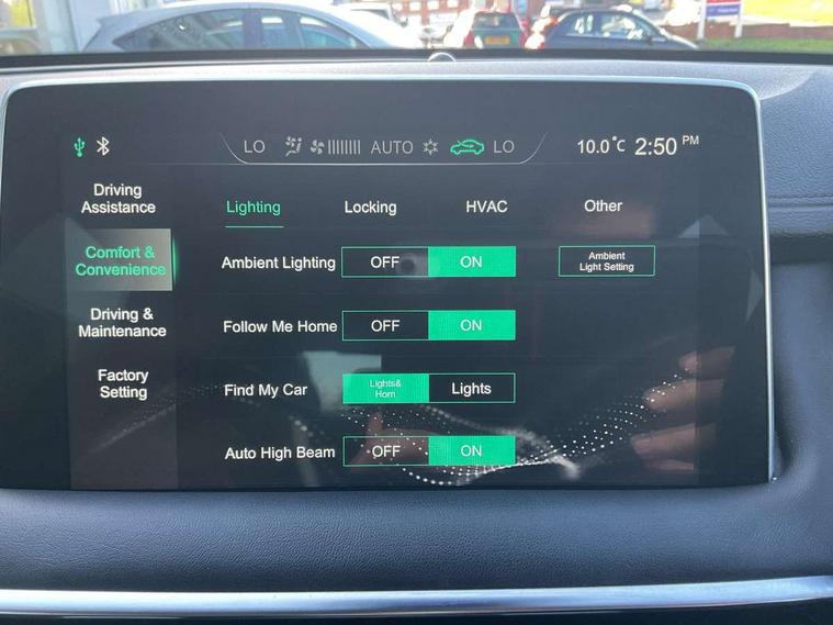 10.1" colour touchscreen, 12.3" Full digital driver information display, Adaptive cruise control, Android Auto, Apple CarPlay, Blind Spot Detection (BAS), Bluetooth connectivity, Driving modes, Emergency call service, Intelligent speed assist, Lane keep assist system (LAS) with Lane departure warning system (LDWS), PAS, Power tailgate, Rear cross traffic alert, Rear parking camera, Rear parking sensors, Satellite navigation system, Traffic jam assist, Trip computer, USB mobile phone charging function, 6 speaker audio system, DAB audio, Auto dimming rear view mirror, Automatic headlights, Body colour electric adjustable heated door mirrors, Electric folding door mirrors, Follow me home headlights, Front and rear aero wiper, Front and rear electric windows with one-touch up/down, Front fog lights, Intelligent high beam, LED Bi-Function headlights, LED centre brake light, LED daytime running lights, LED front and rear sequential indicators, Rain sensing wipers, Rear side wing doors, Silver roof rails, 12V power sockets, 2nd row 60/40 split fold seat, 2nd row seat with 2 stage incline adjustment, 3 rear headrests, 3 seat bench in 2nd row, 4 way electric adjustable passenger seat, 6 way electric adjustable drivers seat + lumbar support, Ambient lighting (adjustable colour), Dual zone automatic air conditioning, Front centre sliding armrest with storage compartment, Front headrests, Heated front seats, Height and reach adjustable steering wheel, ISOFIX restraints on outer rear seats x2, Leather steering wheel, Metal sports pedals, Single passenger seat, Sports Style Front Seats with One-Piece Back, Steering wheel paddle shift, 3x3 point rear seatbelts, ABS/EBD, Active emergency braking with pedestrian/Bicycle detection, Anti rolling protection, Cornering brake control (CBC), Drivers seatbelt reminder, Dual front airbags, Electric parking brake with auto hold function, ESP, Front and rear passenger seat belt reminder, Front passenger airbag deactivation switch, Front seat belt height adjuster, Front seatbelts (3-point + pretensioner + load limiter), Front side airbags, Hill descent control, Hill launch assist, Manual rear child locks, Rear outer seatbelt pretensioner and load limiter, Side curtain airbags, Tyre pressure monitoring system, Alarm system and engine immobiliser, Keyless entry and push button start system, Remote central locking, Speed sensing door locks, 18" Hurricane diamond cut alloy wheels, Tyre repair kit,