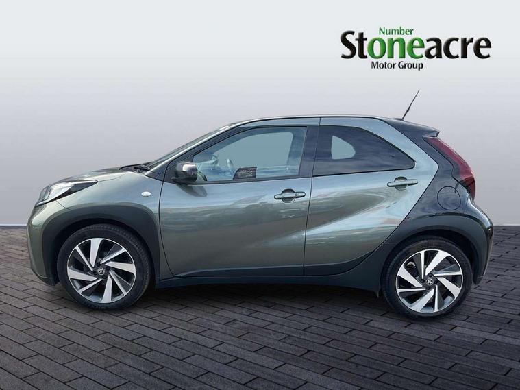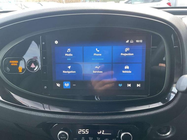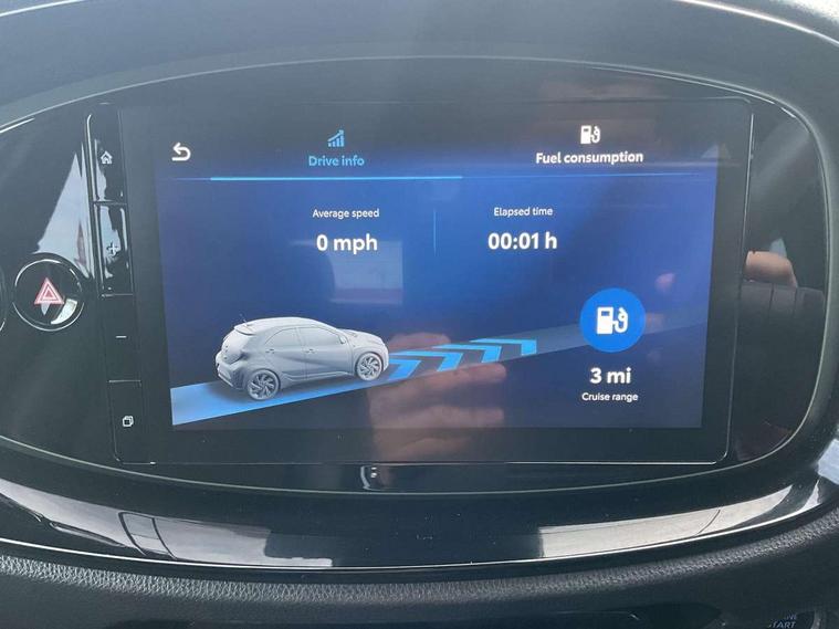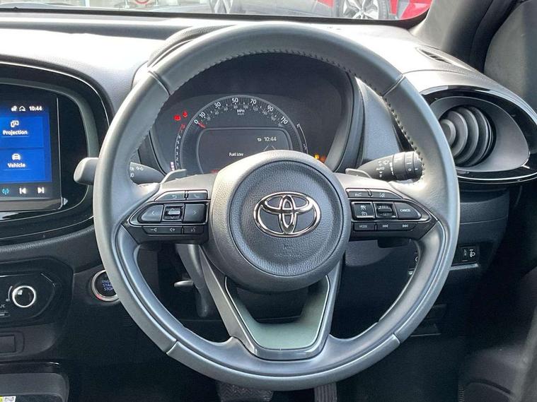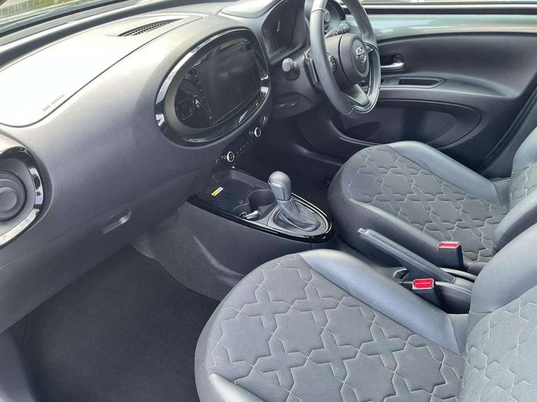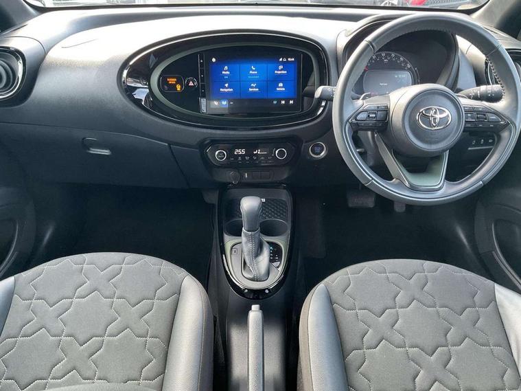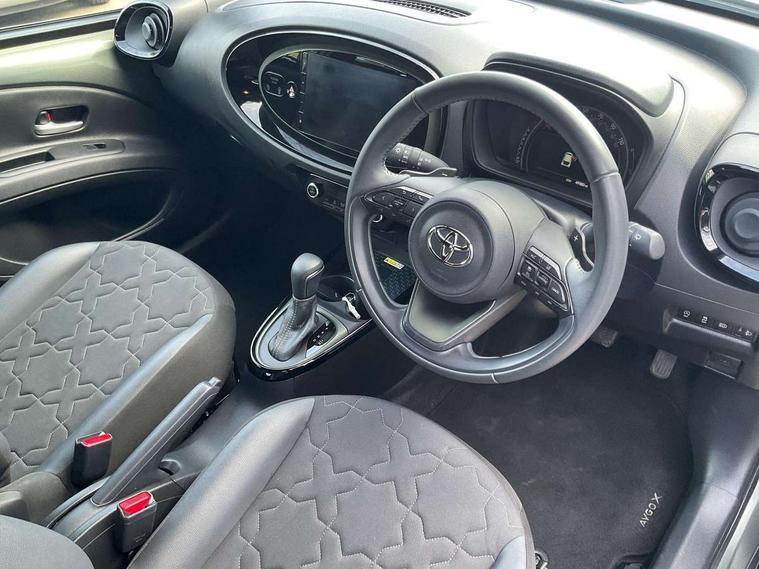 4.2" TFT colour screen, Adjustable speed limiter, Analogue speedometer, Bluetooth connectivity, Digital tachograph, Driver attention alert system, eCall emergency call system, ECO-driving indicator, Electric power steering, Front and rear parking sensors with auto brake, Intersection turn assist, Key reminder warning, Noise reduction kit, Pre collision system with emergency steering assist, Remote boot door release on key, Reversing camera with static guide lines, Smart entry and push button start, Speed limit display, Start and stop, Wireless charger, Wireless Smartphone Integration includes Apple CarPlay and Android auto, Vehicle Stability Control (VSC), 4 speakers, 9" HD multimedia display touch screen with Toyota smart connect, DAB digital audio broadcast, USB connector, Auto headlights, Auto wipers, Automatic headlights cut-off, Automatic high beam On/Off switch, Bicycle towing hook, Black fog light surrounds, Black side protection mouldings, Black wheel arch mouldings, Body colour door handles, Body coloured front bumper, Boot door scuff plate, Eclipse black rear bumper, Electric heated door mirrors, Follow me home headlights, Front and rear underruns in silver, Front fog lights, Front power windows, Gloss black door mirrors, Gloss black upper front grille, Headlight cut-off reminder, LED daytime running lights guide, LED front light guide, LED High mounted stop lamp, LED projector headlights, Manual day/night rear view mirror, Manual headlight levelling, Pagoda roof, Power adjustable door mirrors, Privacy glass, Rain sensor, Rear combination lights LED bulb type, Rear side wing doors, Rear windscreen defogger, Rear windscreen wiper, Remote hazard lights system, Short antenna, Variable intermittent windscreen wipers, 12v power outlet - front, 2 seat bench in 2nd row, 3 spoke leather steering wheel, 50/50 split folding rear seat, Adhesive roof headlining, Adjustable speed limiter switch on steering wheel, Audio and telephone switches on steering wheel, Auto air conditioning, Black roof lining, Body colour satin anodised insert on steering wheel, Boot light, Centre room light, Chrome interior door handles, Chrome surround on air conditioning buttons, Clean air filter, Floor mats, Front and rear cup holders, Front head rest deco art, Front head restraints, Gear shift indicator, Height adjustable driver seat, Intelligent adaptive cruise control switch on steering wheel, ISOFIX child restraint system on rear seats, Lane departure alert switch on steering wheel, Leather gearshift knob, Light blue ambient lighting in centre console, Manual tilt steering wheel, Manually reclining and sliding driver seat, Manually reclining and sliding front passenger seat, Multimedia switches on steering wheel, Paddle shift levers on steering wheel, Partial synthetic leather upholstery, Pollen filter, Rear door pockets, Rear head restraints, Remote air-conditioning system, Satin silver insert on gear shift knob, Single compartment glovebox with lights, Single front passenger seat, Soft tonneau cover, Sun visors with mirror on driver and passenger side, Voice recognition switch on steering wheel, Toyota safety sense pack - Aygo X, Anti lock braking system + Electronic brake force distribution, Child safety door lock, Emergency brake light signal (EBS), Hill start assist control (HAC), Passenger airbag on/off switch, Seat belt reminder for front and rear seats, Supplement restraints system (SRS) - 6 airbags, Traction control, Tyre pressure warning system, Immobiliser, Remote power door locks, Black wheel centre caps, Tyre repair kit,