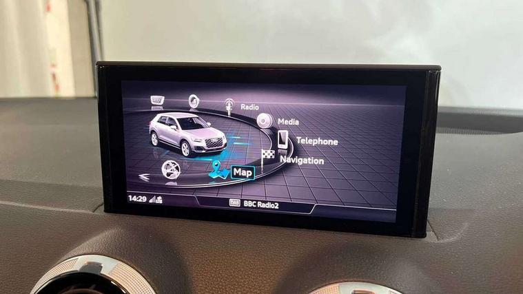 3D map display, Audi connect navigation and infotainment includes innovative services, Audi connect remote and control connects your vehicle to your smartphone, Audi drive select: S tronic - power steering assistance + engine + gearshift (modes: comfort, auto, dynamic, efficiency, individual), Audi smartphone interface - Apple carplay/Android Auto, USB connect, 2xSDXC card readers, voice control for navi, telephone, music and 3rd party apps, Audi virtual cockpit, Automatic start/stop system with recuperation, Bluetooth interface includes bluetooth audio streaming, Cruise control, Distraction and Fatigue warning, E-call, Jukebox hard drive memory for music (10GB), Lane departure warning, MMI navigation plus with 8.8" touchscreen, Natural voice recognition, Power operated tailgate, Progressive steering, Rear parking sensors, 6 passive loudspeakers, DAB Digital radio, USB type C port, Auto dimming rear view mirror, Black window trims, Body colour door mirrors, Contrast bumpers in Manhattan grey, Electrically adjustable, folding, auto dimming and heated door mirrors with integrated LED side indicators, Front windscreen with grey tinted sunband, LED daytime running lights, LED headlights with dipped beam, high beam, position lights, indicators, LED third brake light, Rear side wing doors, Rear wiper, Side skirts in manhattan grey, Variable front intermittent wipers, Wheel arch trims in manhattan grey, 12V socket in front, 3 seat bench in 2nd row, 3 spoke leather trimmed multi-function steering wheel with height and reach adjustable, 4-way electric lumbar support for front seats including manual seat height adjustment for both front seats, 60/40 split folding rear seat bench, Black carpets, Front and rear head restraints, Front centre armrest, Front sport seats, Front/rear floor mats, Grey cloth headlining, Height/reach adjust steering wheel, Index cloth upholstery, ISOFIX child seat mounting in front passenger and rear outer seats, Manual air conditioning, Single front passenger seat, 3x3 point rear seatbelts, 6 airbags - Front, curtain and front side airbags, Electromechanical parking brake, Electronic stabilisation control including ABS, ASR and EDL, Front passenger airbag deactivation, Hill hold assist, Pre-sense front with pedestrian recognition, Seatbelt monitoring, Tyre pressure warning light with visual and acoustic warning, Warning triangle and first aid kit, Anti theft alarm, Anti theft wheel bolts, Electronically operated child locks, Remote central door locking, Aluminium interior element, Black dashboard, Gloss black centre console, Inlays in silver grey diamond paint, Tool kit,