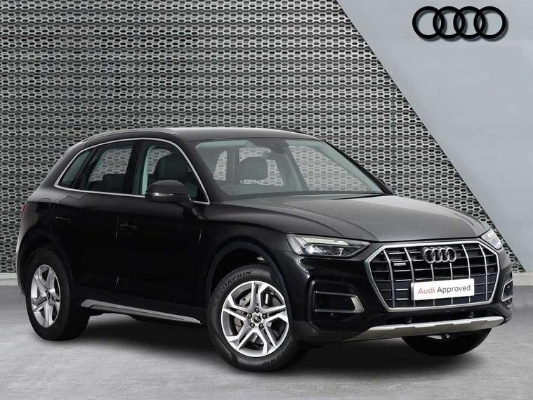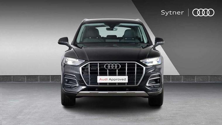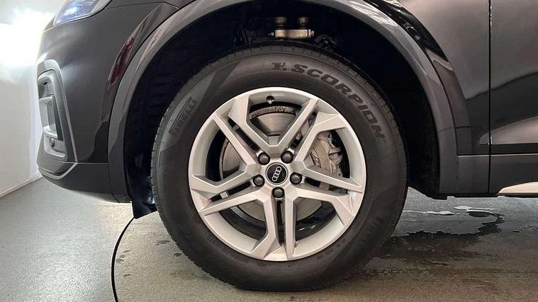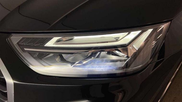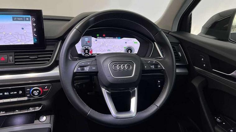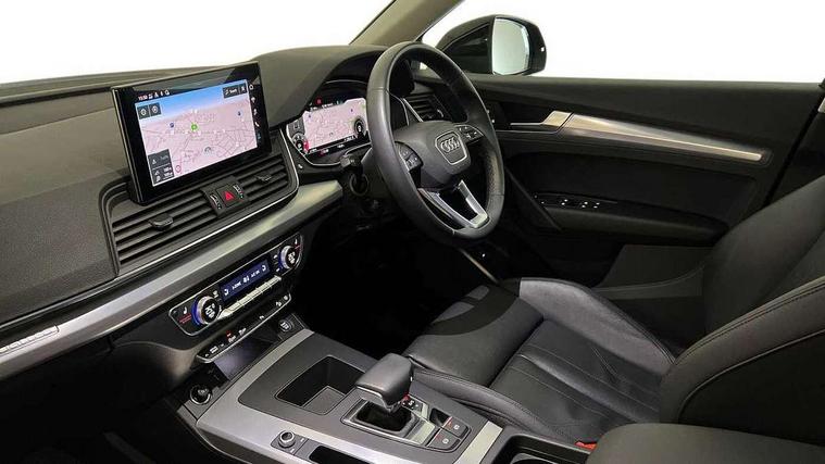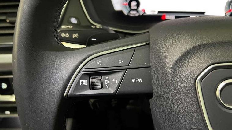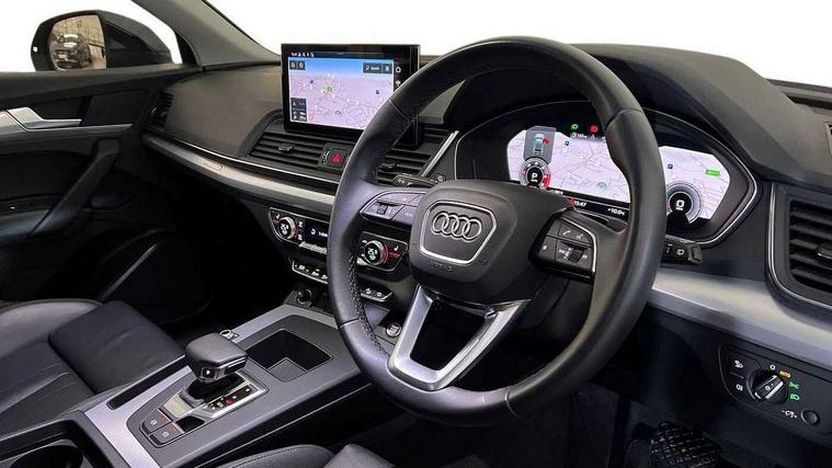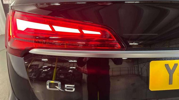 Audi connect safety and service (e-call), Audi connect with Amazon Alexa Integration, Audi drive select, Audi virtual cockpit plus with 12.3" screen and three different layout designs, Audi wireless smartphone interface, Automatic start-stop system with coasting functionality and efficiency programme, Bluetooth interface, Cruise control + speed limiter, Electro - mechanical power assisted steering, MMI navigation plus with 10.1" touch screen, Power tailgate, Reversing camera, Service interval indicator, Voice control system with Audi hotword activation "Hey Audi", Diesel particulate filter, Dynamic suspension, Quattro on demand, DAB Digital radio, Acoustic windscreen, Air inlets in matt titanium black with blades in matt aluminium silver, Aluminium roof rails, Auto dimming rear view mirror, Automatic headlights and windscreen wipers, Body colour bumpers, Body colour door mirrors, Chrome plated exhaust trims, Door sills in Selenite silver, Electric adjustable/heated/folding door mirrors, Front and rear electric windows, LED headlights and LED tail lights, Lower bumpers painted in contrast Manhattan grey, Matt selenite silver underbody protection, Matt twilight grey radiator grille with chrome vertical struts, Rear chrome trim strip below lights, Rear diffuser strip in selenite silver, Rear spoiler, Rear wiper, Roof bars, 2 x USB charging port with aux input socket, 3 rear headrests, 3 spoke multifunction leather steering wheel with shift paddles, 40:20:40 split folding rear seat with rear centre armrest, Comfort front centre armrest, Deluxe 3 zone electronic climate control, Door sills trims with aluminium inlays, Front/rear floor mats, Heated front seats, Height adjustable front head restraints, Height/reach adjustable steering column, ISOFIX child seat mounting and top tether, Luggage compartment cover, Manual seat adjustment with 4-way electric lumbar support, Removable luggage compartment floor, Silver cloth headlining, Sunvisors with vanity mirrors, Twin leather upholstery + front sports seats, High gloss pack - Q5, LED interior light pack - Q5, 3 point seatbelts on all seats, 6 airbags - Driver, front passenger, curtain and side airbags, Electrically operated child locks on rear doors, Electromechanical parking brake, Electronic stabilisation control including ABS, ASR and EDL, Front passenger airbag deactivation, Hill descent control, Hill hold assist, Multi collision brake assist, Pop-up bonnet for pedestrian protection, Pre sense city, Seat belt force limiter, Seatbelt monitoring, Tyre pressure warning, Warning triangle and first aid kit, Anti theft alarm, Anti-theft wheel bolts, Keyless Go access/ignition system, Aluminium rhombus inlay,