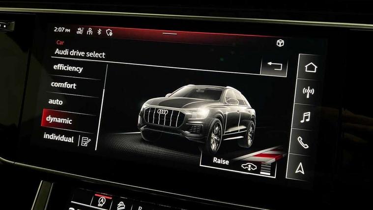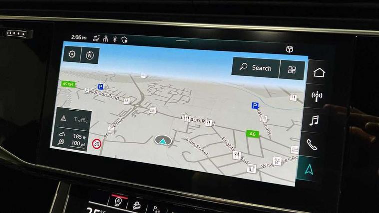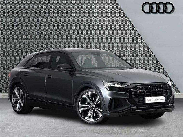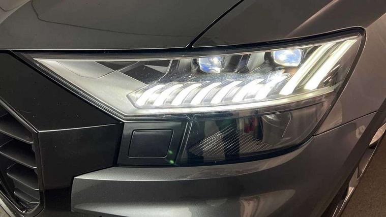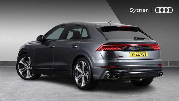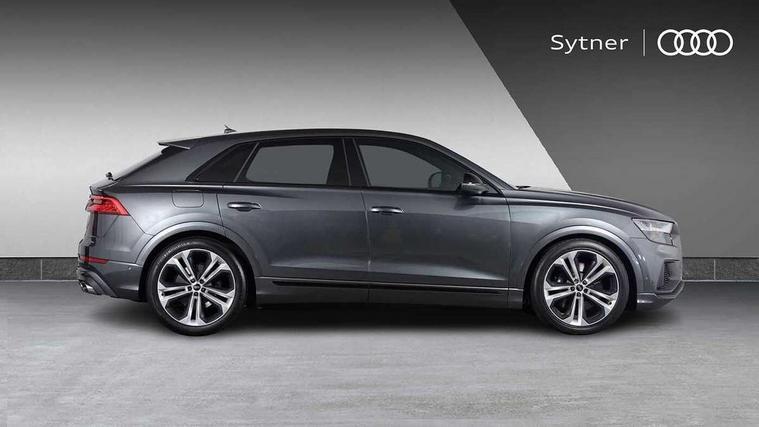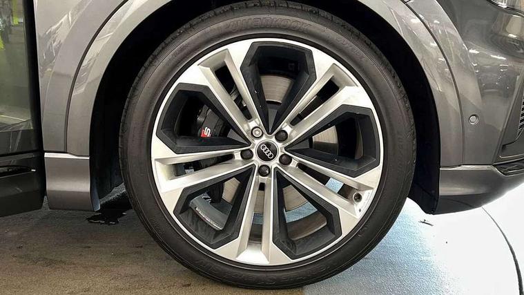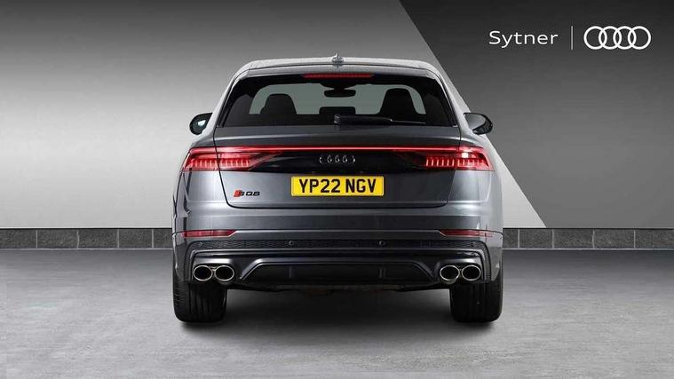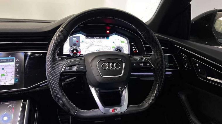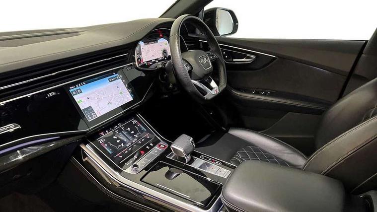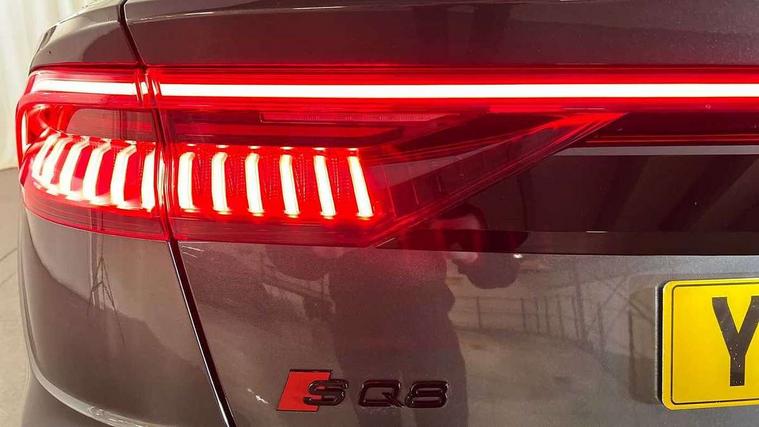 10.1" and 8.6" Dual colour touchscreens, All wheel steering, Audi connect safety and service (e-call), Audi connect with Amazon Alexa Integration, Audi drive select, Audi parking system plus includes 360 degree display with front and rear sensors, Audi virtual cockpit - 12.3" high resolution LCD display with fully customisable instrument cluster, Automatic start/stop system, Electro-mechanical PAS, Low washer fluid indicator, MMI - Multi Media Interface control system, MMI navigation plus with MMI touch, Natural voice recognition, On board computer, Operating buttons in black, glass look with haptic feedback, Power operated tailgate, Rear view camera, Service interval indicator, Smartphone interface includes wireless Apple carplay/Android Auto, 48V Mild hybrid technology, 85 litre fuel tank, Quattro all wheel drive with self locking centre differential, S specific Adaptive air suspension, Audi music interface with 2 USB ports with charge and data functions, Audi sound system with 6 channel amplifier, 180 watt amplifying capacity and 10 loudspeakers including subwoofer, Aux-in socket, DAB Digital radio, 3rd brake light, Acoustic windscreen, Audi Beam uses LEDs to project the Audi logo, Audi HD Matrix LED headlights with dynamic front and rear indicators, Auto dimming frameless rear view mirror, Body coloured bumpers, Coming/leaving home lighting function, Electric front+rear windows, Electrically folding auto dimming/adjustable/heated door mirrors with memory function, LED side indicators and kerb view function for passenger side, Gloss black finish for exterior Audi rings and SQ8 logo, Headlight washers, Heat insulating glass in windshield, LED signature daytime running lights, Platinum grey front spoiler lip and diffuser insert, Privacy glass - dark tinted rear and rear side windows from B-pillar backwards, Rain and light sensors, Rear side wing doors, Rear wiper, S specific dual brach chrome tailpipes on both the left and right, S specific front and rear bumpers, S specific side skirts in matt selenite silver, Side air inlet grilles in matt titanium black, Trim and underbody protection in matt selenite silver, 4 zone deluxe automatic climate control, 4-way lumbar support for front seats, 40:20:40 split folding rear bench seat, Black cloth headlining, Comfort front centre armrest, Driver seat memory function, Electrically adjustable front seats, Front head restraints, Front/rear floor mats, Heated front seats, Illuminated door sill trims, ISOFIX child seat mounting for front passenger seat and 2 outer rear seats with top tether child seat mounting for all 3 rear seats, LED interior ambient lighting, Luggage compartment sill protection in stainless steel, Rear centre armrest with 2 cupholders, Rear headrests, Rear seat bench plus, Single front passenger seat, Stainless steel pedals, Sunvisors with illuminated vanity mirrors, Upper and lower interior elements in leather, leather door armrests, Valcona leather upholstery + super sports seats with S embossed logo, Titanium Black Styling Pack - Q8, 3 point seatbelts on all seats, Audi pre sense front, Child locks on rear doors, Driver and front passenger, front side and curtain airbags, Electromechanical parking brake, Electronic Stability Control (ESC) including ABS, ASR and EDL, Front passenger airbag deactivation, Hill descent control, Hill hold assist, Predictive pedestrian protection, Seatbelt monitoring, Traction control, Tyre pressure loss indicator, Warning triangle and first aid kit, Anti theft alarm with tow away protection, Anti-theft wheel bolts and wheel loosening detection, Immobiliser, Keyless go with remote central locking, Polished oak trim with grey finish inlay, Tool kit, Tyre repair kit,