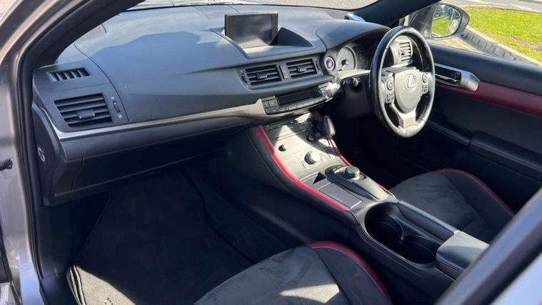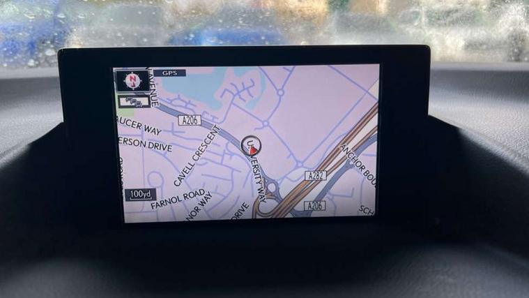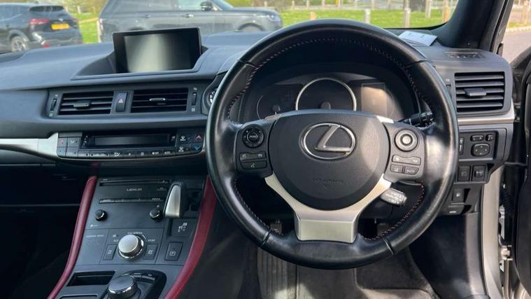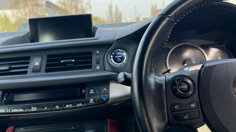 Bluetooth mobile phone connection, Digital clock, Drive mode selector, EPS with speed sensitive steering, Lexus Navigaton System, Lexus safety systems+ Dynamic radar cruise control, pre-collision system, lane keep assist, road sign assist, automatic high beam, Push button starter, Rear parking sensors, Reversing camera, Trip computer, Vehicle Dynamics Integrated Management, Vehicle Stability Control (VSC), 2 USB ports, 4.2" thin film transistor, AUX socket with VTR compatibility, DAB Digital radio, Lexus media display with 6 speakers, 7" display screen, CD and rotary dial controller, Black scuff plates, Body colour bumpers, Front and rear one-touch automatic power windows equipped with a jam protection, Halogen headlights, Heated and electrically folding outside mirrors with turn indicators and puddle light, LED brake lights and rear lights with emergency brake signal, LED daytime running lights, LED front fog lamps, Rain sensor windscreen wipers, Rear spoiler, Rear wiper, 2 cup holders in the front and rear centre console, 2 map pockets in the rear of the front seats, 2 x coat hooks in the rear, 2 x sun visors with vanity mirror and lamp, 4 x tie down hooks in the boot, 60/40 split folding rear seat, Card holder installed in drivers sun visor, Driver 6-way manually adjustable front seat, Driver and passenger door pocket, Dual zone climate control, Fabric upholstery, Front and rear head restraints, Front and rear textile carpet mats, Front centre armrest with storage, Front glove box with lock, Manually reach and rake adjustable leather steering wheel, Multifunction steering wheel, Passenger 4-way manually adjustable front seat, Storage tray under the deck board boot + storage location for tonneau cover, Sunglasses storage by interior rear view mirror, Whiplash lessening front seats, 2 x Isofix child rear seat restraints, 3 point ELR front seatbelts with pretensioners, ABS, BAS (Brake Assist System), Driver and front passenger 2 stage airbag, Driver and front passenger knee airbag, Driver and passenger side airbags, ECB (Electronically Controlled Brake System), Electronic brake force distribution, Front and rear curtain airbags, Hill assist control, Passenger airbag cut-off device, Three 3 point rear seatbelts, Traction control, Tyre pressure warning, Anti-theft system with siren, intrusion sensor, tilt sensor and immobiliser, Locking wheel nuts, Remote central locking, Two motion door lock with double lock, VIN Window etching, 17" Alloy wheels, Space saver spare wheel,