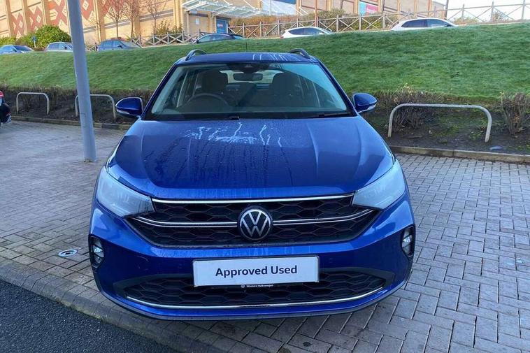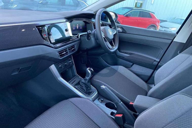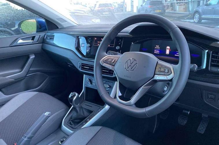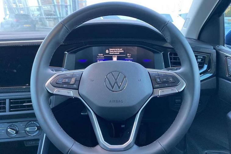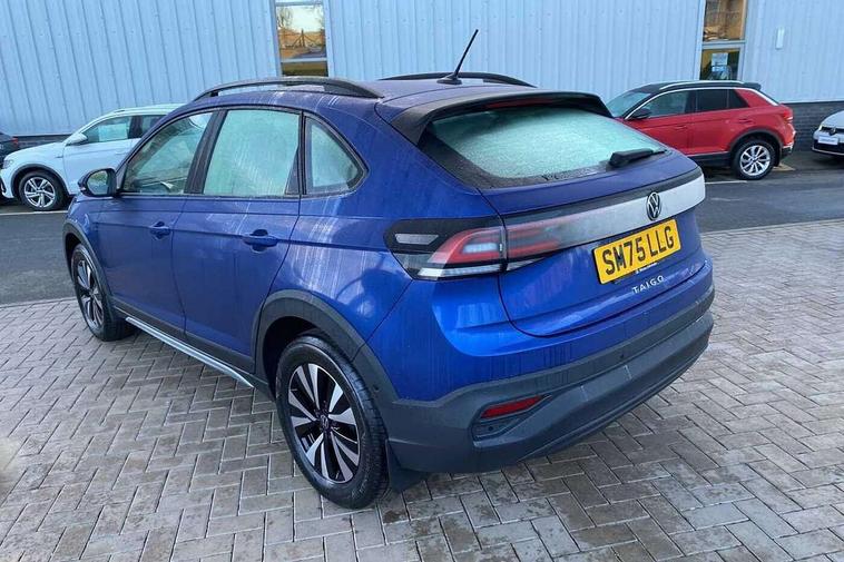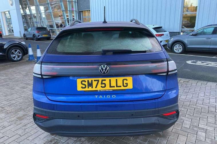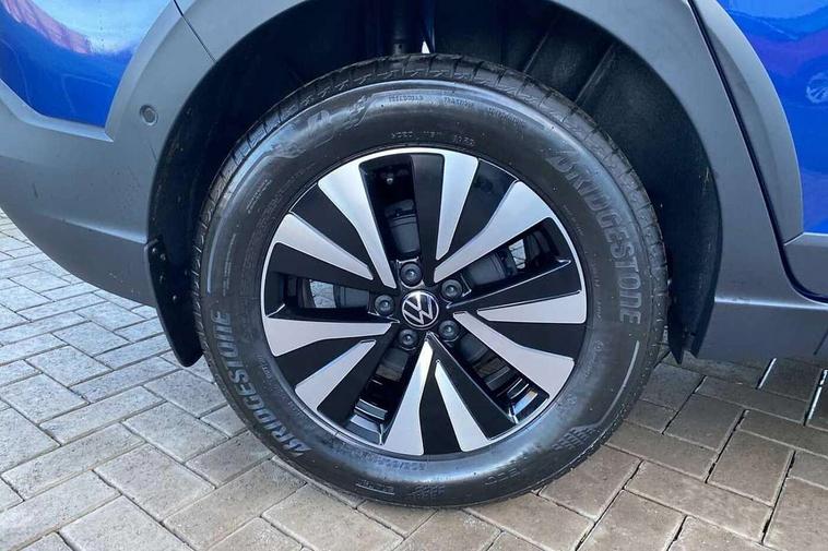 8" Digital cockpit basic display, Advanced driver attention and drowsiness monitor, Dynamic road sign display, e-Call (emergency call), Power Steering, Predictive adaptive cruise control, Travel assist including emergency assist, Washer fluid level indicator, Wireless Charging including Bluetooth, Start-stop system with battery regeneration (recuperation - energy recovery during braking), Digital radio reception (DAB+), WeConnect plus, Ambient lighting with logo projection, Aspherical driver's exterior mirror, Auto headlights, Body coloured bumpers, Body coloured exterior mirror housings and door handles, Electric windows, External USB type C socket and charging sockets, Heat insulating glass windscreen, LED rear combination lamp, LED third brake light, Left convex exterior mirror, Power folding adjustable/heated exterior mirrors and front passenger exterior mirror lowering function, Rear fog light on one side, reversing light on both sides, Rear side wing doors, Rear wash/wipe with intermittent wipe setting, 'Slash/ Austin' Cloth upholstery, 12V socket in centre console, 2 front reading lights, 3 rear head restraints, 3 seat bench in 2nd row, Black carpets, Child seat anchor for child seat system i-Size, 2x top tether and child seat anchor in front on front passenger side, Door and side trim panels in titan black, Driver and front passenger seat height adjustment, Front centre armrest, Handbrake lever handle in leather, Height and reach adjustable steering wheel, Leather trimmed gear knob, Leather wrapped multifunction steering wheel, Luggage compartment floor, Luggage compartment light, Lumbar support for driver's and front passengers seat, Seat covers in titanium black, Single front passenger seat, Split folding backrest with centre armrest and unsplit rear seat bench, Storage compartment under front seats, Sun visors with illuminated vanity mirrors, Chrome Package - Taigo, Drivers assistance pack - Taigo, Light and Sight pack including High beam assist - Taigo, 2 x 3-point seatbelts/outer rear seats with ECE label, 3-point seat belts in front with pretensioner and height adjustment, 3-point seatbelt for centre rear seat, Adaptive driver and front passenger airbags with passenger airbag deactivation function, Driver and front passenger airbags with front passenger airbag de-activation, front side and curtain airbags, Driver and front passenger safety-optimised head restraints, Electronic stability control, Extended and predictive pedestrian/ cyclist protection, Front and rear disc brakes, Front curtain and side airbags with center airbag, Hill start assist, Manual rear child locks, Single tone horn, Tyre pressure loss indicator, Anti-theft alarm system with interior monitoring, backup horn, and towing protection, Lava stone black gloss/matt decorative inserts in dash and front door panels, Low rolling resistance tyres,
