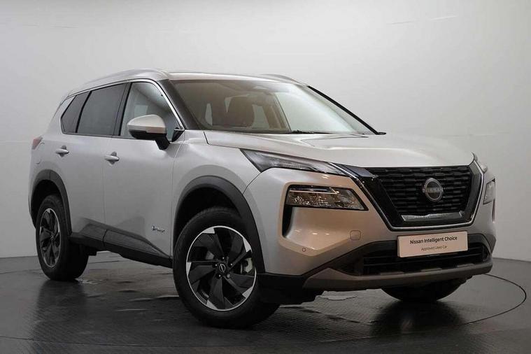 Android auto wireless, Blind spot warning, Drive assist custom mode, Drive modes (sport, normal, eco), Driver drowsiness and attention warning, e-Pedal step, Electric speed sensitive power steering, Emergency and breakdown call, Event data recorder, Front and rear parking sensors, Full Digital 12.3" TFT Digital Combimeter, Google maps services - search, weather, 3D maps and Google street view, Hands free power tailgate, Idle stop/start system, Intelligent around view monitor, Intelligent Cruise control (ICC), Intelligent driver alert system, Intelligent forward collision warning, Intelligent lane departure warning, Intelligent lane intervention, Intelligent lane keep assist, Maximum speed limiter, Moving object detection, Nissan connect 12.3 inch touchscreen infotainment system, Nissan connect nav with TomTom traffic, Propilot assist with Navi-Link, Push button starter, Rear cross traffic alert, Rear view camera, Remote control services - door locks, lights, horn and car locator, Reversing detection, Telematics - notifications and connectivity services, Traffic jam pilot, Traffic sign recognition with legal speed adjustment, Trip computer, Virtual personal assistant and firmware over the air capability, Wireless apple carplay, Wireless charging pad, 6 speakers, AM/FM audio system with DAB, Bluetooth audio streaming, Front USB connections (Type-A and Type-C), Rear USB charging only ports 2 Type-C, Auto dimming rear view mirror, Auto rear wiper when reversing, Body colour mirror caps, Body coloured door handles, Bodyside mouldings, Chrome side window finisher, e-POWER badging, Electric auto folding door mirrors, Electrically adjustable and heated door mirrors, Follow me home headlights, High beam assist, Intelligent auto headlights, LED 3rd brake light, LED daytime running lights, LED Headlights, LED rear lights, One touch front and rear electric windows with remote opening and closing, Partially body coloured bumpers, Rain sensing wipers, Rear reversing light (bulb lighting), Rear roof spoiler, Rear side wing doors, Rear styling plate, Shark fin antenna, Splash free wipers, Three blink turn signal, 12v power socket in dashboard and luggage, 3 bench rear seats in 2nd row, 3 rear headrests, 60/40 split folding rear seat bench, Butteryfly console, Chrome interior door handles, Cloth monoform upholstery, Driver and front passenger sunvisors with illuminated vanity mirrors, Driver seat back pocket, Dual zone automatic climate control with pollen filter, Front centre console and armrest, Front cupholders, Front door with bottle holders, Height adjustable driver's seat, Height adjustable front headrests, Height adjustable passenger seat, Leather shift knob, Leather steering wheel, Luggage board system, Luggage space lighting, Multifunction steering wheel, Passenger seat back pocket, Rear armrest with 2 cupholders, Rear door bottle holders, Single front passenger seat, Tilt/telescopic adjustable steering wheel, Two rear isofix child seat anchorage points with top tether, 3x3 point rear seatbelt pretensioners + load limiters, ABS with EBD and brake assist, Active brake limited slip, Auto hold function, Child locks on rear doors, Curtain and front side, far side airbags, Driver and passenger airbags, Driver, passenger and 2nd row rear seat belt reminder, Electronic parking brake, Front seatbelt pretensioners + load limiters, Height adjustable front seatbelts, Hill start assist, Intelligent blind spot intervention, Intelligent front emergency braking with pedestrian, cyclist recognition and junction assist, Intelligent rear automatic braking, Tyre pressure monitoring system, Vehicle dynamic control, Approach unlock and walk away lock, Engine immobiliser, Intelligent Key, Remote central door locking with deadlocking, Thatcham Cat.1 alarm, 18" Diamond cut alloy wheels, Tyre puncture repair kit,