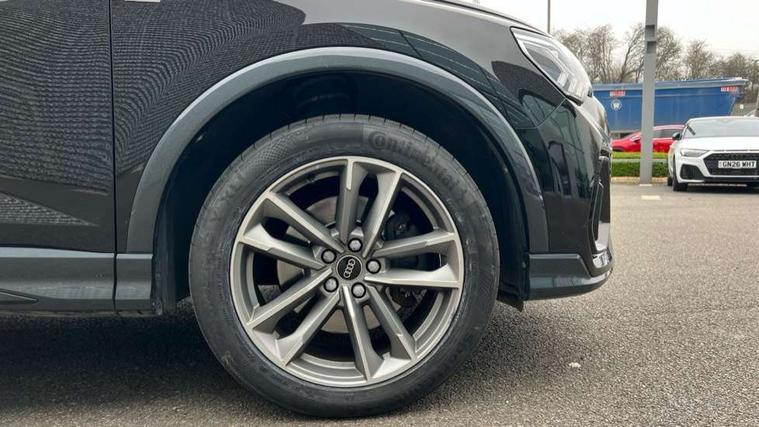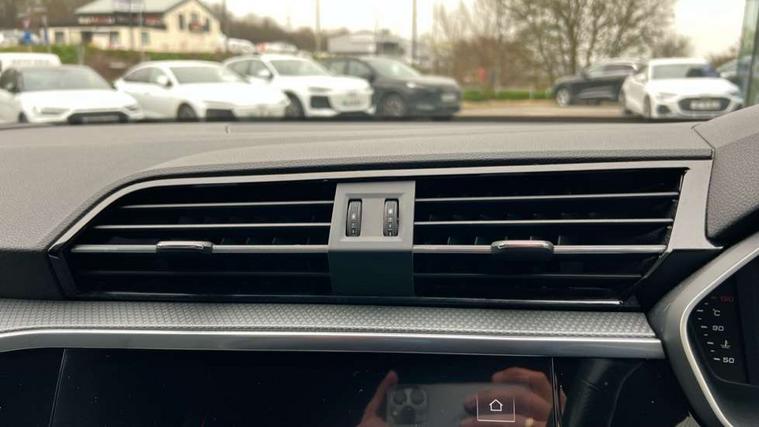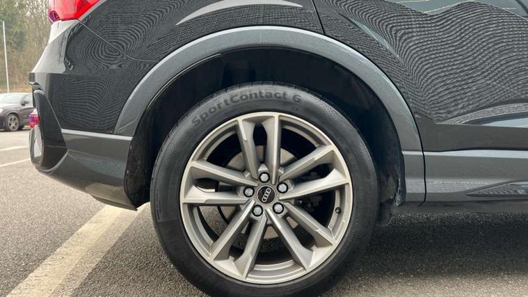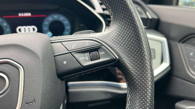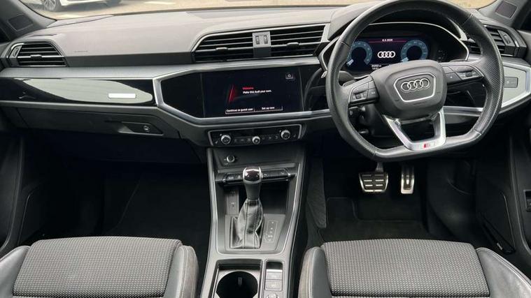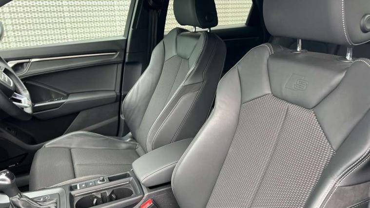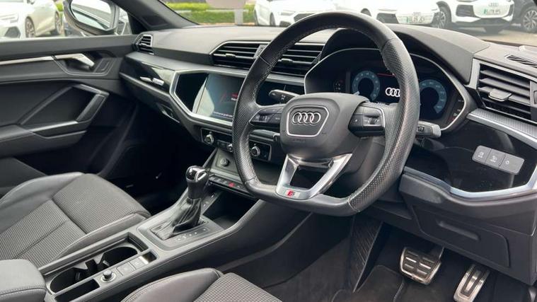 Audi connect safety and service (e-call), Audi drive select, Audi lane departure warning, Audi smartphone interface includes wireless Apple carplay/Android Auto, Audi Virtual Cockpit - 10.25" display, Bluetooth interface, Camera based traffic sign recognition, MMI Navigation Plus with high resolution 10.1 inch touchscreen colour display, Power operated tailgate, Progressive steering, Service interval indicator, Start stop system with recuperation, Voice control system with natural language interaction, Sports suspension, 2 USB-C ports with charge and data functions, 6 passive loudspeakers, DAB digital radio module, Acoustic windscreen, Auto dimming frameless rear view mirror, Bumpers and underbody protection in contrasting manhattan grey paint finish, Diffuser grille in grained matt black, Diffuser trim in selenite silver, Electrically folding, adjustable and heated door mirrors with integrated LED side indicators and kerb view function for passenger side, Front and rear electric windows, Front fog lights, Front side air inlets in selenite silver, High gloss black finish B and C pillars, LED headlights with LED daytime running lights, LED rear lights, LED third brake light, Privacy glass dark tinted rear and rear-side windows (from B-pillar backwards), Rain and light sensors, Rear side wing doors, Rear underbody protection in matt black, Rear wiper, Tinted rear windows, Variable front intermittent wipers, 12V socket in rear centre console, 3 seat bench in 2nd row, 40:20:40 folding with manual adjustment for 60:40 forwards/backwards position and backrest angle, Adjustable rear seat bench/backrest with centre armrest and cupholder, Black cloth headlining, Dual zone electronic climate control, Front and rear black floor mats with contrast stitching, Front and rear headrests, Front and rear roof module including reading lights, Front centre armrest, Glove compartment lighting, Height and reach adjustable steering wheel, Illuminated door sill trims with S logo, ISOFIX child seat mounting for front passenger with airbag deactivation and outer rear seat including top tether attachment point for outer rear seats, Luggage compartment light, Manual front seats with height adjustment, Perforated leather gearknob, Single front passenger seat, Stainless steel luggage compartment sill finisher, Stainless steel pedals, Black styling pack - Q3, Non smoking pack - Q3, 3x3 point rear seatbelts, 6 airbags - Driver, front passenger, curtain and side windows, Audi pre-sense front with pedestrain and cyclist recognition, Electrically operated child locks on rear doors, Electromechanical parking brake, Electronic stabilisation control including ABS, ASR and EDL, Front seatbelt reminder, Hill descent control, Hill hold assist, Pre sense basic, Seatbelt monitoring, Tyre pressure warning, Warning triangle and first aid kit, Anti theft alarm, Anti theft wheel bolts, Immobiliser, Remote central locking, Black dashboard, Detail dashboard around MMI touch colour display in glass look, black with surround in aluminium look, Leatherette door armrest, Piano black inlay,