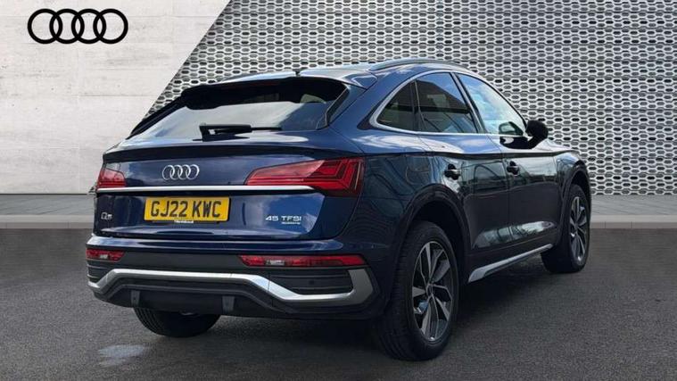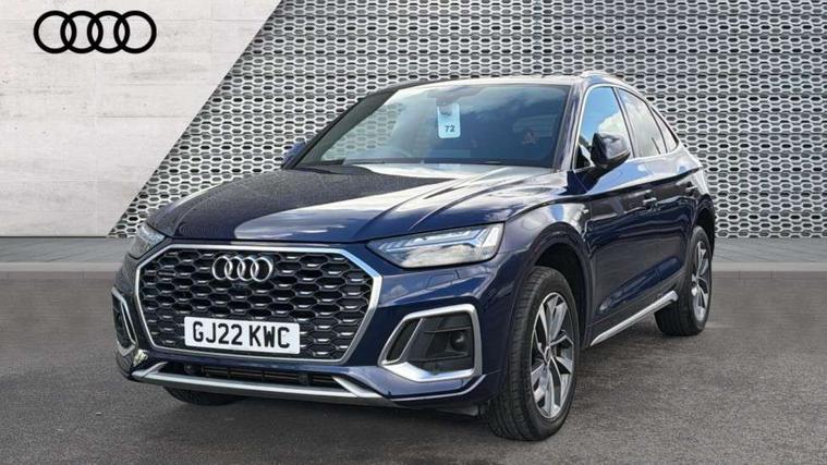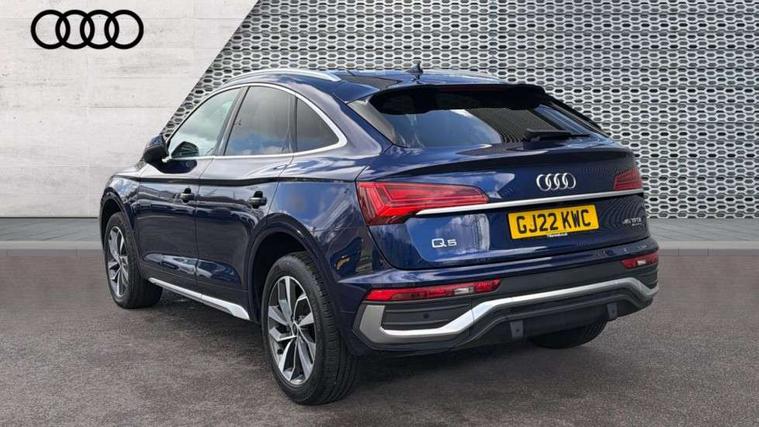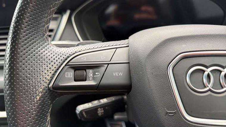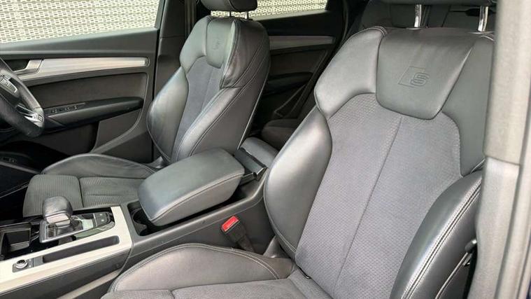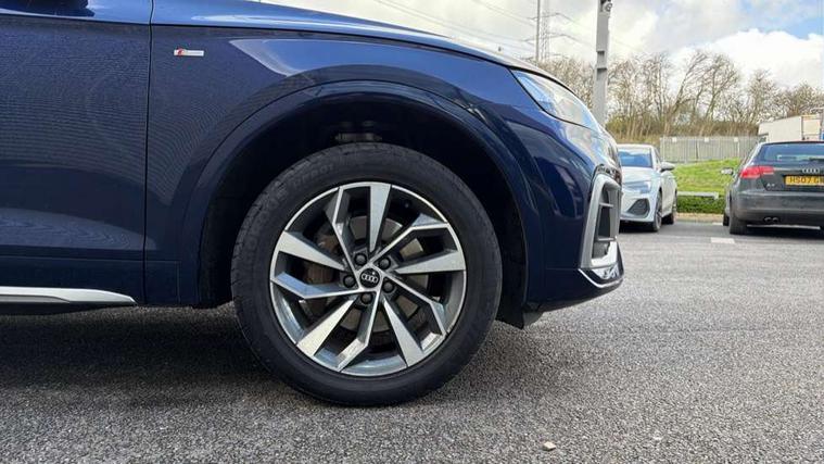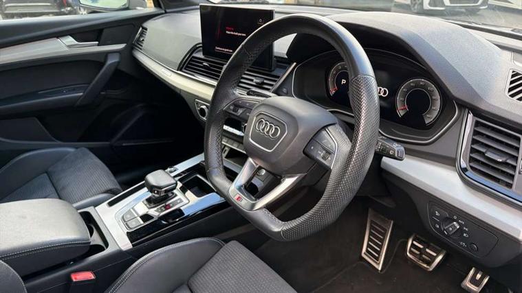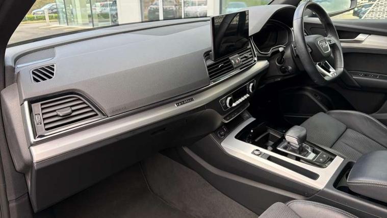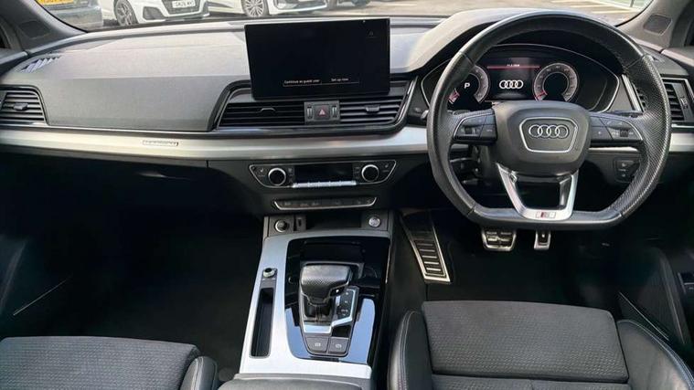 Audi connect safety and service (e-call), Audi connect with Amazon Alexa Integration, Audi drive select, Audi virtual cockpit plus with 12.3" screen and three different layout designs, Audi wireless smartphone interface, Automatic start-stop system with coasting functionality and efficiency programme, Bluetooth interface, Electro - mechanical power assisted steering, MMI navigation plus with 10.1" touch screen, Power tailgate, Reversing camera, Service interval indicator, Voice control system with Audi hotword activation "Hey Audi", Quattro on demand, S line sports suspension, 2 x USB charging port with aux input socket, DAB Digital radio, Acoustic windscreen, Aluminium roof rails, Audi matrix LED headlights with dynamic front and rear indicators, Auto dimming door mirrors, Auto dimming rear view mirror, Automatic headlights and windscreen wipers, Body colour door mirrors, Body colour rear diffuser with matt aluminium silver surrounds, Body colour underbody protection, Chrome plated exhaust trims, Daytime running lights, Door sills in Selenite silver, Electric adjustable/heated/folding door mirrors, Front air inlet surrounds in aluminium, Front and rear electric windows, Front radiator grille in honeycomb design, Headlight washers, High level LED brake light, Lower bumpers painted in contrast Manhattan grey, Rear chrome trim strip below lights, Rear privacy glass and rear side windows, Rear side wing doors, Rear wiper, Roof bars, S Line badges on the front wings, S Line front and rear bumpers, S Line rear spoiler, S Line side skirts, 3 rear headrests, 40:20:40 split folding 3 rear bench seat in 2nd row with rear centre armrest, Black cloth headlining, Comfort front centre armrest, Contrast stitching on seats, steering wheel and gear lever gaiter, Deluxe 3 zone electronic climate control, Front head restraints, Front/rear floor mats, Gear lever in black leather, Heated front seats, Height/reach adjustable steering column, Illuminated door sill trims with S logo, ISOFIX child seat mounting and top tether, Manual seat adjustment with 4-way electric lumbar support, Removable luggage compartment floor, Single front passenger seat, Stainless steel pedals, Sunvisors with vanity mirrors, Trunk roller cover, High gloss pack - Q5, LED interior light pack - Q5, 3 point seatbelts on all seats, 6 airbags - Driver, front passenger, curtain and side airbags, Electrically operated child locks on rear doors, Electromechanical parking brake, Electronic stabilisation control including ABS, ASR and EDL, Front passenger airbag deactivation, Hill descent control, Hill hold assist, Multi collision brake assist, Pop-up bonnet for pedestrian protection, Pre sense city, Seat belt force limiter, Seatbelt monitoring, Tyre pressure warning, Warning triangle and first aid kit, Anti theft alarm, Anti-theft wheel bolts, Keyless Go access/ignition system, Remote central locking, Matt brushed aluminium inlays,