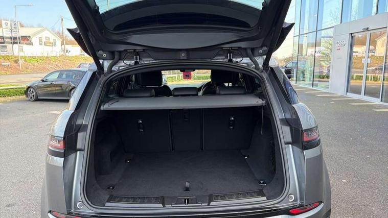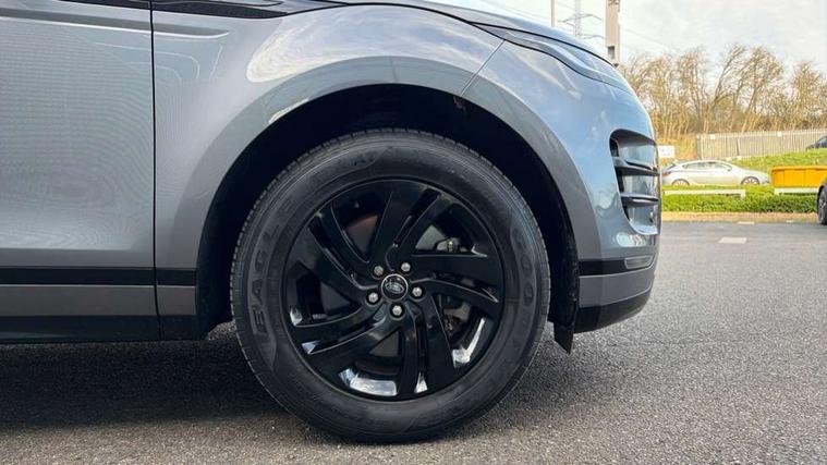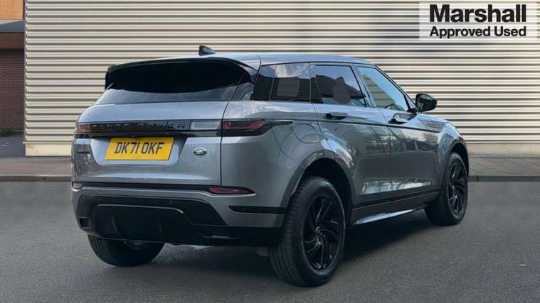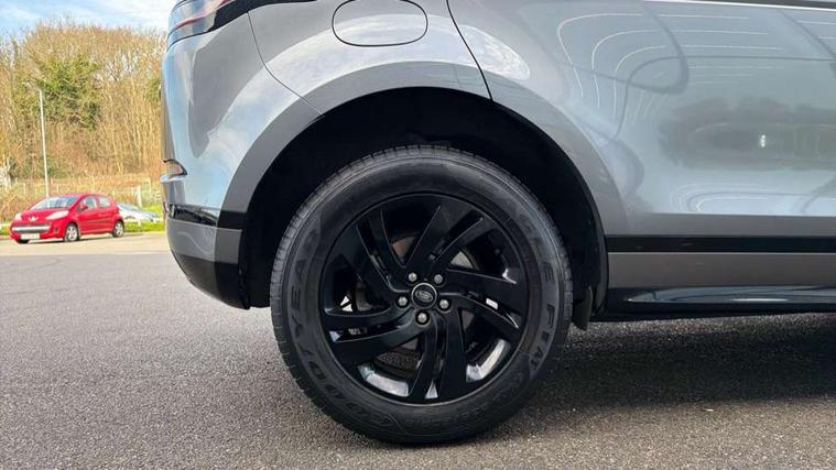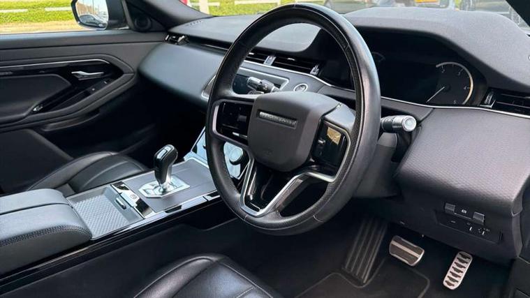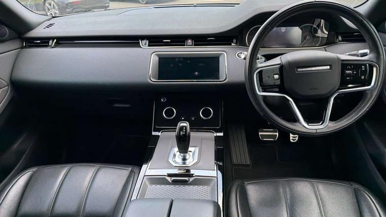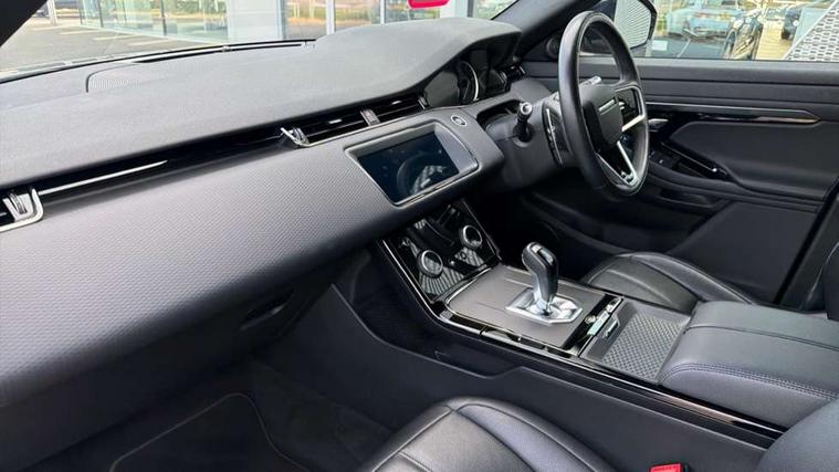 Android Auto, Apple car play, Bluetooth connectivity, Brake pad wear indicator warning light, Driver condition monitor, Electronic power assisted steering (EPAS), Front and rear parking aid, InControl remote, Land Rover InControl apps, Lane keep assist, Pivi pro connected includes upgraded infotainment, connected navigation pro, Nuance speech licence, Push button starter, Traffic sign recognition with adaptive speed limiter, Voice control system, All terrain progress control, Efficient Driveline, Passive suspension, Terrain Response 2 Auto, Digital Audio Broadcast radio-DAB, Steering wheel mounted controls, Electric windows with one touch open/close and anti trap, Evoque and R-Dynamic badge, Flush deployable exterior door handles, Heated rear window with timer, Heated washer jets, Heated windscreen, Power fold, auto-dimming, heated door mirrors with approach lights and auto dimming driver side, Rain sensing windscreen wipers, Rear fog lights, Tailgate spoiler, 40:20:40 split folding rear seats with centre headrest and armrest, Ambient interior lighting, Bright metal pedals, Isofix system on outer rear seats, Overhead lighting console, Overhead stowage for sunglasses, Passive front head restraints, Rear air vents, Rear centre headrest, Satin chrome gearshift paddles, Sunvisors with illuminated vanity mirrors, Twin sliding front centre armrest, 3 rear 3 point seatbelts, Anti-lock braking system (ABS), Customer configurable autolock, DSC - Dynamic Stability Control, Electronic brake force distribution, Electronic parking brake, Electronic traction control, Emergency braking, Front and rear seatbelt reminder, Hill descent control, Hill launch assist, Low traction launch, Power operated child locks, Roll stability control, Six airbags - Driver and passenger airbags/driver knee airbag/front side airbag and curtain airbags, Torque vectoring brake, Tyre pressure monitoring system, Alarm, Immobiliser, Intrusion sensor, Locking wheel nuts,