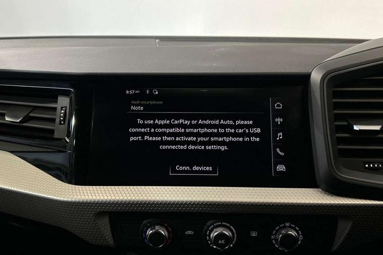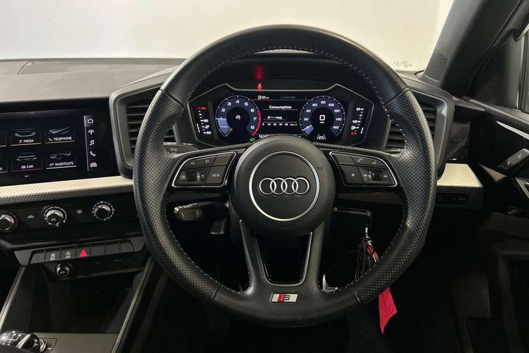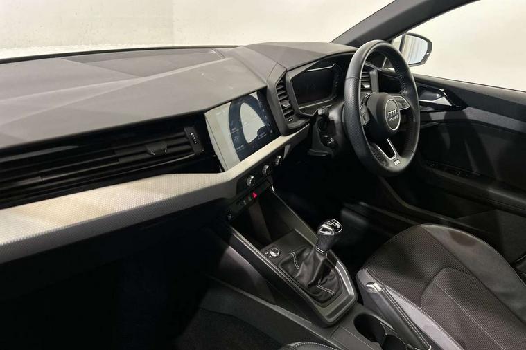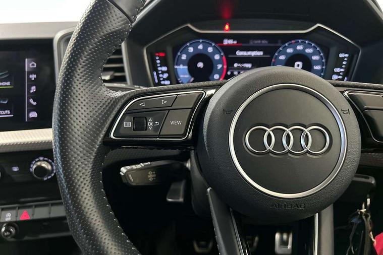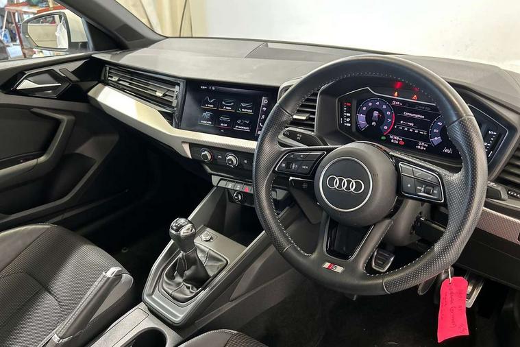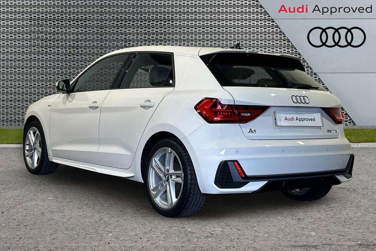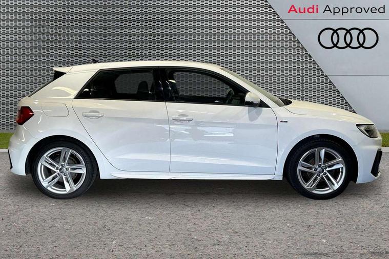 10.25" Digital instrument cluster display classis style instrument dials + speed, odometer, time, outside temperature, telephone menu + fuel level warning, Audi connect safety emergency and service including E-call, Audi smartphone interface with connect compatible smartphone via USB directly MMI display + Nav, music, third party apps controlled via MMI controller, Automatic start/stop system, Bluetooth interface, Cruise control, Driver's information system, Electromechanical power steering, Lane departure warning system, Rear parking sensor, Service interval indicator, Speed limiter, Voice control system, Washer fluid level indicator, Sports suspension, 1 x SDXC card reader, 1 x USB type C and 1 USB type A charging points, DAB Digital radio, MMI radio plus with 8.8" colour MMI display screen and MMI touch, Auto dimming rear view mirror, Body coloured door mirrors, Door sills with aluminium inlays and S Line logo, Electric front and rear windows, Electrically adjustable, heated, folding door mirrors with integrated LED side indicator, Front side air inlets in grained matt black and C frame in titanium black, Heat insulating glass windscreen and side windows, Heated rear windscreen, LED headlights with LED rear lights + dynamic rear indicators + headlight adjustment and high beam, turning light + LED daytime running lights, Radiator grille and rear diffuser in matt titanium black, Radiator protective grille frame in matt aluminium silver, Rain and light sensors, Rear fog lights, Rear wiper, S line badges on front wings, Side front spoiler lips in grained matt black, 12V socket in centre console with two cup holders, 3 rear seats with headrests, 40:60 Split folding rear seat or folded fully, Black cloth headlining, Driver and passenger seat with manual height adjust with forward and backwards adjustment, Front and rear black floor mats with contrast stitching in fine silver, Front head restraints, Height and reach adjustable steering wheel, ISOFIX child seat mounting for front passenger and outer rear seats including top tether attachment point of outer rear seats, Leather gear knob with aluminium trim, Luggage compartment light with front and rear reading lights, Manually adjustable lumbar support in front seats, Stainless steel pedals, LED interior lighting pack - A1, Luggage compartment pack - A1, S line exterior styling pack - A1 Sportback, 3x3 point rear seatbelts, Audi pre-sense front with pedestrain and cyclist recognition, Brake assist function, Driver and front passenger airbag with front side and head airbags, Electronic Stability Control including ABS, EBD, ASR and EDL, Front and rear seatbelt reminder, Front passenger airbag deactivation switch, Hill hold assist, Seatbelt height adjustment for front seats, Seatbelt monitoring, Tyre pressure warning light, Warning triangle and first aid kit, Anti theft alarm, Anti theft wheel bolts and loose wheel warning, Immobiliser, Remote central locking with 2 foldaway keys, Aluminium trim for control switches, air vents and digital instrument cluster, Silver grey inlays polygon structure in diamond paint finish, Structured grey accent areas including air vents, door handle recesses and centre console in quartz paint finish,