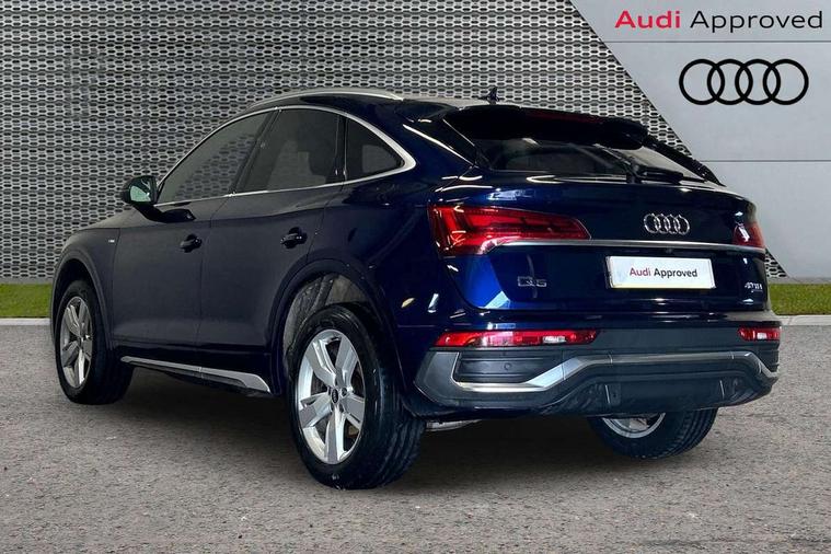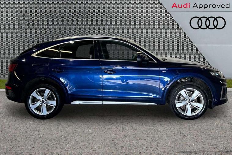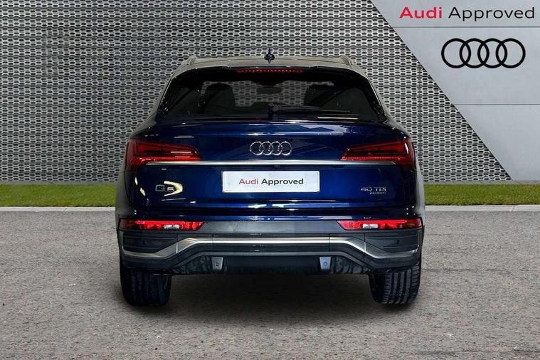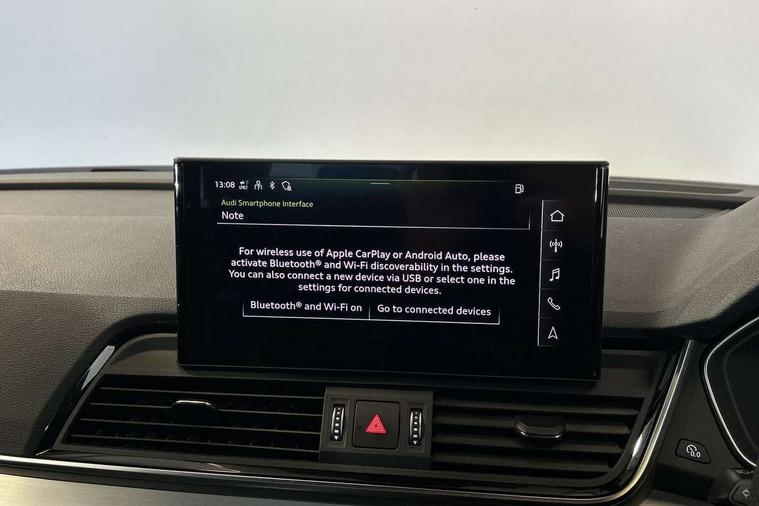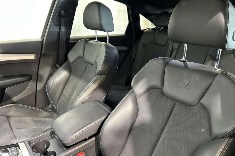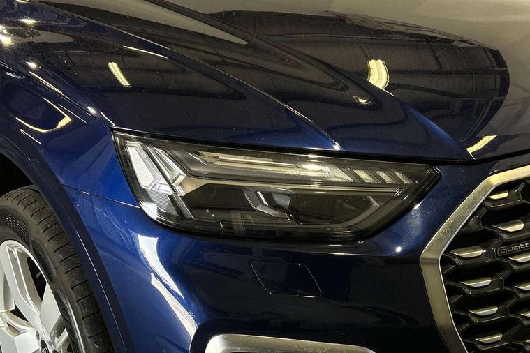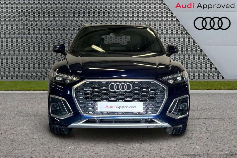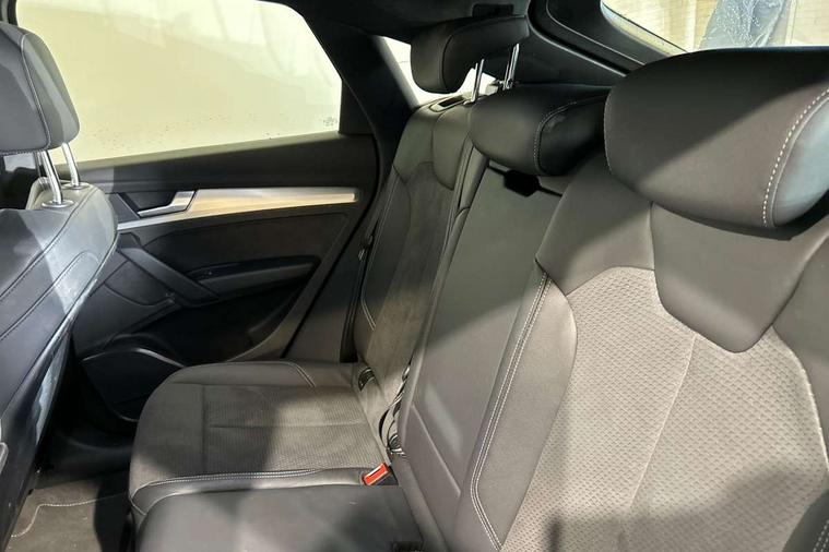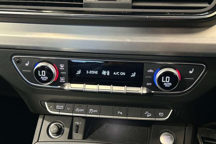 Audi connect safety and service (e-call), Audi connect with Amazon Alexa Integration, Audi drive select, Audi virtual cockpit plus with 12.3" screen and three different layout designs, Audi wireless smartphone interface, Automatic start-stop system with coasting functionality and efficiency programme, Bluetooth interface, Electro - mechanical power assisted steering, MMI navigation plus with 10.1" touch screen, Power tailgate, Reversing camera, Service interval indicator, Voice control system with Audi hotword activation "Hey Audi", Diesel particulate filter, Quattro on demand, S line sports suspension, DAB Digital radio, Acoustic windscreen, Aluminium roof rails, Audi matrix LED headlights with dynamic front and rear indicators, Auto dimming rear view mirror, Automatic headlights and windscreen wipers, Body colour door mirrors, Body colour rear diffuser with matt aluminium silver surrounds, Body colour underbody protection, Chrome plated exhaust trims, Door sills in Selenite silver, Electric adjustable/heated/folding door mirrors, Front air inlet surrounds in aluminium, Front and rear electric windows, Front radiator grille in honeycomb design, Headlight washers, Lower bumpers painted in contrast Manhattan grey, Rear chrome trim strip below lights, Rear privacy glass and rear side windows, Rear spoiler, Rear wiper, Roof bars, S Line badges on the front wings, S Line front and rear bumpers, S Line side skirts, 2 x USB charging port with aux input socket, 3 rear headrests, 40:20:40 split folding rear seat with rear centre armrest, Black cloth headlining, Comfort front centre armrest, Contrast stitching on seats, steering wheel and gear lever gaiter, Deluxe 3 zone electronic climate control, Front head restraints, Front/rear floor mats, Gear lever in black leather, Heated front seats, Height/reach adjustable steering column, Illuminated door sill trims with S logo, ISOFIX child seat mounting and top tether, Manual seat adjustment with 4-way electric lumbar support, Removable luggage compartment floor, Stainless steel pedals, Sunvisors with vanity mirrors, Trunk roller cover, High gloss pack - Q5, LED interior light pack - Q5, 3 point seatbelts on all seats, 6 airbags - Driver, front passenger, curtain and side airbags, Electrically operated child locks on rear doors, Electromechanical parking brake, Electronic stabilisation control including ABS, ASR and EDL, Front passenger airbag deactivation, Hill descent control, Hill hold assist, Multi collision brake assist, Pop-up bonnet for pedestrian protection, Pre sense city, Seat belt force limiter, Seatbelt monitoring, Tyre pressure warning, Warning triangle and first aid kit, Anti theft alarm, Anti-theft wheel bolts, Keyless Go access/ignition system, Matt brushed aluminium inlays,