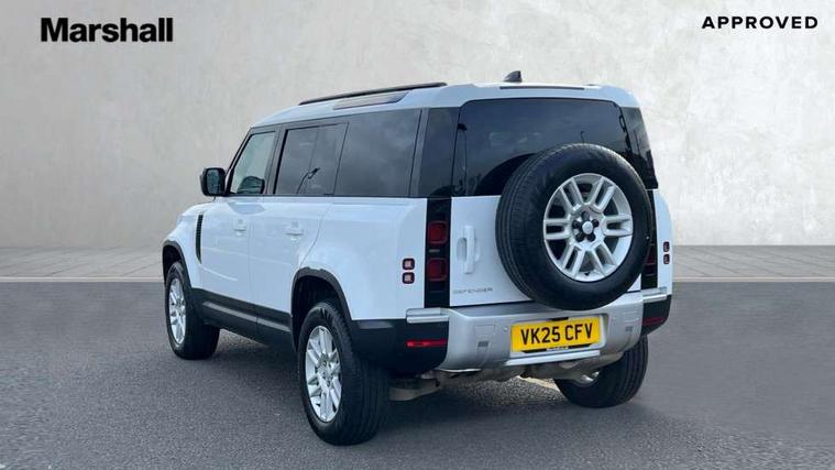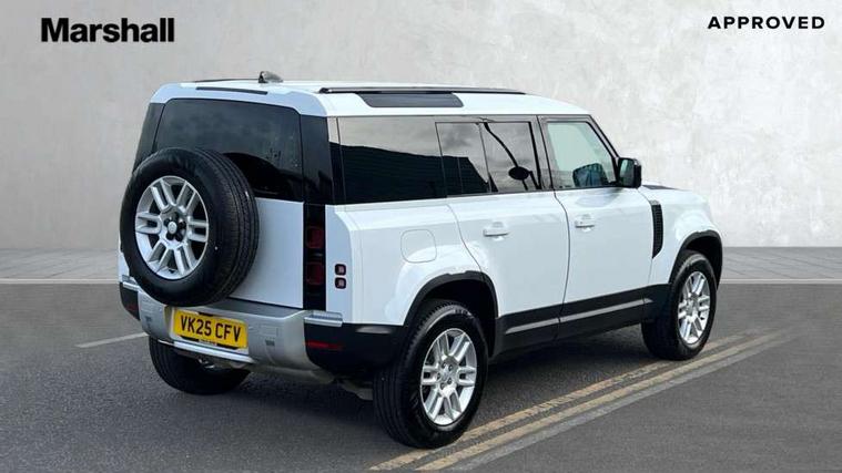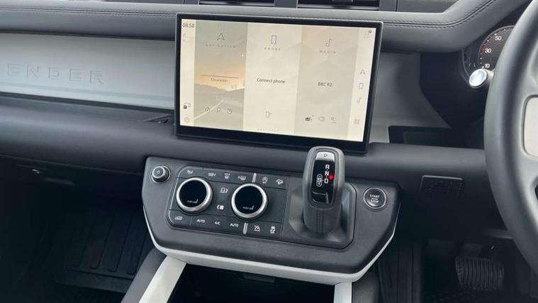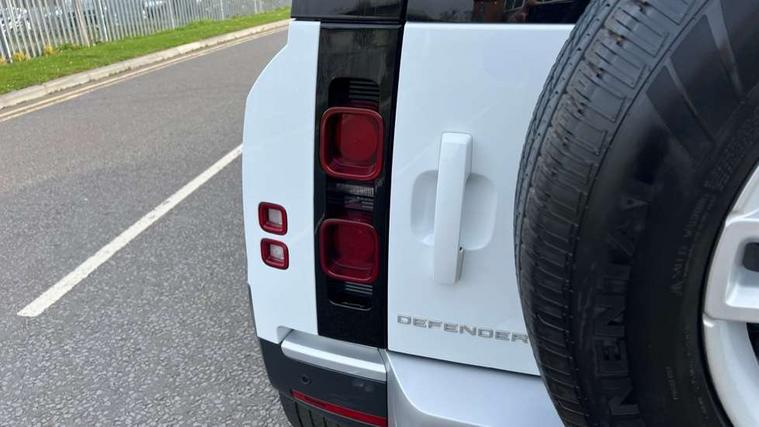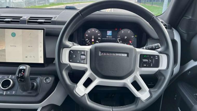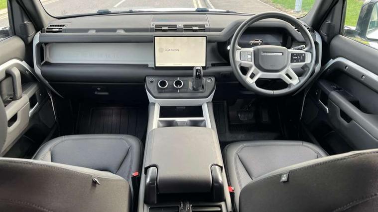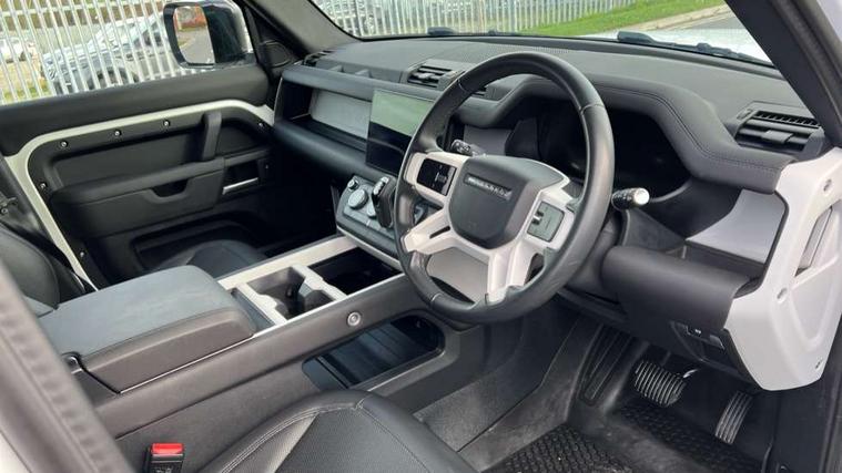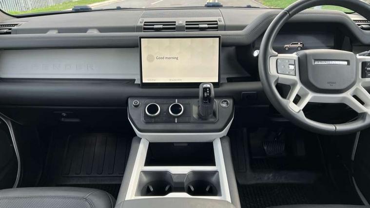 Customer Configurable Autolock, 11.4" touchscreen, 360 parking aid, 3D Surround Camera with 360 View, 180 Rear View, Front Traffic Detection, Forward Vehicle Guidance, Tow Hitch Assist and clear sight Ground View, Adaptive cruise control, Brake Hold, Driver condition monitor, Electric power assisted steering (EPAS), Lane keep assist, Low traction launch, Pivi pro connected, Traffic sign recognition adaptive speed limiter, Trip computer, Tyre pressure monitor, Android Auto, Apple CarPlay, DAB Radio (Digital Audio Broadcasting), Alpine lights, Assisted tailgate, Auto High Beam Assist, Automatic headlight levelling, Automatic headlights and rain sensitive front wipers, Body coloured bonnet, Centre high mounted stop light, Electric heated/power fold door mirrors with approach lights and auto dimming driver side, Electric windows with one touch open/close and anti-trap, Exterior signage panel, Follow me home lighting, Heated rear window with timer, Heated windscreen, LED tail light, Premium LED headlights with signature DRL, Privacy glass, Puddle lights, Rear fog lights, Rear wash wiper, Side-hinged tailgate, Standard roof, Standard tail door, Standard tread plates, 12 way heated semi powered front seats including rear centre armrest, 40:20:40 folding rear seats, Additional lashing points, Dual zone climate control, Durable rubber cabin flooring, Footwell lights, Full height bulkhead behind row 1 seats, Glovebox storage, High sided rubber mats, Loadspace cover, Loadspace hooks, Loadspace rubber mat, Lockable and illuminated underfloor storage compartment (x1 under boot floor and x1 accessible via rear doors), Overhead stowage for sunglasses, Rear centre headrest, Rear reading light, Resist gearshift, Standard interior, Standard Non-Leather steering wheel, Standard seating configuration, Sunvisors with illuminated vanity mirrors, Upgraded loadspace LED lighting, Online pack - Defender with data plan, Brake pad wear indicator, Cross car beam in Light cloud Powder Coat finish, Electronic traction control, Emergency braking, Front airbags, with passenger seat occupant detector, Power operated child locks, Remote for (e-Call, Optimised assistance call, InControl app, Climate, beep and flash and door), Seat belt reminder, Intrusion sensor, Keyless entry system, Locking wheel nuts, Spare wheel lock, 8 speed automatic transmission, ABS and EBA, All wheel drive, CBC - (Cornering brake control), Dynamic stability control, Electronic brake force distribution, Electronic park brake, Gradient acceleration control, Hill Descent Control, Hill start assist, Particulate filter (DPF), Push button start, Roll stability control, Trailer stability assist, Twin speed transfer box (high/low range),