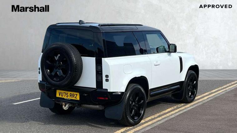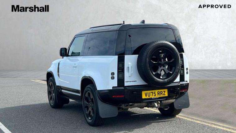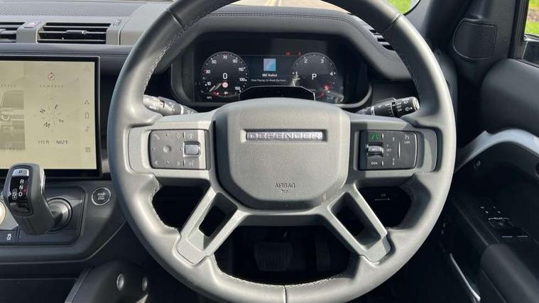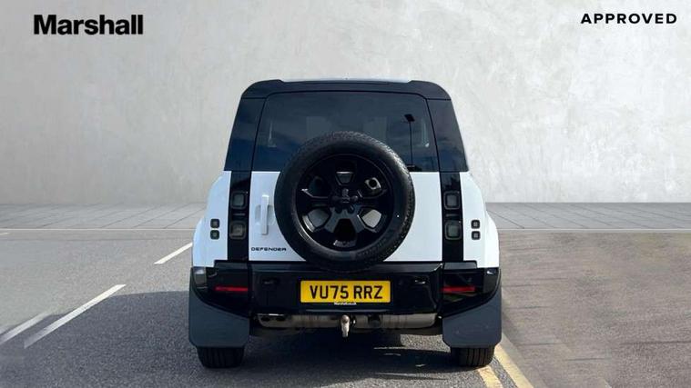 1 x USB-C (power only) & 1 x USB-C (power & data) in Row 1, 2 x USB-C in Row 2, 11.4" touchscreen, 360 degree parking aid, 3D Surround Camera with 360 View, 180 Rear View, Front Traffic Detection, Forward Vehicle Guidance, Tow Hitch Assist and clear sight Ground View, Adaptive cruise control, Android Auto, Apple CarPlay, Blind spot assist, Bluetooth system, Brake pad wear indicator, Clear exit monitor, Connected navigation pro, Driver attention monitoring system, Electric power assisted steering (EPAS), Interactive driver display, Lane keep assist, Push button start, Rear collision monitor, Rear traffic monitor, Traffic sign recognition with adaptive speed limiter, Trip computer, Wireless device charging, 8 speed automatic transmission, All wheel drive system, Twin speed transfer box, DAB Radio (Digital Audio Broadcasting), Meridian 400w sound audio system with 11 speakers and subwoofer, Pivi pro connected, Automatic headlight levelling, Automatic headlights, Black exposed rear recovery eyes, Body coloured bonnet, Darkened LED tail lights, Electric heated/power fold door mirrors with approach lights and auto dimming driver side, Electric windows with one touch open/close and anti-trap, Follow me home lighting, Front fog lights, Heated rear window with timer, Heated windscreen, LED 3rd brake light, LED tail lights, Panoramic rear side glass, Privacy glass, Puddle lights, Rain sensing windscreen wipers, Rear fog lights, Rear wiper, Side hinged tailgate, Standard tail door, Trailer stability assist, X-Dynamic badge, 12V power socket in loadspace, 3 seat bench in 2nd row, Alpine lights, Configurable cabin lighting, Durable rubber cabin flooring, Durable rubber loadspace flooring, Ebony carpet mats, Flat load space floor tray, Footwell lights, Front head restraints, Loadspace cover, Loadspace Hook, Multifunction steering wheel, Overhead stowage for sunglasses, Rear headrests, Rear ISOFIX, Rear reading lights, Single front passenger seat, Standard seat configuration, Storage glovebox, Sunvisors with illuminated vanity mirrors, Twin front cupholders, Non-smoker package, Online pack with data plan - Defender, 5 x 3 point seatbelts, ABS, Brake hold function, Cornering brake control (CBC), Customer configurable autolock, Driver and passenger airbags, DSC - Dynamic Stability Control, EBD - Electronic brakeforce distribution, Electric parking brake (EPB), Emergency brake assist, Emergency braking, ESP + traction control, Front airbags with passenger seat occupant detector, HDC - Hill descent control, Hill launch assist, Low traction launch, Remote for (e-Call, Optimised assistance call, InControl app, Climate, beep and flash and door), RSC - Roll stability control, Seat belt reminder, TPMS (Tyre pressure monitoring system), Alarm, Immobiliser, Intrusion sensor, Keyless entry, Locking wheel nuts, Secure tracker pro,
