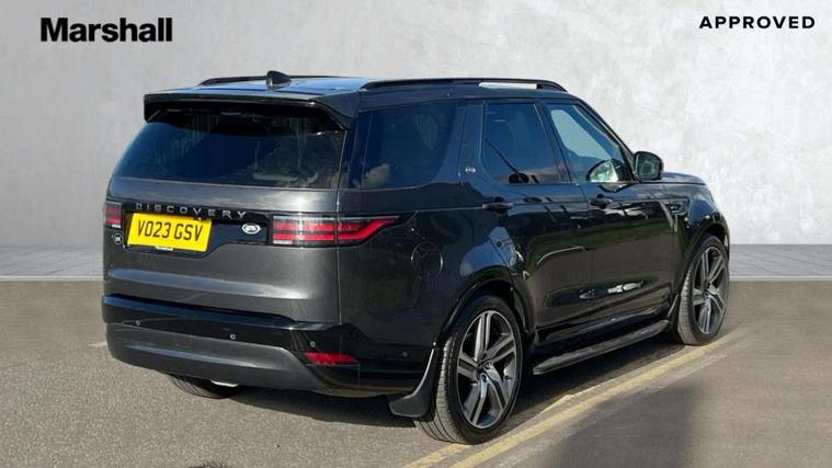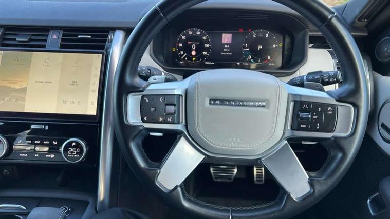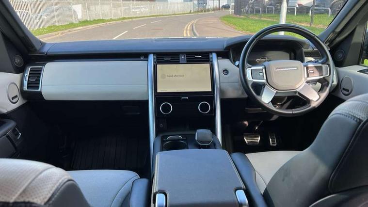 11.4" touchscreen, 3D surround camera, Adaptive cruise control, Android Auto, Apple car play, Blind spot assist, Driver condition monitor, Electric power assisted steering (EPAS), Emergency services call system, Front and rear parking aid, Lane keep assist, Power inner tailgate, Push button start, Rear collision monitor, Rear traffic monitor, Remote, Remote boot release, Service interval indicator, Speed proportional steering, Sportshift selector, Stop/start system, Traffic sign recognition with adaptive speed limiter, Trip computer, Wade Sensing, Adaptive dynamics, Dynamic stability control, Electronic air suspension, Front axle open differential, Digital Audio Broadcast radio-DAB, Dynamic volume control, Meridian surround sound system - 14 speaker + subwoofer, 18 channel amplifier, 700W, Pivi pro connected, USB/aux input socket, Acoustic laminated windscreen, Animated directional indicators, Auto dimming interior rear view mirror, Automatic headlight levelling, Automatic headlights, Body colour bumpers, Body colour door handles, Centre high mounted stop light, D300 badge, Electric heated/power fold memory door mirrors with approach lights and auto dimming driver side, Electric windows with one touch open/close and anti-trap, Heated rear window, Heated windscreen, LED darkend tail lights, Matrix LED headlights with signature DRL, Metal treadplates with R-Dynamic branding, Narvik black Discovery script, Privacy glass, Puddle lights, Rain sensing windscreen wipers, Rear fog lights, Rear side wing doors, Rear wash/wipe, Trailer stability assist, Variable intermittent wiper, 12V power sockets, 12V USB charging socket in loadspace, 2 seat bench in 3rd row, 3 seat bench in 2nd row, Central hinged twin lidded storage, Ebony morzine headlining, Electric adjustable steering column, First and second row door bins, Footwell lights, Front and rear 12V with front USB, Front passenger seat isofix location point, In-facia storage, Isofix child seat preparation for front passenger seat, Loadspace cover, Loadspace Hook, Loadspace light, Lockable glovebox, Lower centre console storage, Luggage tie downs in loadspace, Multi function steering wheel, Overhead lighting console, Premium cabin lighting, Premium carpet mats, Rear ISOFIX, Shopping bag hook, Single front passenger seat, Storage glovebox, Sunvisors with illuminated vanity mirrors, Third row storage, Twin front cupholders with cover, USB with 12V socket in centre console, Online pack with data plan - Discovery, R-Dynamic black exterior pack - Discovery, 3x3 point rear seatbelts, Anti-lock braking system (ABS), Brake pre-fill technology, Cornering brake control, Curtain airbags, Customer configurable autolock, Driver and passenger airbags, EBD - Electronic brakeforce distribution, Electronic traction control, Emergency brake assist, Emergency braking, ESP, Front side airbags, Gradient acceleration control, Hill descent control, Hill launch assist, Power operated child locks, Rear airbags, Roll stability control, Seat belt reminder, Torque vectoring brake, Tyre pressure monitoring system, Immobiliser, Intrusion sensor, Keyless entry, Locking wheel nuts, Remote central locking, All terrain tyres,