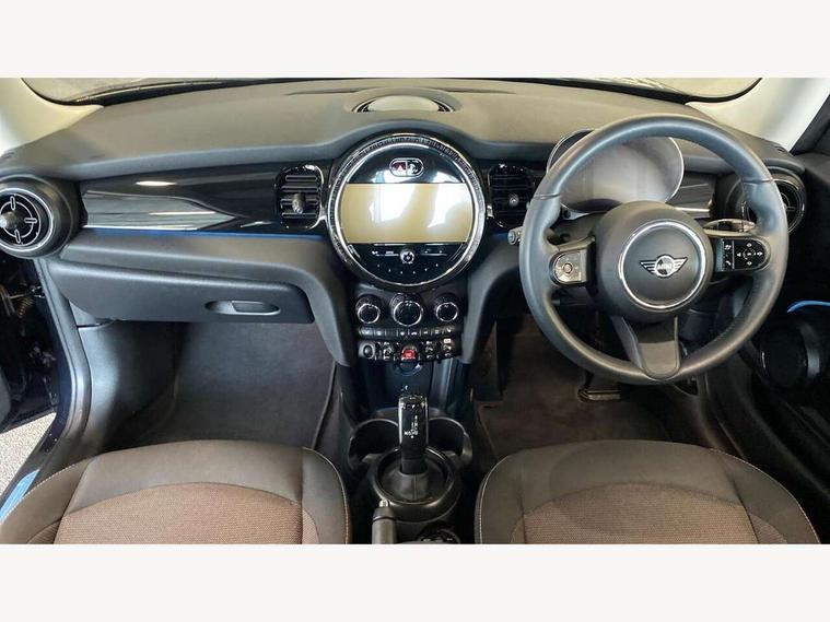 Apple CarPlay, Automatic start/stop function with brake energy recuperation, Compatible mobile phone bluetooth with audio streaming, Cruise control with brake assist, Electro-mechanical speed dependant steering assistance, Flexible car sharing preparation, Instrument cluster, Mini E-call, MINI TeleServices, On board computer, Service interval indicator, Double Vanos system, Fully variable valve control, High precision injection, Performance Control, Steptronic transmission with double clutch, 8.8" touchscreen with LED ring, FM tuner and DAB digital radio, 3rd brake light, Automatic headlight activation switch, Body colour fuel filler cap, Chrome border high gloss black slats radiator grille, Dynamic brake lights, Electric front windows, Exhaust tailpipe on left with chrome finisher, Heated rear window, Heated windscreen washer jets, LED headlight with closed ring and daytime driving lights, Metal door sill strips with MINI imprint, Model logo Cooper on right of tailgate, Rain sensor window wipers, Rear fog lights, Rear LED lights with union jack design, Rear window wiper, Side scuttle panel with integrated indicator, Sun/heat protection glass, White indicator lenses, 12V Accessory socket in centre console, 2 seat bench in 2nd row, 4 lashing eyes in luggage compartment, 60/40 split folding rear seat, Ambient lighting, Carbon black colour line - Knee roll and door armrest, Chrome interior highlights, Cupholders, Front and rear head restraints, Front and rear isofix with front passenger airbag deactivation, Front floor mats in velour, Glove compartment, Height and length steering column adjustment, Interior lighting with 12 different colours across the dashboard, underneath door bezel with illuminated laser-engraved design on central display, Leatherette gearshift lever and handbrake gaiters, LED reading lights, vanity mirror lights, front foot well light and spotlight on front seats, Manual air conditioning, Mechanical seat adjustment - forward/back & backrest for front seats and driver seat height adjust, Multifunction steering wheel, Passenger seat height adjuster, Satellite grey headlining including grab handles and clothes hooks, Single front passenger seat, Sport leather steering wheel with speed limiter and audio/communication controls, Storage compartments in doors, Sunvisors with vanity mirrors, 3 point seatbelts on all four seats, 6 Airbags - front, side, head and seat belt tensioners, Anti-lock braking system (ABS), DSC - Dynamic Stability Control, Front and rear disc brakes, Single tone fanfare horn, Tyre pressure monitoring system, Alarm system with tilt sensor, monitoring doors, bonnet interior and tailgate, Electronic vehicle immobiliser, Start/stop toggle with keyless go, Piano black interior trim, Tool kit, Tyre repair kit,