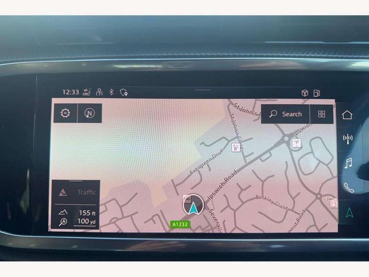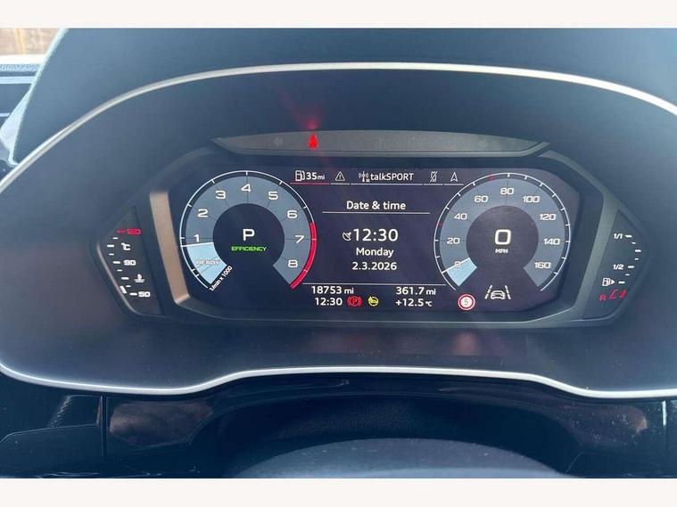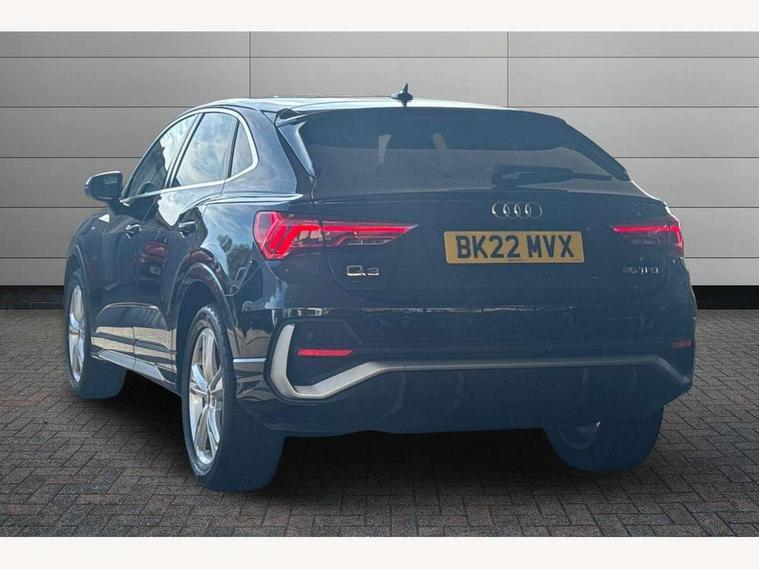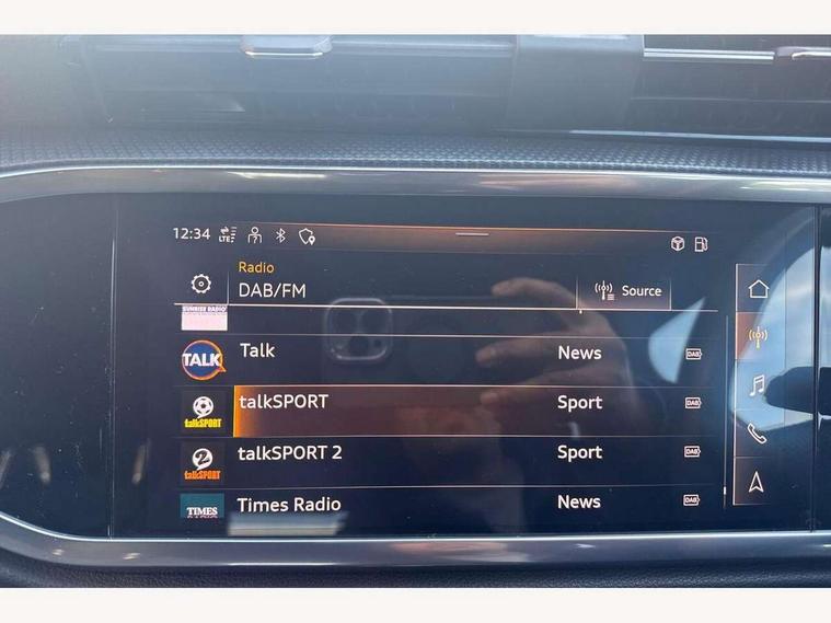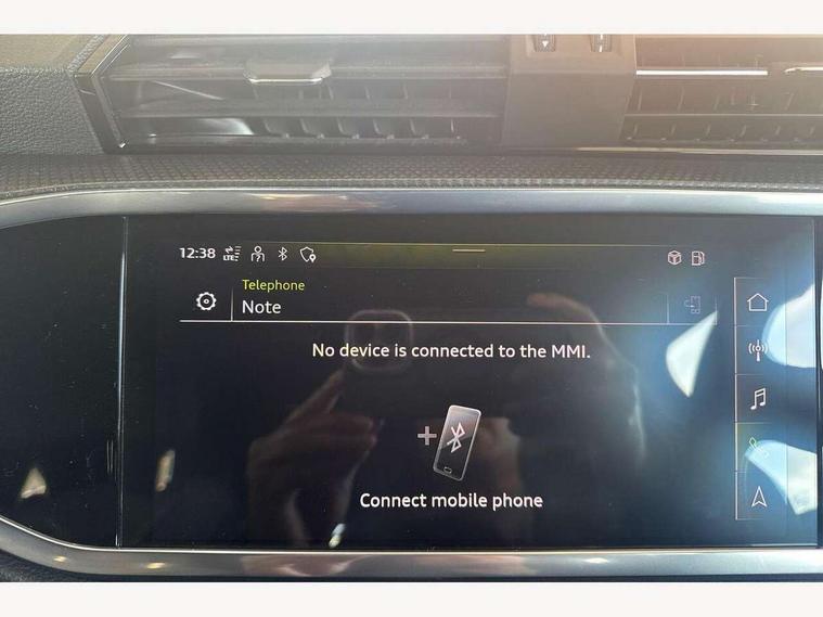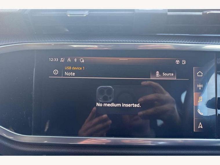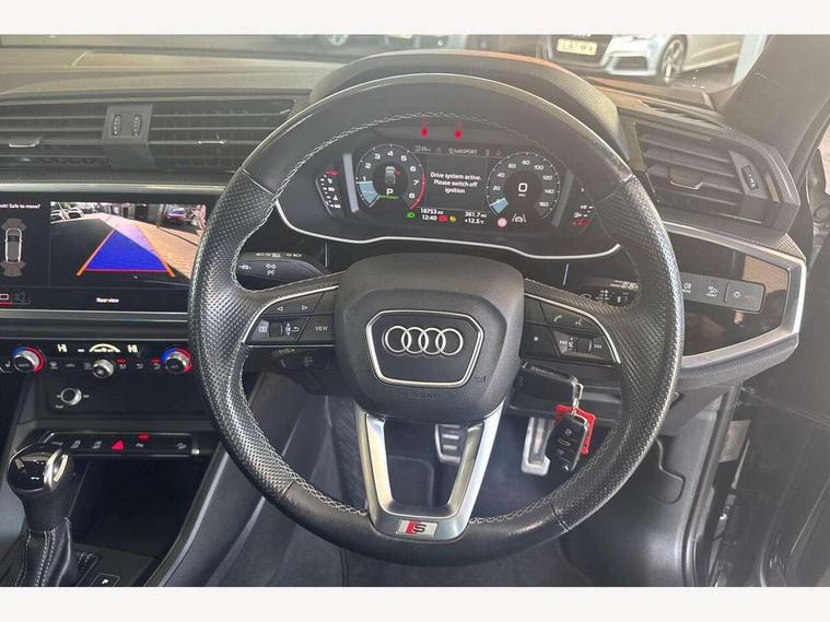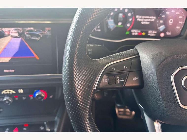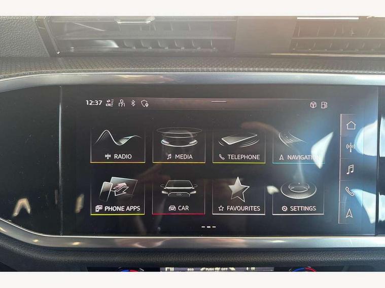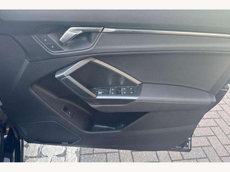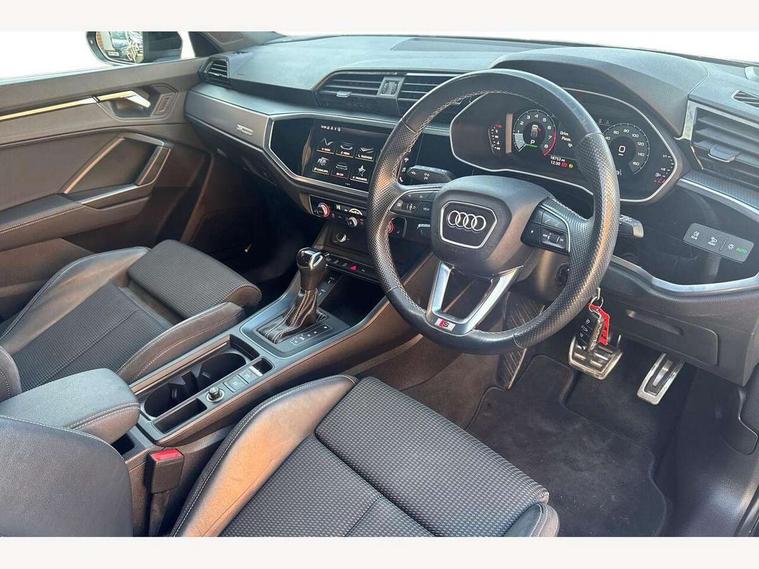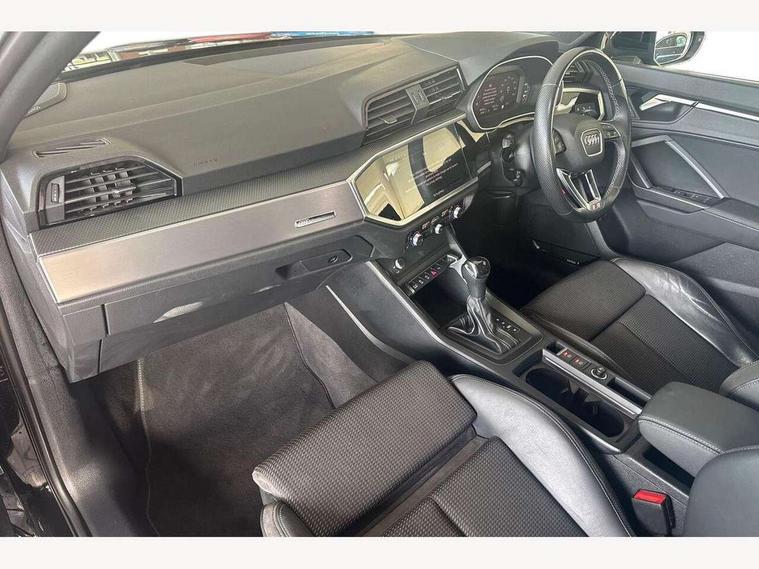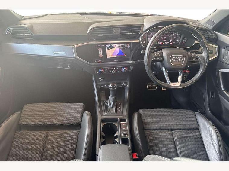 Audi connect safety and service (e-call), Audi drive select, Audi lane departure warning, Audi Virtual Cockpit - 10.25" display, Bluetooth interface, Camera based traffic sign recognition, MMI Navigation Plus with high resolution 10.1 inch touchscreen colour display, Power operated tailgate, Progressive steering, Service interval indicator, Smartphone interface includes wireless Apple carplay/Android Auto, Start stop system with recuperation, Voice control system with natural language interaction, 48V Mild hybrid technology, Sports suspension, 2 USB-C ports with charge and data functions, 6 passive loudspeakers, DAB digital radio module, Acoustic windscreen, Aluminium window trim, Auto dimming frameless rear view mirror, Diffuser grille in grained matt black, Diffuser trim in selenite silver, Electrically folding, adjustable and heated door mirrors with integrated LED side indicators and kerb view function for passenger side, Front and rear electric windows, Front fog lights, Front side air inlets in selenite silver, Front underbody protection in manhattan grey paint finish, Grille surround in aluminium silver matt, High gloss black finish B and C pillars, LED headlights with LED daytime running lights, LED rear lights, LED third brake light, Privacy glass dark tinted rear and rear-side windows (from B-pillar backwards), Radiator grille in titanium black with inlay in matt aluminium silver, Rain and light sensors, Rear side wing doors, Rear underbody protection in matt black, Rear wiper, S line badges on front wings, Side skirt insert in matt Platinium grey, Variable front intermittent wipers, 12V socket in rear centre console, 3 seat bench in 2nd row, 40:20:40 folding with manual adjustment for 60:40 forwards/backwards position and backrest angle, Adjustable rear seat bench/backrest with centre armrest and cupholder, Black cloth headlining, Dual zone electronic climate control, Front and rear black floor mats with contrast stitching, Front and rear headrests, Front and rear roof module including reading lights, Front centre armrest, Glove compartment lighting, Height and reach adjustable steering wheel, Illuminated door sill trims with S logo, ISOFIX child seat mounting for front passenger with airbag deactivation and outer rear seat including top tether attachment point for outer rear seats, Luggage compartment light right in white, Luggage compartment sill protection in stainless steel, Manual front seats with height adjustment, Perforated leather gearknob, Single front passenger seat, Stainless steel pedals, Non smoking pack - Q3, 3x3 point rear seatbelts, 6 airbags - Driver, front passenger, curtain and side windows, Audi pre-sense front with pedestrain and cyclist recognition, Electromechanical parking brake, Electronic stabilisation control including ABS, ASR and EDL, Front seatbelt reminder, Hill descent control, Hill hold assist, Manual child lock in rear doors, Pre sense basic, Seatbelt monitoring, Tyre pressure warning, Warning triangle and first aid kit, Anti theft alarm, Anti theft wheel bolts, Immobiliser, Remote central locking, Black dashboard, Dark matt brushed aluminium inlay, Detail dashboard around MMI touch colour display in glass look, black with surround in aluminium look, Leatherette door armrest, Tool kit, Tyre repair kit,