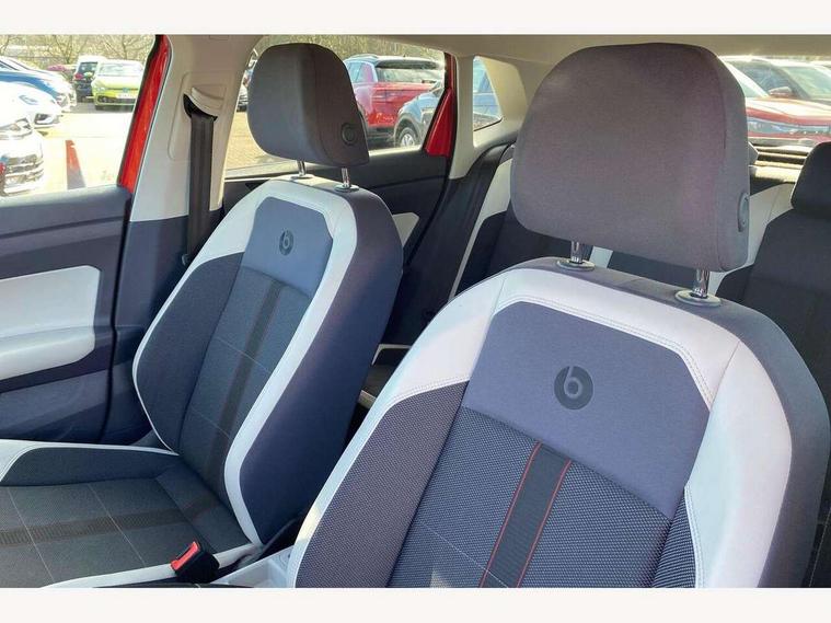 Digital clock, Driver alert system, Emergency call service, Lights on warning, Multifunction computer plus, Power assisted speed sensitive steering, Speedo and rev counter, electronic odometer, trip, service interval display and fuel gauge, Start/stop system, Volkswagen connect, Warning buzzer and light for front seatbelts unfastened, Wireless app connect, Battery regeneration during braking, Galvanished body, Beats audio system with 6 speakers, digital 8 channel amplifier, subwoofer, 300w total power output, Diversity antenna for FM reception, Black door mirrors with integrated indicators, Black grille with chrome surround, Black radiator grille with chrome louvres, Body colour bumpers, Body colour door handles, Body coloured side sills, Electric front windows, Electrically adjustable and heated door mirrors with reverse activated kerb view adjustment on passenger's side, Front windscreen washers and wipers with 4 speed intermittent delay, Heat insulating rear tinted glass from B-pillar backwards approx 65% tinted, Heated rear window with auto timer, High level 3rd brake light, LED daytime running lights, LED rear number plate lights, Rear electric windows, Rear windscreen washer and wiper with interval delay, reverse activated, Unique beats decals on bonnet and roof, Unique beats door sill protectors, Unique beats logo on B pillar, 2 bag hooks in luggage compartment, 2 front and 2 rear reading lights, 2 front cupholders and 12 V socket with cover, 3 rear head restraints, 60/40 split folding rear seat, Centre console storage with open storage compartment, Driver and front passenger sunvisors with illuminated vanity mirrors, Dust/pollen filter, Folding rear seat backrest, Front + rear carpet mats, Front head restraints, Front seat backrest storage pockets, Front sport seats with height adjustment and beats logo on rear backrest, Gear lever gaiter in black trim surround, Glovebox, Handbrake grip button in chrome effect, Height/reach adjustable steering column, Instrument lighting, adjustable panel illumination, Interior light with delay, Isofix Preparation 2 Rear child seats, Leather gear knob and handbrake grip, Leather multifunction steering wheel, Leatherette door panels, Luggage compartment cover, removable, Luggage compartment lighting, Storage compartment in front doors, Storage compartment in rear doors, Storage compartment under front seats, Tracks 2 cloth seat centre section leatherette with side bolsters, 3 point height adj front seatbelts + pretensioners, 3x3 point rear seatbelts, ABS, Automatic post collision braking, Driver/front passenger airbag, Drivers and front passengers safety optimised head restraints, ESP with EDL + ASR, Front and rear passenger curtain airbags, Front disc brakes and rear drum brakes, Front passenger airbag deactivation, Front seat side impact airbags, HBA (Hydraulic Brake Assist), Hill hold control, Single tone horn, Tyre pressure monitoring system, Alarm with interior protection and deactivation via infotainment system, Electronic engine immobiliser, Remote central locking with 2 remote folding keys, Air vents in High gloss black, Limestone grey decorative inserts, Velvet red trim in dash and centre console,