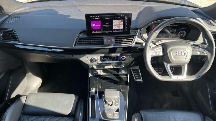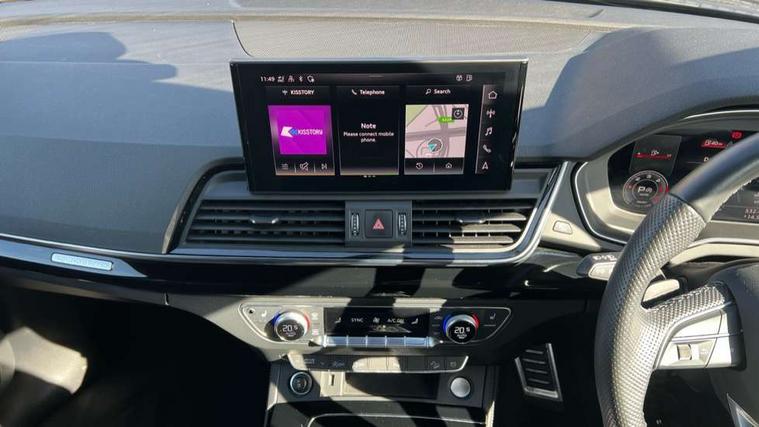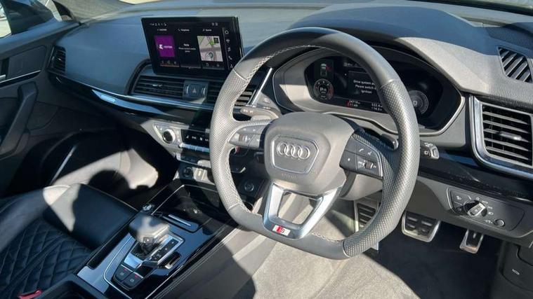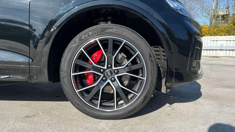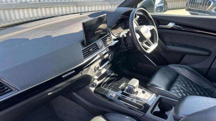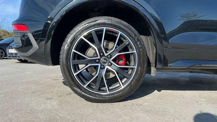 Audi connect safety and service (e-call), Audi connect with Amazon Alexa Integration, Audi drive select, Audi virtual cockpit plus with 12.3" screen and three different layout designs, Audi wireless smartphone interface, Automatic start-stop system with coasting functionality and efficiency programme, Bluetooth interface, Electro - mechanical power assisted steering, MMI navigation plus with 10.1" touch screen, Power tailgate, Reversing camera, Service interval indicator, Voice control system with Audi hotword activation "Hey Audi", Diesel particulate filter, Quattro on demand, S line sports suspension, 2 x USB charging port with aux input socket, DAB Digital radio, Acoustic windscreen, Audi beam with Audi rings logo, Audi matrix LED headlights with dynamic front and rear indicators, Audi rings at front and rear in black, Audi rings decal on rear doors, Auto dimming door mirrors, Auto dimming rear view mirror, Automatic headlights and windscreen wipers, Black door mirrors, Black roof rails, Body colour underbody protection, Chrome plated exhaust trims, Daytime running lights, Door sills in Selenite silver, Electric adjustable/heated/folding door mirrors, Front air inlet surrounds in aluminium, Front and rear electric windows, Headlight washers, High gloss black B pillar trims and triangular rear door trim, High level LED brake light, Rear chrome trim strip below lights, Rear privacy glass and rear side windows, Rear side wing doors, Rear spoiler, Rear wiper, Roof bars, Without model and engine badging at rear, 3 rear headrests, 4 way electric lumbar support for driver and front passenger, 40:20:40 split folding 3 rear bench seat in 2nd row with rear centre armrest, Black cloth headlining, Comfort front centre armrest, Contrast stitching on seats, steering wheel and gear lever gaiter, Deluxe 3 zone electronic climate control, Electrically adjustable front seats, Fine Nappa leather upholstery with diamond pattern contrast stitching + front sport seats with S embossed logo, Front head restraints, Front/rear floor mats, Gear lever in black leather, Heated front seats, Height/reach adjustable steering column, Illuminated door sill trims with S logo, ISOFIX child seat mounting and top tether, Rear seat bench plus, Removable luggage compartment floor, Single front passenger seat, Stainless steel pedals, Sunvisors with vanity mirrors, Trunk roller cover, Artificial leather pack - Q5, Black styling package - Q5 Edition 1, Extended LED Interior multi coloured Lighting Pack - Q5, 3 point seatbelts on all seats, 6 airbags - Driver, front passenger, curtain and side airbags, Electrically operated child locks on rear doors, Electromechanical parking brake, Electronic stabilisation control including ABS, ASR and EDL, Front and rear brake calipers painted in red, Front passenger airbag deactivation, Hill descent control, Hill hold assist, Multi collision brake assist, Pop-up bonnet for pedestrian protection, Pre sense city, Seat belt force limiter, Seatbelt monitoring, Tyre pressure warning, Warning triangle and first aid kit, Anti theft alarm, Anti-theft wheel bolts, Keyless Go access/ignition system, Remote central locking, Piano black finish inlay,