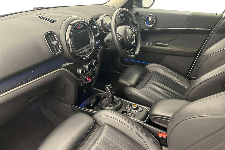 Active Guard incl speed limiting and lane departure functions with auto steering, and front collision warning with brake intervention, Automatic start/stop function with brake energy recuperation, Electro-mechanical speed dependant steering assistance, Instrument cluster, Mini E-call, MINI TeleServices, On board computer, Rear parking distance control, Double Vanos system, Fully variable valve control, High precision injection, Performance Control, Steptronic sport transmission with double clutch and steering wheel paddles, FM tuner and DAB digital radio, Bonnet scoop, Chrome border honeycomb structure radiator grille with S badge, Chrome fuel filler cap, Chrome line exterior, Day time driving lights, Dynamic brake lights, Electric windows, Heated rear window, Heated windscreen washer jets, Metal door sill strips with Cooper S imprint, Model logo, Model logo on Tailgate, Rain sensor with auto headlights, Rear fog lights, Rear window wiper, Side scuttle panel with integrated indicator, Split rear doors, Sun/heat protection glass, Twin exhaust tailpipe, White indicator lenses, 12V Accessory socket in centre console, 360L luggage compartment capacity, 4 lashing eyes in luggage compartment, 40:20:40 split folding rear seats, Chrome interior highlights, Cupholders, English handbook, Front headrests, Glove compartment, Height and length steering column adjustment, Interior lighting with 12 basic colours selectable via toggle switch in roof, Isofix rear child seat preparation, Leather gearshift lever and handbrake gaiters, LED reading lights, vanity mirror lights, front foot well light and spotlight on front seats, Manual air conditioning, Mechanical seat adjustment, driver seat height adjust, forward/back and front seats backrest, MINI Yours fine walk nappa leather steering wheel with contrast stitching in silver and MINI Yours badge, Multifunction steering wheel, Passenger seat height adjuster, Rear headrests, Storage compartments in doors, Sunvisors with vanity mirrors, Excitement pack - Countryman, Navigation pack - Countryman, 2 tone horn, 3 point seatbelts on all seats, 6 Airbags - front, side, head and seat belt tensioners, Anti-lock braking system (ABS), DSC - Dynamic Stability Control, Electronic handbrake, Front and rear disc brakes, Hill start assist, Tyre pressure monitoring system, Alarm system with tilt sensor, monitoring doors, bonnet interior and tailgate, Auto drive away locking, Deadlocking function, Electronic vehicle immobiliser, Locking wheel bolts, Start/stop toggle with keyless go, Chrome line interior, Tool kit,