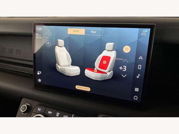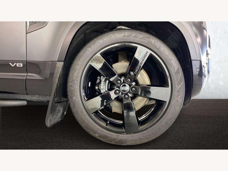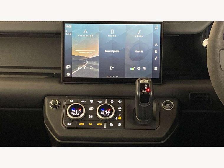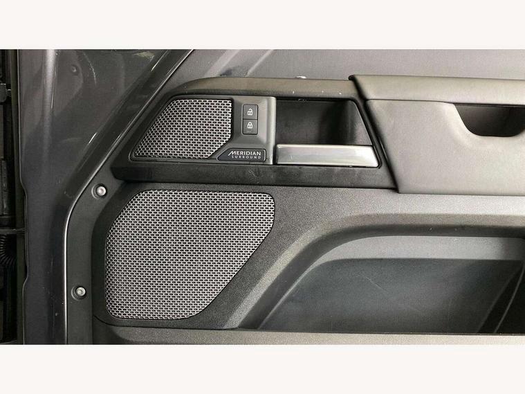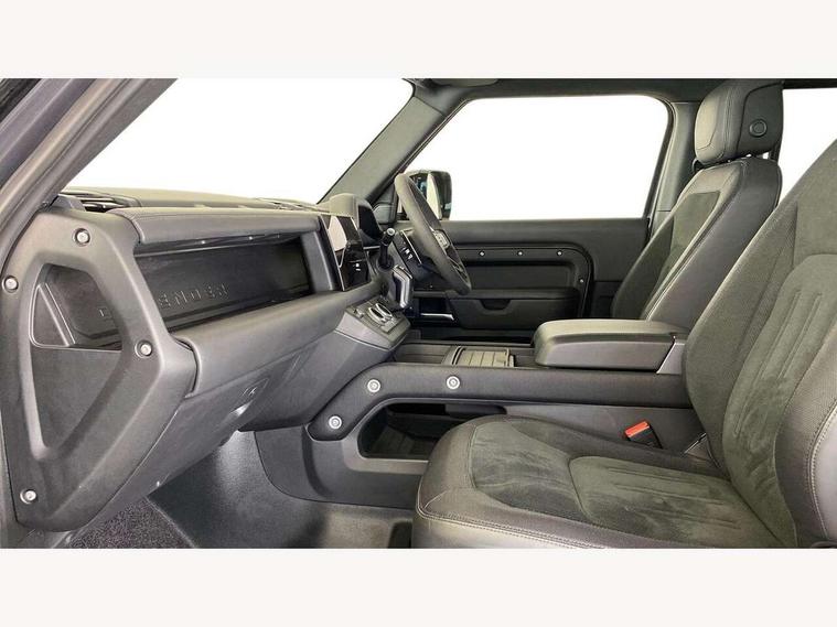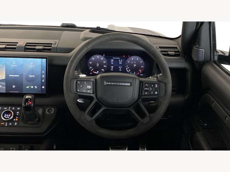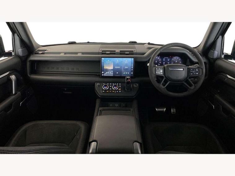 11.4" touchscreen, 360 degree parking aid, 3D Surround Camera with 360 View, 180 Rear View, Front Traffic Detection, Forward Vehicle Guidance, Tow Hitch Assist and clear sight Ground View, Adaptive cruise control, Android Auto, Apple CarPlay, Assisted tailgate with soft close, Blind spot assist, Bluetooth system, Brake pad wear indicator, Clear exit monitor, Connected navigation pro, Driver condition monitor, Electric power assisted steering (EPAS), Garage door opener (Homelink), Head up Display, Lane keep assist, Push button start, Rear collision monitor, Rear traffic monitor, Traffic sign recognition with adaptive speed limiter, Trip computer, Wade Sensing, Wireless device charging with phone signal booster, 8 speed automatic transmission, Adaptive dynamics, All terrain progress control, All wheel drive system, Configurable Terrain Response, Electronic active differential with brake torque vectoring, Electronic air suspension, Terrain Response 2 with dynamic program, Twin speed transfer box, DAB Radio (Digital Audio Broadcasting), Meridian 700w surround sound audio system with 15 speakers, Pivi pro connected, Advanced tow assist, Automatic headlight levelling, Automatic headlights, Black contrast bonnet, Black contrast roof, Black contrast tail door, Centre high mounted stop light, ClearSight interior rear view mirror, Darkened LED tail lights, Electric heated/power fold door mirrors with approach lights and auto dimming driver side, Electric windows with one touch open/close and anti-trap, Electrically deployable towbar, Follow me home lighting, Front fog lights, Gloss black contrast tail door, Headlamp power wash, Heated rear window with timer, Heated washer jets, Heated windscreen, Illuminated metal treadplates with V8 branding, Less roof rack or roof rails, Matrix LED headlights with signature DRL, Panoramic rear side glass, Premium metallic paint, Privacy glass, Puddle lights, Quad outboard mounted exhaust pipes, Rain sensing windscreen wipers, Rear fog lights, Rear wiper, Satin Protective Film, Side hinged tailgate, Sliding panoramic roof, Solar attenuating windscreen, Trailer stability assist, V8 badge, 12V power socket in loadspace, 14 way heated and cooled electric adjustable memory front seats with 4 way manual headrests, 3 seat bench in 2nd row, 40:20:40 fixed heated rear seats with centre armrest, Air quality sensor, Alpine lights, Bright metal pedals, Cabin Air Purification plus, Domestic plug socket, Durable rubber cabin flooring, Durable rubber loadspace flooring, Ebony morzine headlining, Electric cabin pre conditioning, Electric reach + rake adjustable steering column, Extended leather upgrade, Footwell lights, Front centre console refrigerator compartment, Heated steering wheel, Leather gearshift, Loadspace cover, Loadspace Hook, Multifunction steering wheel, Overhead stowage for sunglasses, Premium cabin lighting, Rear headrests, Rear ISOFIX, Rear reading lights, Satin chrome gearshift paddles, Single front passenger seat, Standard seat configuration, Storage glovebox, Suedecloth steering wheel, Sunvisors with illuminated vanity mirrors, Three zone climate control, Twin front cupholders with cover, Carpathian exterior pack - Defender, Online pack with data plan - Defender, 5 x 3 point seatbelts, ABS, Brake hold function, Cornering brake control (CBC), Cross car beam in satin black powder coat brushed finish, Customer configurable autolock, DSC - Dynamic Stability Control, EBD - Electronic brakeforce distribution, Electric parking brake (EPB), Emergency brake assist, Emergency braking, ESP + traction control, Front airbags with passenger seat occupant detector, HDC - Hill descent control, Hill launch assist, Low traction launch, Remote for (e-Call, Optimised assistance call, InControl app, Climate, beep and flash and door), RSC - Roll stability control, Seat belt reminder, TPMS (Tyre pressure monitoring system), Activity key, Alarm, Immobiliser, Intrusion sensor, Keyless entry, Locking wheel nuts, Robustec veneer,
