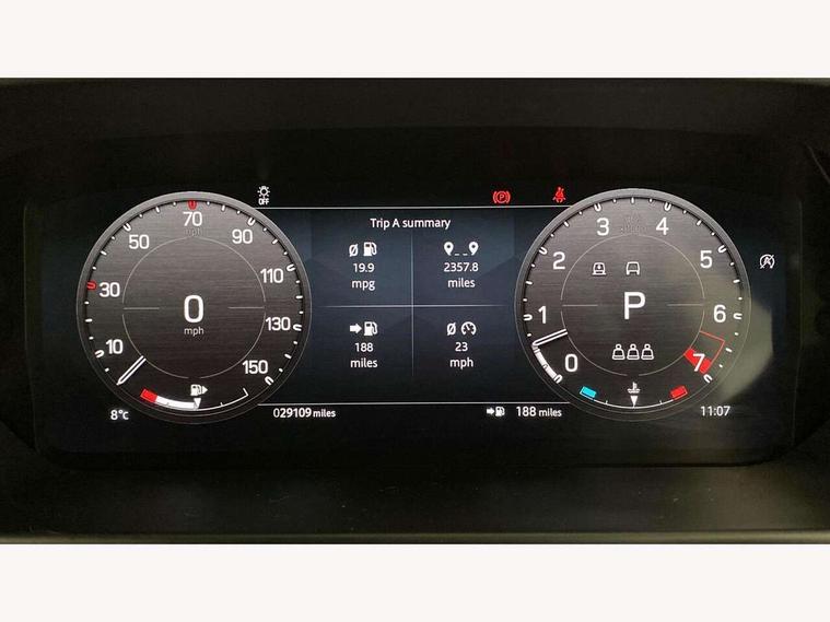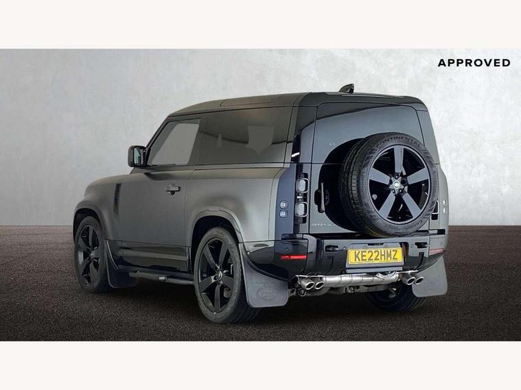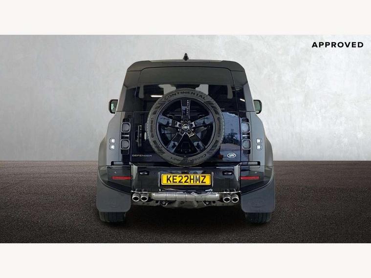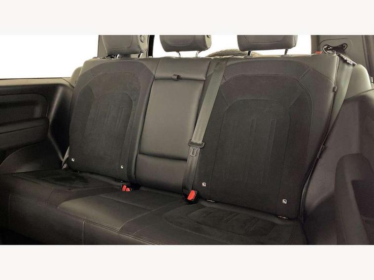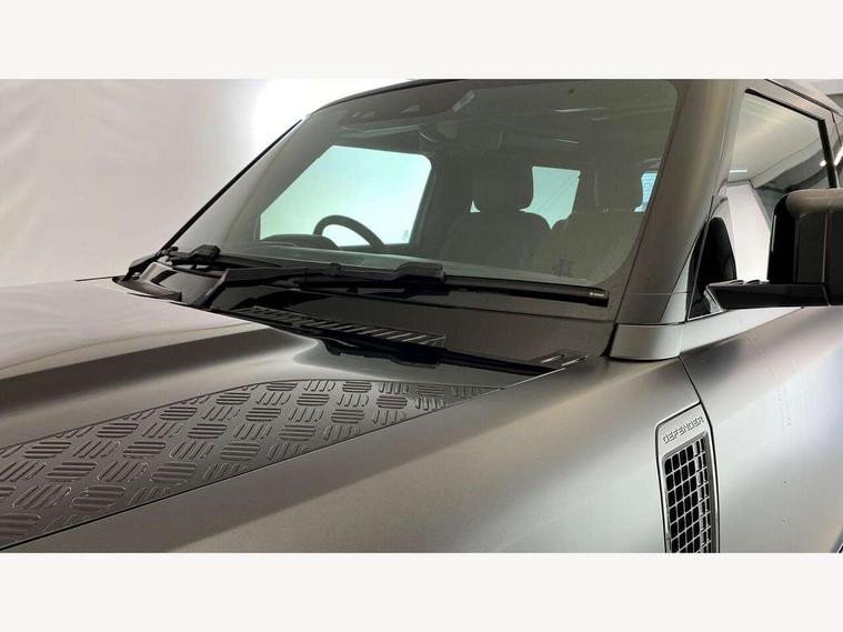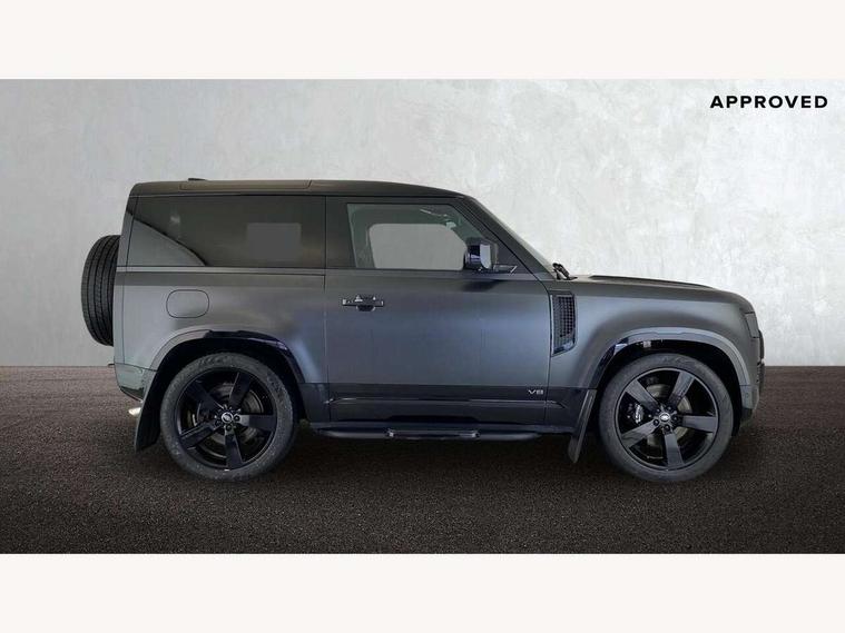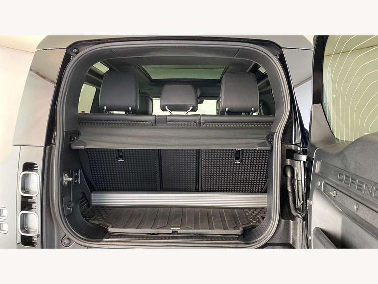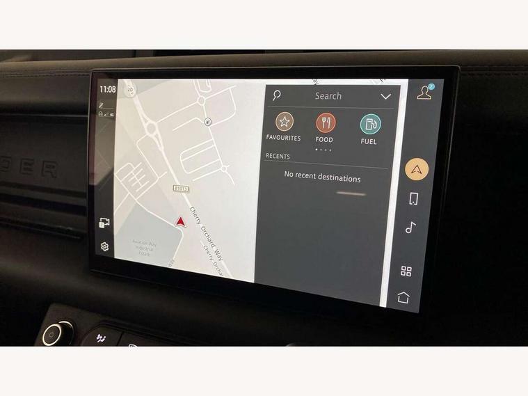 11.4" touchscreen, 360 degree parking aid, 3D Surround Camera with 360 View, 180 Rear View, Front Traffic Detection, Forward Vehicle Guidance, Tow Hitch Assist and clear sight Ground View, Adaptive cruise control, Android Auto, Apple CarPlay, Assisted tailgate with soft close, Blind spot assist, Bluetooth system, Brake pad wear indicator, Clear exit monitor, Connected navigation pro, Driver condition monitor, Electric power assisted steering (EPAS), Garage door opener (Homelink), Head up Display, Lane keep assist, Push button start, Rear collision monitor, Rear traffic monitor, Traffic sign recognition with adaptive speed limiter, Trip computer, Wade Sensing, Wireless device charging with phone signal booster, 8 speed automatic transmission, Adaptive dynamics, All terrain progress control, All wheel drive system, Configurable Terrain Response, Electronic active differential with brake torque vectoring, Electronic air suspension, Terrain Response 2 with dynamic program, Twin speed transfer box, DAB Radio (Digital Audio Broadcasting), Meridian 700w surround sound audio system with 15 speakers, Pivi pro connected, Advanced tow assist, Automatic headlight levelling, Automatic headlights, Black contrast bonnet, Black contrast roof, Black contrast tail door, Centre high mounted stop light, ClearSight interior rear view mirror, Darkened LED tail lights, Electric heated/power fold door mirrors with approach lights and auto dimming driver side, Electric windows with one touch open/close and anti-trap, Electrically deployable towbar, Follow me home lighting, Front fog lights, Gloss black contrast tail door, Headlamp power wash, Heated rear window with timer, Heated washer jets, Heated windscreen, Illuminated metal treadplates with V8 branding, Less roof rack or roof rails, Matrix LED headlights with signature DRL, Panoramic rear side glass, Premium metallic paint, Privacy glass, Puddle lights, Quad outboard mounted exhaust pipes, Rain sensing windscreen wipers, Rear fog lights, Rear wiper, Satin Protective Film, Side hinged tailgate, Sliding panoramic roof, Solar attenuating windscreen, Trailer stability assist, V8 badge, 12V power socket in loadspace, 14 way heated and cooled electric adjustable memory front seats with 4 way manual headrests, 3 seat bench in 2nd row, 40:20:40 fixed heated rear seats with centre armrest, Air quality sensor, Alpine lights, Bright metal pedals, Cabin Air Purification plus, Domestic plug socket, Durable rubber cabin flooring, Durable rubber loadspace flooring, Ebony morzine headlining, Electric cabin pre conditioning, Electric reach + rake adjustable steering column, Extended leather upgrade, Footwell lights, Front centre console refrigerator compartment, Heated steering wheel, Leather gearshift, Loadspace cover, Loadspace Hook, Multifunction steering wheel, Overhead stowage for sunglasses, Premium cabin lighting, Rear headrests, Rear ISOFIX, Rear reading lights, Satin chrome gearshift paddles, Single front passenger seat, Standard seat configuration, Storage glovebox, Suedecloth steering wheel, Sunvisors with illuminated vanity mirrors, Three zone climate control, Twin front cupholders with cover, Carpathian exterior pack - Defender, Online pack with data plan - Defender, 5 x 3 point seatbelts, ABS, Brake hold function, Cornering brake control (CBC), Cross car beam in satin black powder coat brushed finish, Customer configurable autolock, DSC - Dynamic Stability Control, EBD - Electronic brakeforce distribution, Electric parking brake (EPB), Emergency brake assist, Emergency braking, ESP + traction control, Front airbags with passenger seat occupant detector, HDC - Hill descent control, Hill launch assist, Low traction launch, Remote for (e-Call, Optimised assistance call, InControl app, Climate, beep and flash and door), RSC - Roll stability control, Seat belt reminder, TPMS (Tyre pressure monitoring system), Activity key, Alarm, Immobiliser, Intrusion sensor, Keyless entry, Locking wheel nuts, Robustec veneer,