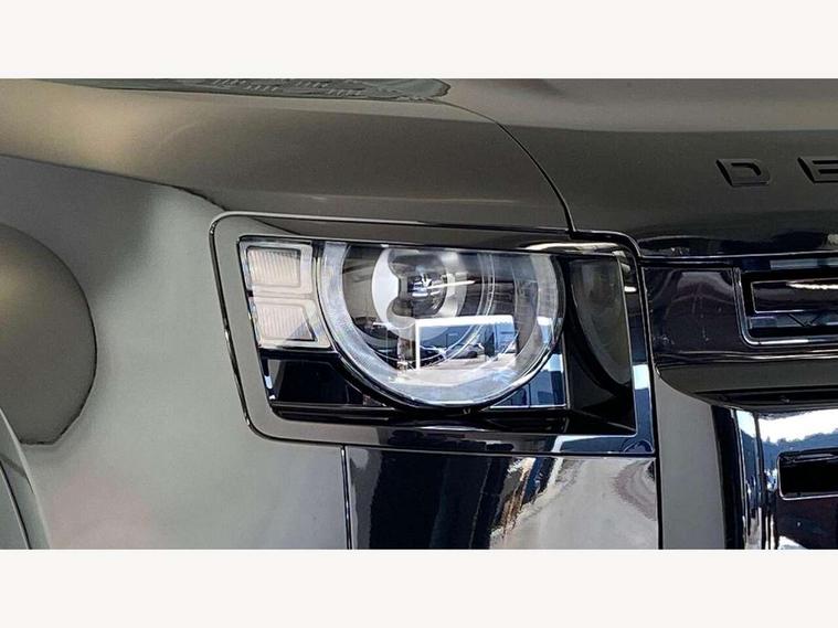 1 x USB-C (power only) & 1 x USB-C (power & data) in Row 1, 2 x USB-C in Row 2, 11.4" touchscreen, 360 degree parking aid, 3D Surround Camera with 360 View, 180 Rear View, Front Traffic Detection, Forward Vehicle Guidance, Tow Hitch Assist and clear sight Ground View, Adaptive cruise control, Android Auto, Apple CarPlay, Bluetooth system, Brake pad wear indicator, Clear exit monitor, Click and go integrated base unit, Connected navigation pro, Driver condition monitor, Electric power assisted steering (EPAS), Interactive driver display, Lane keep assist, Push button start, Traffic sign recognition with adaptive speed limiter, Trip computer, 8 speed automatic transmission, All wheel drive system, Twin speed transfer box, DAB Radio (Digital Audio Broadcasting), Meridian 400w sound audio system with 11 speakers and subwoofer, Pivi pro connected, Auto high beam assist, Automatic headlight levelling, Automatic headlights, Body coloured bonnet, Centre high mounted stop light, Electric heated/power fold door mirrors with approach lights and auto dimming driver side, Electric windows with one touch open/close and anti-trap, Follow me home lighting, Heated rear window with timer, Heated windscreen, LED tail lights, Premium LED headlights with signature DRL, Privacy glass, Puddle lights, Rain sensing windscreen wipers, Rear fog lights, Rear side wing doors, Rear wiper, Side hinged tailgate, Standard tail door, Trailer stability assist, 12 way heated semi powered front seats, 12V power socket in loadspace, 3 individual front seats with centre jump seat and folding front centre armrest, 3 seat bench in 2nd row, Alpine lights, Cabin lighting, Durable rubber cabin flooring, Durable rubber loadspace flooring, Footwell lights, Front head restraints, Loadspace cover, Loadspace Hook, Multifunction steering wheel, No flat load floor storage, Overhead stowage for sunglasses, Premium non-leather steering wheel, Rear headrests, Rear ISOFIX, Rear reading lights, Resist gearshift, Standard interior, Storage glovebox, Sunvisors with illuminated vanity mirrors, Twin front cupholders, Non-smoker package, Online pack with data plan - Defender, 6 x 3 point seatbelts, ABS, Brake hold function, Cornering brake control (CBC), Cross car beam in light cloud powder coat brushed finish, Customer configurable autolock, Driver and passenger airbags, DSC - Dynamic Stability Control, EBD - Electronic brakeforce distribution, Electric parking brake (EPB), Emergency brake assist, Emergency braking, ESP + traction control, Front airbags with passenger seat occupant detector, HDC - Hill descent control, Hill launch assist, Low traction launch, Power operated child locks, Remote for (e-Call, Optimised assistance call, InControl app, Climate, beep and flash and door), RSC - Roll stability control, Seat belt reminder, TPMS (Tyre pressure monitoring system), Alarm, Immobiliser, Intrusion sensor, Keyless entry, Locking wheel nuts, Secure tracker pro,