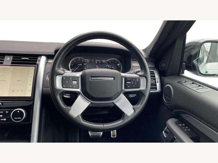 11.4" touchscreen, 3D surround camera, Adaptive cruise control, Android Auto, Apple car play, Blind spot assist, Driver condition monitor, Electric power assisted steering (EPAS), Emergency services call system, Front and rear parking aid, Lane keep assist, Power inner tailgate, Push button start, Rear collision monitor, Rear traffic monitor, Remote, Remote boot release, Service interval indicator, Speed proportional steering, Sportshift selector, Stop/start system, Traffic sign recognition with adaptive speed limiter, Trip computer, Wade Sensing, Adaptive dynamics, Dynamic stability control, Electronic air suspension, Front axle open differential, Digital Audio Broadcast radio-DAB, Dynamic volume control, Pivi pro connected, USB/aux input socket, Acoustic laminated windscreen, Animated directional indicators, Auto dimming interior rear view mirror, Automatic headlight levelling, Automatic headlights, Body colour bumpers, Body colour door handles, Centre high mounted stop light, D300 badge, Electric heated/power fold memory door mirrors with approach lights and auto dimming driver side, Electric windows with one touch open/close and anti-trap, Heated rear window, Heated windscreen, LED darkend tail lights, Metal treadplates with R-Dynamic branding, Narvik black Discovery script, Privacy glass, Puddle lights, Rain sensing windscreen wipers, Rear fog lights, Rear side wing doors, Rear wash/wipe, Trailer stability assist, Variable intermittent wiper, 12V power sockets, 12V USB charging socket in loadspace, 2 seat bench in 3rd row, 3 seat bench in 2nd row, Central hinged twin lidded storage, Ebony morzine headlining, First and second row door bins, Footwell lights, Front and rear 12V with front USB, Front passenger seat isofix location point, In-facia storage, Isofix child seat preparation for front passenger seat, Loadspace cover, Loadspace Hook, Loadspace light, Lockable glovebox, Lower centre console storage, Luggage tie downs in loadspace, Multi function steering wheel, Overhead lighting console, Premium carpet mats, Rear ISOFIX, Shopping bag hook, Single front passenger seat, Storage glovebox, Sunvisors with illuminated vanity mirrors, Third row storage, Twin front cupholders with cover, USB with 12V socket in centre console, Online pack with data plan - Discovery, R-Dynamic black exterior pack - Discovery, 3x3 point rear seatbelts, Anti-lock braking system (ABS), Brake pre-fill technology, Cornering brake control, Curtain airbags, Customer configurable autolock, Driver and passenger airbags, EBD - Electronic brakeforce distribution, Electronic traction control, Emergency brake assist, Emergency braking, ESP, Front side airbags, Gradient acceleration control, Hill descent control, Hill launch assist, Power operated child locks, Rear airbags, Roll stability control, Seat belt reminder, Torque vectoring brake, Tyre pressure monitoring system, Immobiliser, Intrusion sensor, Keyless entry, Locking wheel nuts, Remote central locking, All terrain tyres,