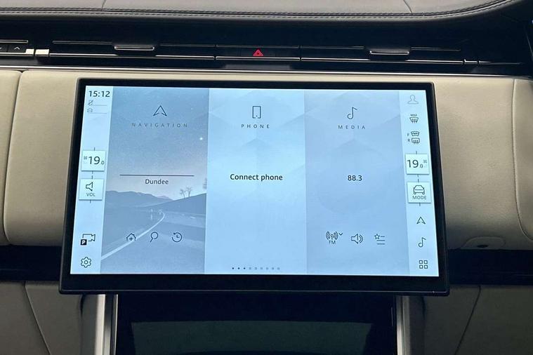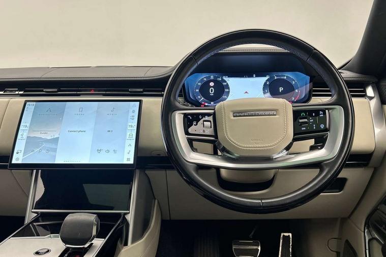 13.1" Touchscreen, 3D surround camera inc frwd traffic detection, vehicle clearance guidance, 3D view, clearsight ground view, manoevure light, 360 parking aid, wade sensing, All Terrain Info Centre, All wheel steering, Android Auto, Apple car play, Blind spot assist, Bluetooth connectivity streaming, Configurable programs, Driver condition response, Eco mode, Electric power assisted steering (EPAS), Emergency call service, Front and rear parking aid, Head up Display, Interactive driver display, Lane keep assist, Rear collision monitor, Rear traffic monitor, Remote, Traffic sign recognition with adaptive speed limiter, Wi-Fi Enabled with data plan, Wireless device charging with phone signal booster, 8 speed automatic transmission, Active damper technology system, Adaptive dynamics, All terrain progress control, All Wheel Drive (AWD), Automatic access height, Terrain Response 2 Auto, Twin speed transfer box, Digital Audio Broadcast radio-DAB, Pivi pro including smart settings, Connected navigation pro, nuance speech, USB socket, Acoustic laminated windscreen, Animated directional indicators, Automatic headlights, Automatic levelling headlights, Centre high mounted stop light, ClearSight interior rear view mirror, Electric windows with one touch open/close and anti trap, Engine cover, Flush deployable exterior door handles, Front and rear recovery eyes, Front fog lights, Headlamp power wash, Heated rear window, Heated washer jets, Illuminated metal treadplates with Autobiography script, Laminated front and rear side glass, LED tail lights, Power fold, auto-dimming, heated door mirrors with approach lights, Rain sensing windscreen wipers, Rear boot, Rear fog lights, Rear side wing doors, Side repeater indicators in mirror, Solar attenuating windscreen, Trailer stability assist, Winter wiper park position, 12V power sockets, 3 seat bench in 2nd row, Air quality sensor, Auto folding loadspace cover, Bright metal pedals, Cabin air purification pro, Cabin lighting, Customer configurable single point entry, Driver and passenger front seat armrests, Easy boot loading, Ebony Carpet, Electric rear side window sunblinds, Four zone climate control, Front and rear cupholders, Front and rear grab handles, Front head restraints, Gearshift paddles, Heated steering wheel, Hook in load space, Loadspace light, Luggage tie down in loadspace, Multifunction steering wheel, Rear centre armrest, Rear head restraints, Rear ISOFIX, Single front passenger seat, SV bespoke carpet mats, Twin blade sunvisors with Illuminated vanity mirrors, Upper and lower glovebox, Versatile loadspace floor in tailgate, Online pack with data plan - Range Rover, 3x3 point rear seat belts, Anti-lock braking system (ABS), Black brake calipers, Brake hold function, Cornering brake control (CBC), Customer configurable autolock, DSC - Dynamic Stability Control, Electronic brake force distribution, Electronic parking brake, Electronic traction control, Emergency brake assist, Emergency braking, Front airbags with passenger seat occupant detector, Front side airbags, Hill descent control, Hill launch assist, Illuminated seat belt buckles, Low traction launch, Occupant protection assist, Power operated child locks, Roll stability control, Tyre pressure monitoring system (TPMS), Immobiliser, Intrusion sensor and alarm, Keyless entry, Locking wheel nuts, Remote central locking, Noble chrome controls,