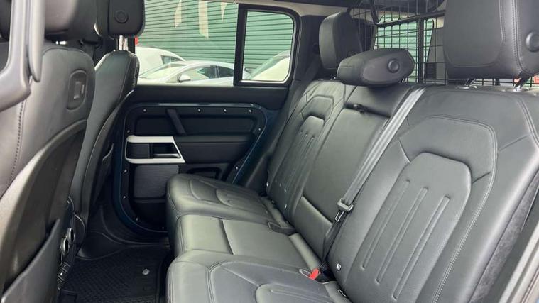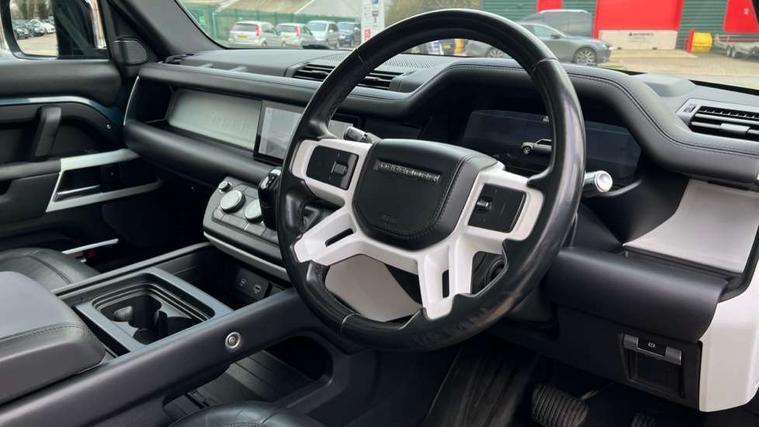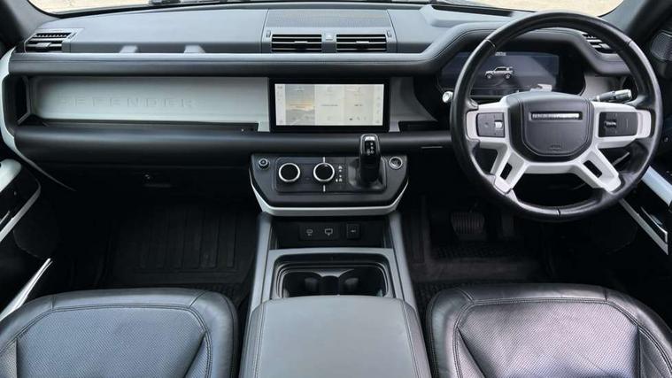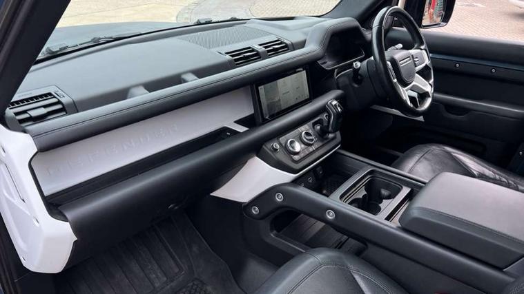 10" touch screen, 360 degree parking aid, 3D Surround Camera with 360 View, 180 Rear View, Front Traffic Detection, Forward Vehicle Guidance, Tow Hitch Assist and clear sight Ground View, Adaptive cruise control, Android Auto, Apple CarPlay, Blind spot assist, Bluetooth system, Clear exit monitor, Click and go integrated base unit, Connected navigation pro, Driver condition monitor, Interactive driver display, Lane keep assist, PAS, Pivi Pro connected navigation system with upgraded Infotainment, Rear collision monitor, Rear traffic monitor, Traffic sign recognition with adaptive speed limiter, Trip computer, Wade Sensing, Adaptive dynamics, Electronic air suspension, DAB Radio (Digital Audio Broadcasting), Automatic headlight levelling, Automatic headlights, ClearSight interior rear view mirror, Front fog lights, Heated windscreen, LED tail lights, Matrix LED headlights with signature DRL, Power fold, auto-dimming, heated door mirrors with memory and approach lights, Puddle lights, Rain sensing windscreen wipers, Signature graphic (with interior storage), Sliding panoramic roof, Standard tread plates, 14 way heated and cooled electric adjustable memory front seats with 4 way manual headrests, Carpet mats, Electric reach + rake adjustable steering column, Extended leather upgrade, Front passenger isofix child seat attachment, Heated steering wheel, Leather gearshift, Leather steering wheel, Loadspace cover, Morzine headlining, Multifunction steering wheel, Rear headrests, Rear ISOFIX, Sunvisors with illuminated vanity mirrors, Twin front cupholders with cover, Windsor leather upholstery, Online pack with data plan - Defender, 5 x 3 point seatbelts, ABS, Driver and passenger airbags, Emergency braking, ESP + traction control, TPMS (Tyre pressure monitoring system), Alarm, Immobiliser, Intrusion sensor, Keyless entry and go, Locking wheel nuts, Remote locking,