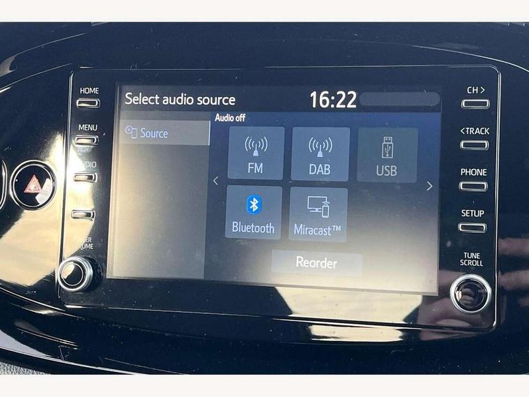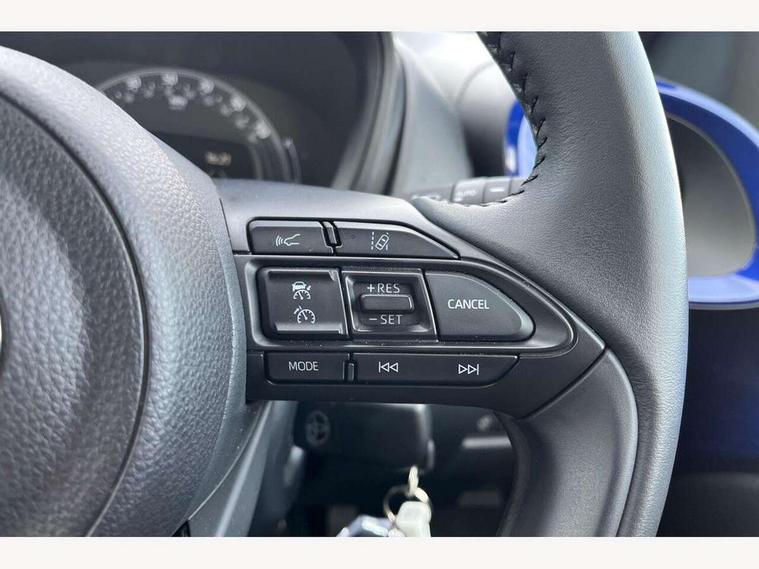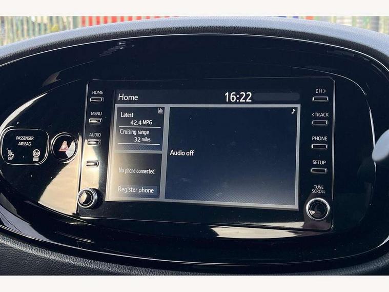 4.2" TFT colour screen, Adjustable speed limiter, Analogue speedometer, Bluetooth connectivity, Digital tachograph, Driver attention alert system, eCall emergency call system, ECO-driving indicator, Electric power steering, Intersection turn assist, Key reminder warning, Noise reduction kit, Pre collision system with emergency steering assist, Reversing camera with static guide lines, Smart phone integration with Apple car play/Android Auto, Speed limit display, Start and stop, Vehicle Stability Control (VSC), 4 speakers, DAB digital audio broadcast, Toyota touch 2 multimedia System with 8" Screen display, USB connector, Auto headlights, Auto wipers, Automatic headlights cut-off, Bicycle towing hook, Black side protection mouldings, Black wheel arch mouldings, Body colour door handles, Body coloured front bumper, Boot door scuff plate, Eclipse black rear bumper, Electric heated door mirrors, Follow me home headlights, Front fog lights, Front power windows, Gloss black door mirrors, Gloss black upper front grille, Headlight cut-off reminder, LED daytime running lights, LED front light guide, LED High mounted stop lamp, Manual day/night rear view mirror, Manual headlight levelling, Pagoda roof, Power adjustable door mirrors, Power back door, Privacy glass, Projector halogen headlights, Rain sensor, Rear combination lights LED bulb type, Rear side wing doors, Rear windscreen defogger, Rear windscreen wiper, Short antenna, Variable intermittent windscreen wipers, 12v power outlet - front, 2 seat bench in 2nd row, 3 spoke leather steering wheel, 50/50 split folding rear seat, Adhesive roof headlining, Adjustable speed limiter switch on steering wheel, Audio and telephone switches on steering wheel, Auto air conditioning, Black insert on steering wheel, Black roof lining, Boot light, Centre room light, Chrome interior door handles, Chrome surround on air conditioning buttons, Clean air filter, Console box storage in body color, Fabric upholstery, Floor mats, Front and rear cup holders, Front head rest deco art, Front head restraints, Gear shift indicator, Height adjustable driver seat, Intelligent adaptive cruise control switch on steering wheel, ISOFIX child restraint system on rear seats, Lane departure alert switch on steering wheel, Leather gearshift knob, Manual tilt steering wheel, Manually reclining and sliding driver seat, Manually reclining and sliding front passenger seat, Multimedia switches on steering wheel, Pollen filter, Rear door pockets, Rear head restraints, Satin silver insert on gear shift knob, Single compartment glovebox with lights, Single front passenger seat, Soft tonneau cover, Sun visors with mirror on driver and passenger side, Voice recognition switch on steering wheel, Toyota safety sense pack - Aygo X, Anti lock braking system + Electronic brake force distribution, Child safety door lock, Emergency brake light signal (EBS), Hill start assist control (HAC), Passenger airbag on/off switch, Seat belt reminder for front and rear seats, Supplement restraints system (SRS) - 6 airbags, Traction control, Tyre pressure warning system, Immobiliser, Remote power door locks, Black wheel centre caps, Tyre repair kit,
