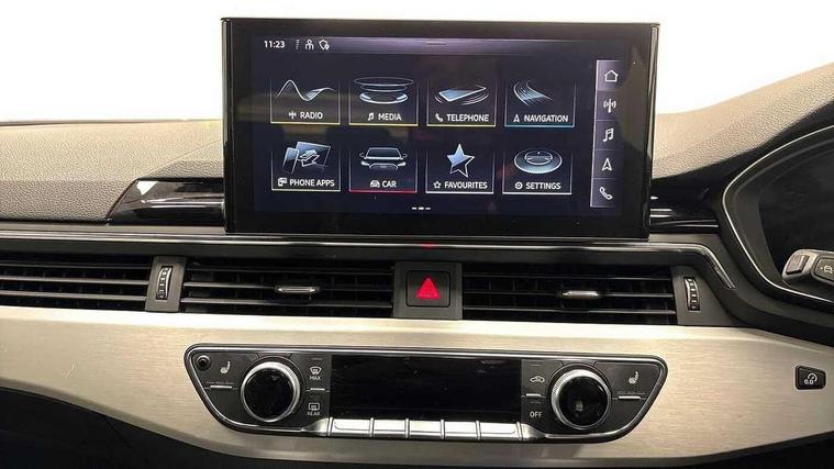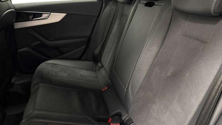 Audi connect safety and service (e-call), Audi drive select, Audi smartphone interface, Audi virtual cockpit, Automatic start-stop system with coasting functionality and efficiency programme, Bluetooth interface, Camera based traffic sign recognition, Electromechanical power steering, Email, calendar and text messages displayed via MMI, Front and rear parking sensors, Lane departure warning, MMI Navigation plus with MMI touch includes 10.1" high resolution colour MMI display, 3D map, Power operated tailgate, Rear view camera, Voice control system, 54 litre fuel tank, Sports suspension lowered by 23mm, 2 USB charging ports, 8 passive loudspeakers, DAB digital radio reception, Aluminium roof rails, Auto dimming rear view mirror, Body colour door handles, Body colour front spoiler lip, Body colour side sill trim, Body coloured door mirrors, Electric adjustable/heated/folding door mirrors with auto dimming, Grained matt black side air inlets with matt aluminium silver inlay, High beam assistant, Honeycomb structure radiator grille in grained matt black, LED headlights with LED rear lights + dynamic rear indicators + headlight adjustment and high beam, turning light + LED daytime running lights, LED third brake light, Matt aluminium silver tailpipe trim, Privacy glass, Rain and light sensors, Rear side wing doors, Rear wiper, S Line badges on the front wings, S line front and rear bumpers with side skirts, S Line rear diffuser in matt anthracite black with trim strip in matt aluminium silver, S Line roof edge spoiler, Variable intermittent front wash/wipe, Windscreen with acoustic glazing, 3 spoke high multi-function sports leather steering wheel grips in perforated leather with S badging including paddle shift, 4 way electric lumbar support for driver and front passenger, 40/20/40 split folding 3 rear seat bench in 3 parts with rear centre armrest, Black carpets, Black cloth headlining, Black perforated leather gearknob, Contrast stitching on seats, steering wheel and gear lever gaiter, Deluxe 3 zone electronic climate control, Electric load area cover, Front and rear head restraints, Front centre armrest, Heated front seats, Illuminated door sill trims with S logo, ISOFIX child seat mounting and top tether, Manual seat adjustment, Single front passenger seat, Stainless steel pedals and foot rest, High gloss package - A4, LED Interior light pack - A4/S4, 3 rear seatbelts, 6 airbags - Driver, front passenger, curtain and side windows, Attention and drowsiness assist, Electronic Stabilisation Control (ESC) including ABS, ASR and EDL, Hill hold assist, Multi collision brake assist, Pop-up bonnet for pedestrian protection, Pre sense city, Rear door child safety locks, Seatbelt monitoring, Warning triangle and first aid kit, Anti theft alarm, Anti theft wheel bolts, Central locking, Keyless Go, Matt brushed aluminium inlays, Tool kit, Tyre repair kit,