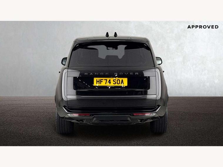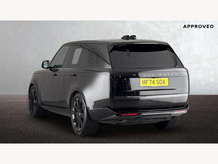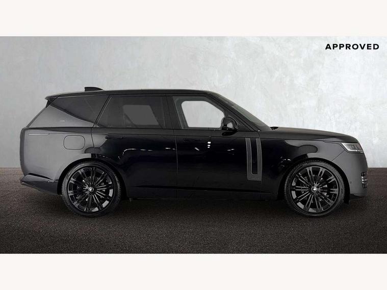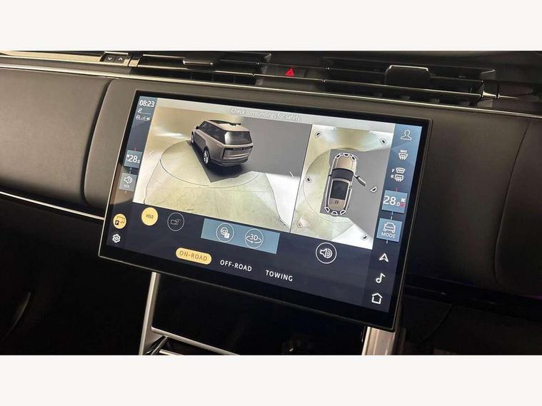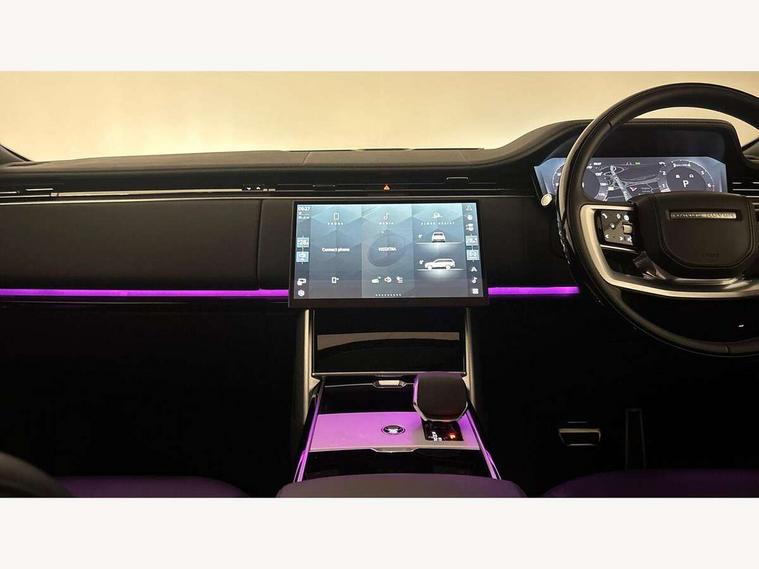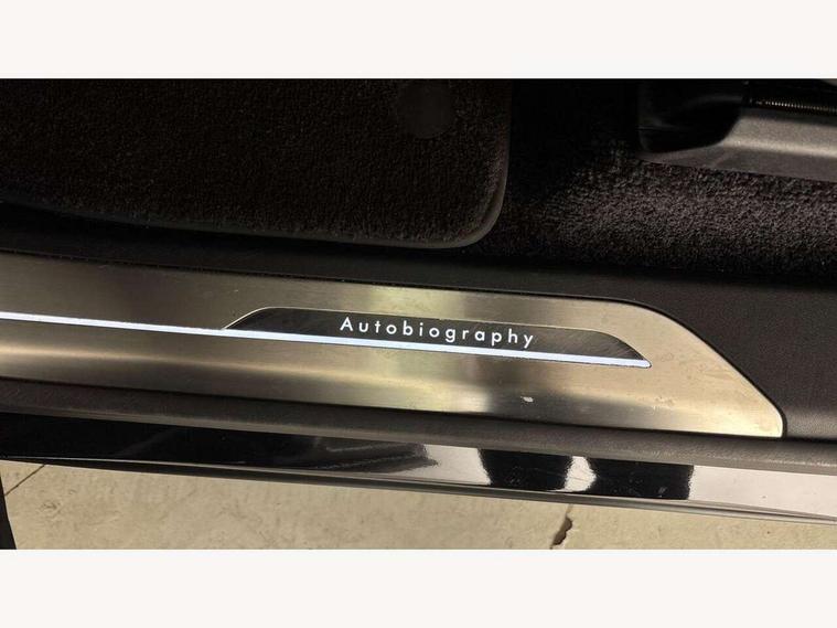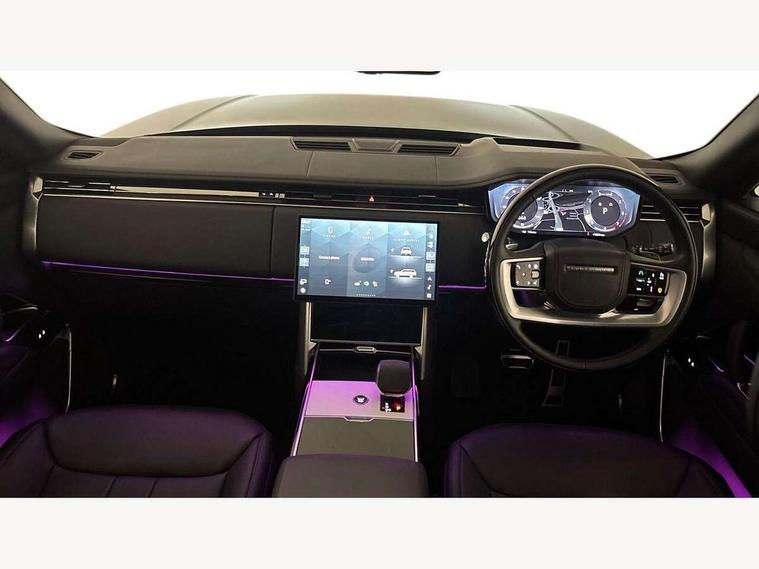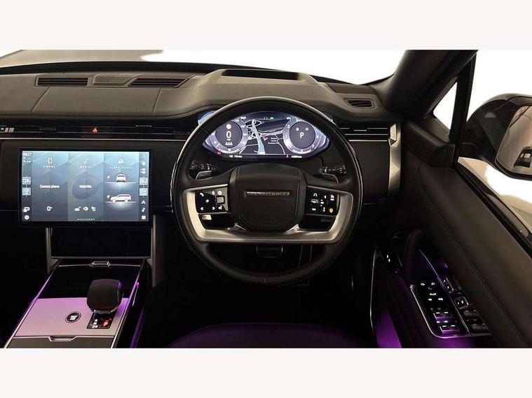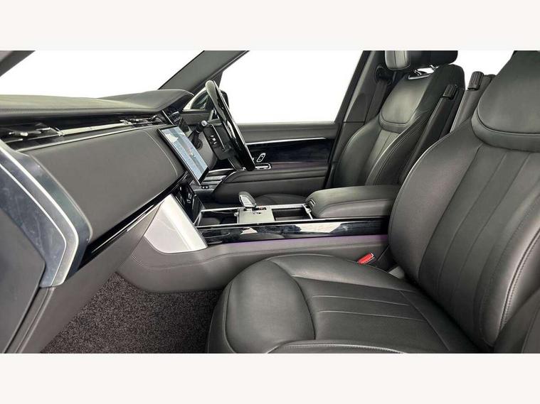 13.1" Touchscreen, 3D surround camera inc frwd traffic detection, vehicle clearance guidance, 3D view, clearsight ground view, manoevure light, 360 parking aid, wade sensing, All Terrain Info Centre, All wheel steering, Android Auto, Apple car play, Blind spot assist, Bluetooth connectivity streaming, Configurable programs, Driver condition response, Eco mode, Electric power assisted steering (EPAS), Emergency call service, Front and rear parking aid, Head up Display, Interactive driver display, Lane keep assist, Rear collision monitor, Rear traffic monitor, Remote, Traffic sign recognition with adaptive speed limiter, Wi-Fi Enabled with data plan, Wireless device charging with phone signal booster, 8 speed automatic transmission, Active damper technology system, Adaptive dynamics, All terrain progress control, All Wheel Drive (AWD), Automatic access height, Terrain Response 2 Auto, Twin speed transfer box, Digital Audio Broadcast radio-DAB, Pivi pro including smart settings, Connected navigation pro, nuance speech, USB socket, Acoustic laminated windscreen, Animated directional indicators, Automatic headlights, Automatic levelling headlights, Centre high mounted stop light, ClearSight interior rear view mirror, Electric windows with one touch open/close and anti trap, Engine cover, Flush deployable exterior door handles, Front and rear recovery eyes, Front fog lights, Headlamp power wash, Heated rear window, Heated washer jets, Illuminated metal treadplates with Autobiography script, Laminated front and rear side glass, LED tail lights, Power fold, auto-dimming, heated door mirrors with approach lights, Rain sensing windscreen wipers, Rear boot, Rear fog lights, Rear side wing doors, Side repeater indicators in mirror, Solar attenuating windscreen, Trailer stability assist, Winter wiper park position, 12V power sockets, 3 seat bench in 2nd row, Air quality sensor, Auto folding loadspace cover, Bright metal pedals, Cabin air purification pro, Cabin lighting, Customer configurable single point entry, Driver and passenger front seat armrests, Easy boot loading, Ebony Carpet, Electric rear side window sunblinds, Four zone climate control, Front and rear cupholders, Front and rear grab handles, Front head restraints, Gearshift paddles, Heated steering wheel, Hook in load space, Loadspace light, Luggage tie down in loadspace, Multifunction steering wheel, Rear centre armrest, Rear head restraints, Rear ISOFIX, Single front passenger seat, SV bespoke carpet mats, Twin blade sunvisors with Illuminated vanity mirrors, Upper and lower glovebox, Versatile loadspace floor in tailgate, Online pack with data plan - Range Rover, 3x3 point rear seat belts, Anti-lock braking system (ABS), Black brake calipers, Brake hold function, Cornering brake control (CBC), Customer configurable autolock, DSC - Dynamic Stability Control, Electronic brake force distribution, Electronic parking brake, Electronic traction control, Emergency brake assist, Emergency braking, Front airbags with passenger seat occupant detector, Front side airbags, Hill descent control, Hill launch assist, Illuminated seat belt buckles, Low traction launch, Occupant protection assist, Power operated child locks, Roll stability control, Tyre pressure monitoring system (TPMS), Immobiliser, Intrusion sensor and alarm, Keyless entry, Locking wheel nuts, Remote central locking, Noble chrome controls,