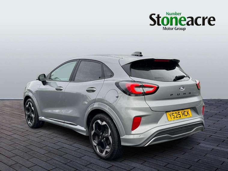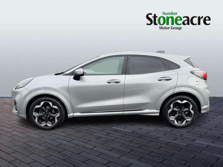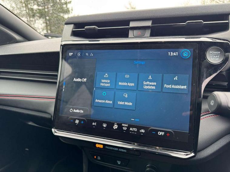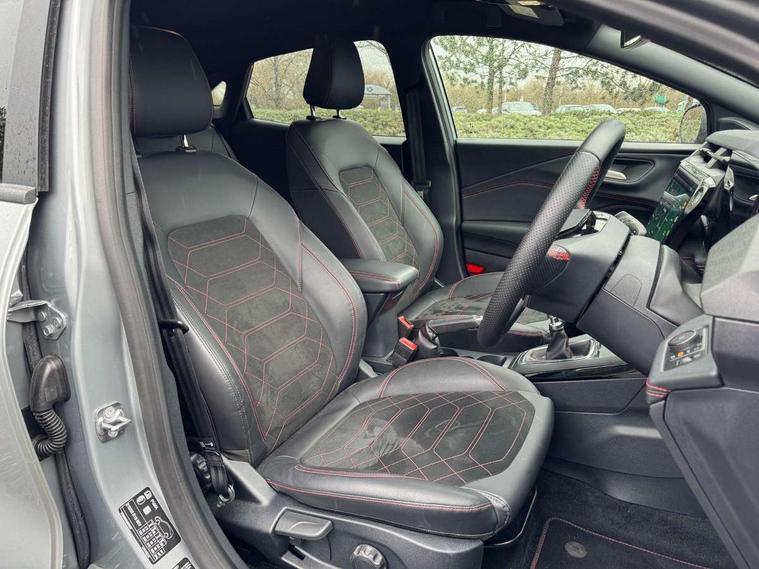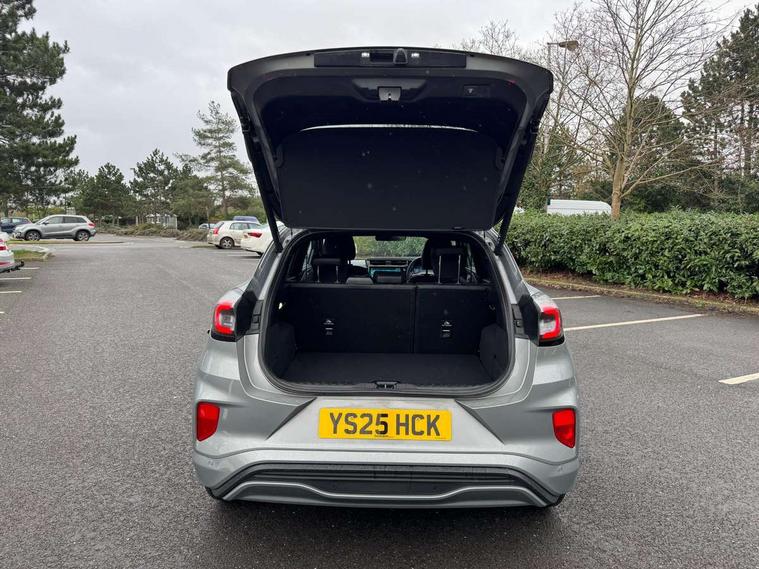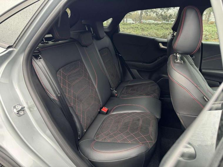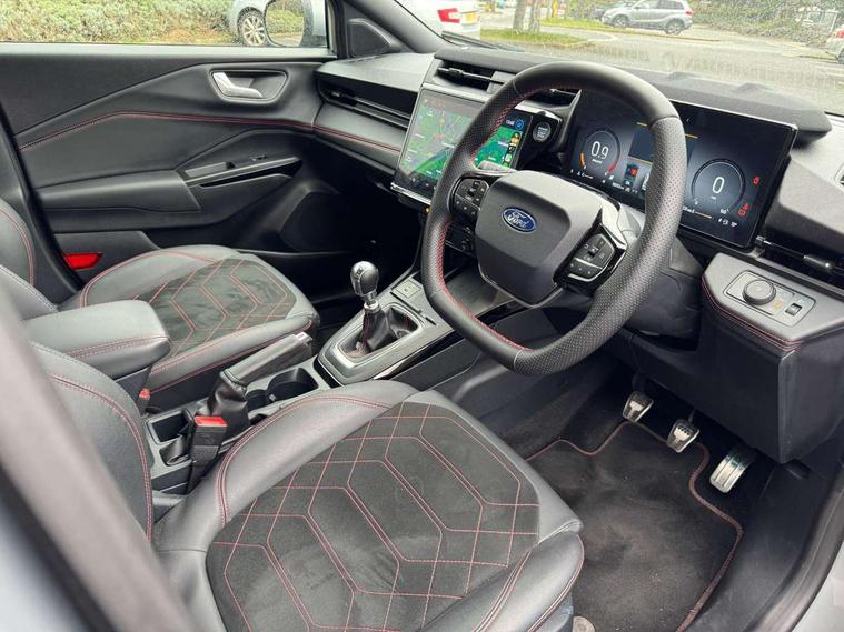Driver impairment monitor, Emergency call service, Ford easy fuel, Full digital 12.8" instrument cluster, Lane keeping aid with lane departure warning, Power assist steering, Selectable drive modes(Normal, Eco, Sport, Slippery and Trail), Speed sign recognition, Wireless charging, Sport suspension, 12" landscape touchscreen display with wireless apple car play and android auto premium B&O audio system with 10 speakers, Ford pass connect and emergency assistance, Ford SYNC4 with connected navigation, Automatic headlights with rain sensing wipers and auto high beam, Front fog lamps, LED daytime running lights, LED rear lamps, LED third brake light, Power foldable heated door mirrors with puddle lamps and puma logo protection, Quickclear heated windscreen, Rear privacy glass, Rear side wing doors, Rear wiper, ST-Line X body styling kit, 3 seat bench in 2nd row, 4 way lumbar support for passenger seat, Centre console with armrest and stowage, Electronic automatic temperature control (EATC), Ford megabox extended bootspace, Front and rear head restraints, Front floor mats, Manual 4 way driver seat adjust with lumbar adjustment, Single front passenger seat, ST-Line X Premium synthetic leather upholstery, Comfort pack with power lift tailgate - Puma, 3 rear seatbelts, Child safety lock, Electronic stability control (ESC) and hill start assist, Pre-collision assist with autonomous emergency braking, pedestrian/cyclist detection & post-collision braking, Tyre pressure monitoring system (TPMS), Thatcham alarm,