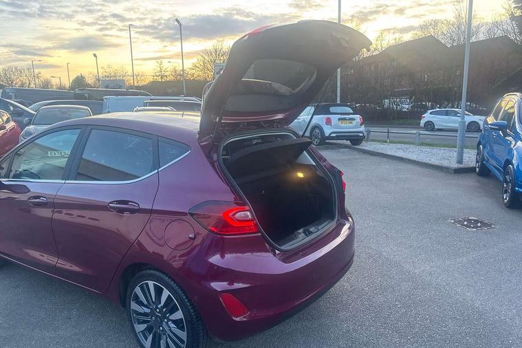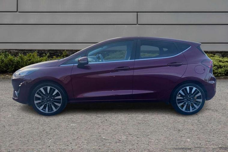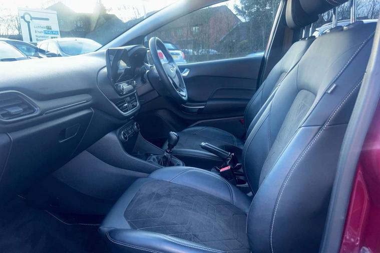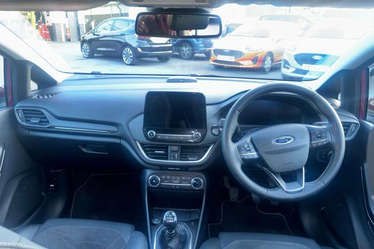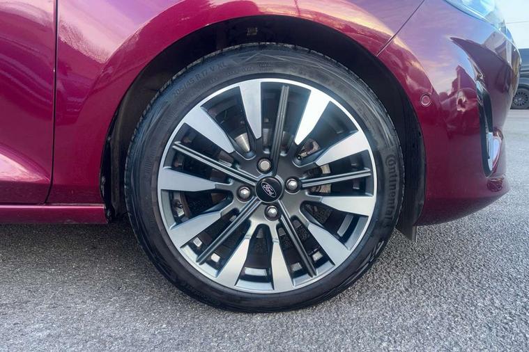 12.3" Full digital cluster, Driver alert system, Electric power steering, Ford easy fuel, Ford SYNC 3 Nav with DAB radio, 8" touch screen, voice control, emergency assist, Apple CarPlay/Android auto, 2x USB, 6 speaker, Ford pass connect, Rear parking distance sensors, Rear view camera, Selectable drive modes (Normal, Sport, Track), Speed sign recognition, Trip computer, Wrong way alert, Standard suspension, Auto high beam, Body colour bumpers, Body coloured electrically operated with side indicators, Electric front windows/one touch facility, Front titanium scuff plates, High gloss chrome surround with satin grille insert, LED Night signature to rear lights, LED third brake light, Quickclear heated windscreen, Rain sensing wipers and auto dimming rear view mirror, Rear privacy glass, Rear side wing doors, Rear wiper, 3 seat bench in 2nd row, 4 way manually adjustable passenger seat, Adjustable head restraints, Centre console with opening armrest, 2x cupholders, 12v and USB, Drivers and Passenger lumbar support, EATC - Electronic Auto Temperature control, Front floor mats in velour, Leather gaiter, LED ambient lighting (Ice blue), Manual 4-way driver seat adjust, Sensico partial premium leather upholstery with metal grey stitching, Sensico wrapped steering wheel, Single front passenger seat, NCAP Pack - Fiesta, Winter pack [GTBAB]- Fiesta, 3 point seatbelts on all rear seats, Electronic stability control with hill start assist, Manual child lock in rear doors, Tyre pressure monitoring system, Ford keyfree system with Keyless entry and keyless start, MyKey system, Remote central locking, Thatcham alarm with power door dead locks, 17" 10 spoke alloys with pearl grey machined finish,
