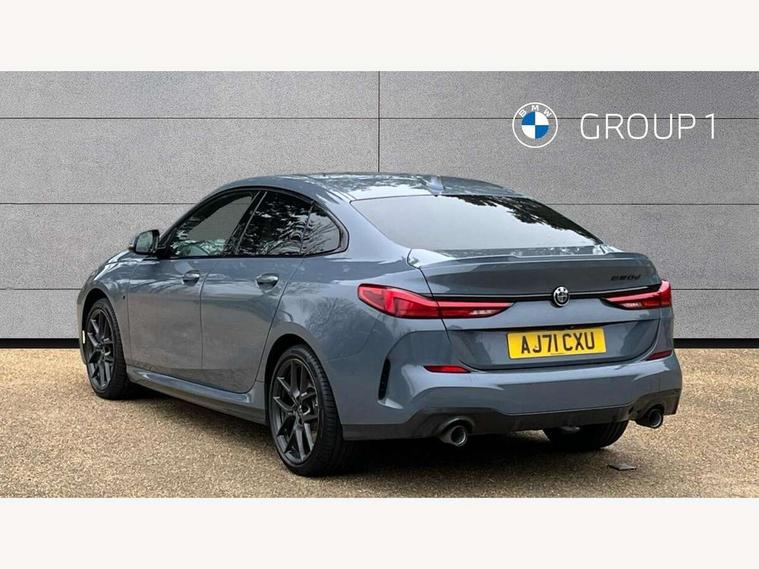 Active guard plus, Attentiveness assist, Auto start-stop, Bluetooth hands free facility with USB audio interface + WiFi interface for wireless connection of mobile terminal devices + audio streaming, BMW Intelligent Personal Assistant, BMW Live Cockpit Professional with 10.25" high resolution instrument and control display, BMW Online services, BMW operating system with 7.0 mid interface, BMW Teleservices, Check Control warning system for monitoring of lights and door/luggage compartment open warning, Cruise control with braking function, iDrive controller with touch function and 7 short cut favourite buttons on centre console, Integrated navigation data with map data via USB +features such as 3D landmarks and micro city models, Integrated owners handbook, Intelligent voice assistant, Lane departure warning system, M Sports steering, On board computer - average speed+fuel consumption, service interval, clock/date, odometer/trip meter, outside temperature display and ice warning, Optimum shift indicator, Personal Profile, Pull away assistant, Speed limiting function, 8 speed sport automatic transmission with electronic selector lever, auto P function, coasting idle, race track, sport, gearchange display manual mode, Aluminium lightweight construction, Balancer shaft, Common rail direct injection, Diesel particulate filter, DOHC valvetrain with two upper camshafts, Drive performance control with ECO PRO comfort + sport mode, Electronic differential lock, Larger fuel tank capacity (50 litres), Launch control, M Sport suspension with stiffer spring/damper set-up and vehicle lowered by 10mm + twin tube gasfilled shock absorbers and Anti roll bars, Performance Control, TwinPower turbocharger with variable vane turbine geometry, 2x USB Type C ports (for charging and data transfer), 4G LTE Connectivity with hard wied 4G network sim card, DAB digital radio, MP3 players and RDS double tuner, Stereo 6 speaker system with 2 mid range speakers in the front and rear door trims + 2 central bass speakers underneath the front seats, Automatically dimming rear view mirror, Body colour door handles, Body colour mirror caps, Chrome 'M' logo side designation, Chrome exhaust single tailpipe, round, Direction indicator side lights integrated exterior mirrors, Electric windows - front and rear, with open/close fingertip control and trap release, Exterior mirrors - electrically folding with anti-dazzle, Fading support, Follow me home headlights, Front and rear bumper system with replaceable deformation elements, Front door sill finishers in black plastic with M designation in metallic look, Heated, electrically adjustable exterior mirror aspheric on driver side, convex on passenger side, High gloss black B pillar finish, High gloss shadow line exterior trim, High level third brake light, LED daytime running lights, LED front fog lights, Lightweight engineering, Model designation on right side of tailgate, Preparation for high beam assistant, Rain sensor with automatic headlight activation, Rear boot, Rear fog lights, Rear side wing doors, Reversing light in rear light cluster, Welcome lighting, 12V power socket in centre console, 2 cupholders in front centre console, 3 rear seat head restraints, 3 rear seats, 3 spoke M sports design leather steering wheel finished in nappa leather with specific M badge, Anthracite finished floor mats with contrasting surround, Anthracite headlining, Automatic two zone climate control air conditioning, Child seat ISOFIX attachment for two outer rear seats and front passenger seat with anchorage points, Conditioned based service, Driver and front passenger seat heating, Front and rear door pockets including bottle trays, Front and rear side armrests integrated into door trim, Front armrest foldable with integrated storage compartment, Front centre interior light over interior mirror and rear centre automatic interior light when door is opened/ignition switched off or via remote key, Front head restraints, Front passenger seat, Front sports seats with electric side bolster adjustment, Glove compartment, Glovebox with light, Luggage compartment lighting, Manually adjustment steering wheel column, Multi-function controls for steering wheel, Shift-by-wire selector shift, Steering wheel paddles, Sun visors with vanity mirrors and insert tab, Through loading system with 40/20/40 split folding rear seat, Two lashing eyes, Additional interior lighting pack - 2 Series Gran Coupe, Connected pack professional - 2 Series Gran Coupe, Extended storage pack - 2 Series Gran Coupe, M Sport exterior styling aerodynamics pack - 2 Series Gran Coupe, 2 tone horn, Airbag - Front driver and passenger, front and rear head, front side, curtain head protection, manual deactivation of front passenger airbag possible, Anti lock braking system (ABS) with cornering brake control, BMW emergency call, Brake drying, Braking readiness, City braking function, Crash sensor activating of airbags, Unlocking doors, hazard warning lights, interior light, safety battery terminal, Dynamic stability control + (DSC+), Dynamic Traction Control - DTC, Electrically operated hand brake, Rear brake discs, Rear child proof door locks, Seat belt security check for driver and front passenger, Seatbelt warning, Side impact protection, Three point seat belts on all seats including front belt stopper, pyrotechnic belt tensioners and belt force limiters, Trailer stability control, Tyre pressure monitoring system, Ventilated front disc brakes, Warning triangle and first aid kit, Central locking switch for all doors, fuel filler cap and luggage compartment, Deadlocking function system to all doors, Drive away locking system on all doors and luggage compartment, Locking wheel bolts, Start/Stop button (illuminated) in centre console with keyless engine start and Auto Start-Stop deactivation button, Thatcham Cat.1 alarm and immobiliser, Two remote control key with integrated key - open/close doors/fuel flap/tailgate +1 button for unlock com