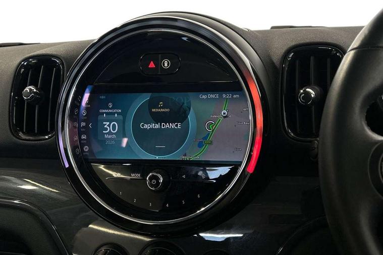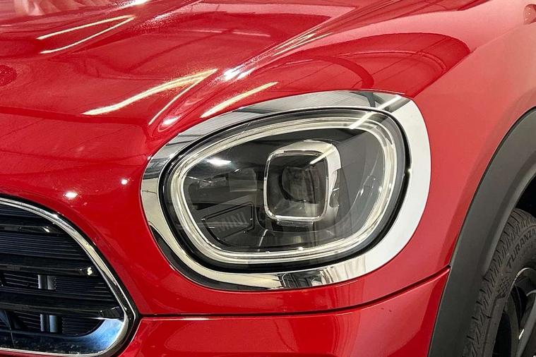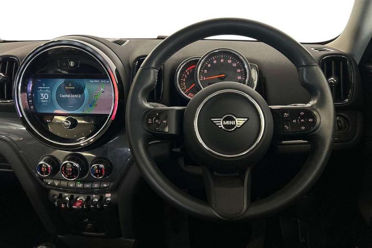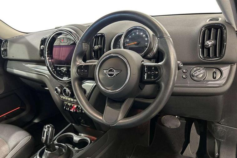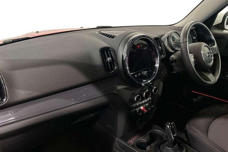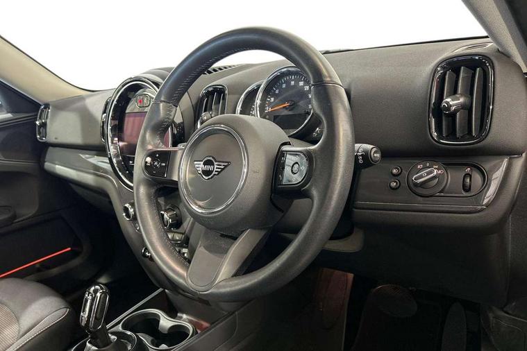 Active Guard incl speed limiting and lane departure functions with auto steering, and front collision warning with brake intervention, Automatic start/stop function with brake energy recuperation, Compatible mobile phone bluetooth with audio streaming, Cruise control with brake assist, Electro-mechanical speed dependant steering assistance, Instrument cluster, Mini E-call, On board computer, Rear parking distance control, 51 Litre fuel tank, Double Vanos system, Fully variable valve control, High precision injection, Performance Control, Steptronic transmission with double clutch, FM tuner and DAB digital radio, 3rd brake light, Body colour fuel filler cap, Day time driving lights, Door sill strips, Dynamic brake lights, Electric windows, Heated rear window, Heated windscreen washer jets, LED fog lights, LED Headlights, Left exhaust tailpipe with chrome finisher, Model logo, Model logo on Tailgate, Radiator grille, Rain sensor with auto headlights, Rear fog lights, Rear side wing doors, Rear window wiper, Side scuttle panel with integrated indicator, Split rear doors, Sun/heat protection glass, White indicator lenses, 12V socket in centre console, 3 seat bench in 2nd row, 3 spoke sport leather steering wheel + limiter function and audio controls, 360L luggage compartment capacity, 4 lashing eyes in luggage compartment, 40:20:40 split folding rear seats, Chrome interior highlights, Colour line - Carbon black, Cupholders, English handbook, Floor mats, Front headrests, Glove compartment, Headliner with grab handles and clothes hooks, Height and length steering column adjustment, Interior lighting with 12 basic colours selectable via toggle switch in roof, Isofix rear child seat preparation, Leather gearshift lever and handbrake gaiters, LED reading lights, vanity mirror lights, front foot well light and spotlight on front seats, Manual air conditioning, Mechanical seat adjustment, driver seat height adjust, forward/back and front seats backrest, Multifunction steering wheel, Passenger seat height adjuster, Rear headrests, Single front passenger seat, Storage compartments in doors, Sunvisors with vanity mirrors, Excitement pack - Countryman, Navigation pack - Countryman, 2 tone horn, 3 point seatbelts on all seats, 6 Airbags - front, side, head and seat belt tensioners, Anti-lock braking system (ABS), DSC - Dynamic Stability Control, Electronic handbrake, Front and rear disc brakes, Hill start assist, Manual rear child locks, Tyre pressure monitoring system, Alarm system with tilt sensor, monitoring doors, bonnet interior and tailgate, Auto drive away locking, Deadlocking function, Electronic vehicle immobiliser, Locking wheel bolts, Start/stop toggle with keyless go, Tool kit,