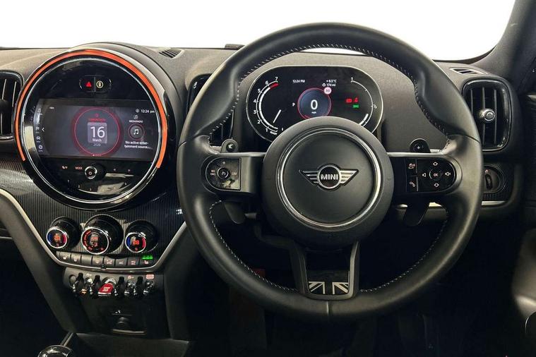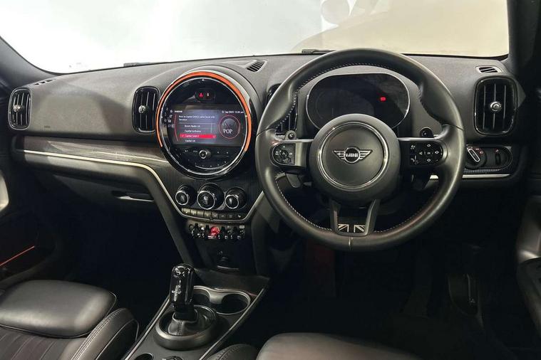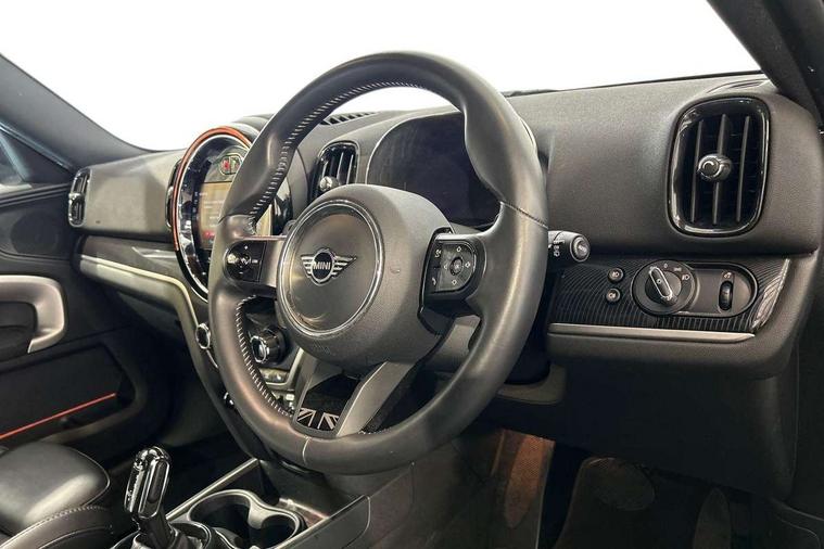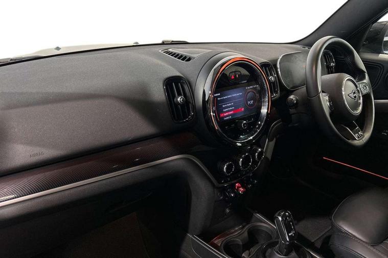 Active Guard incl speed limiting and lane departure functions with auto steering, and front collision warning with brake intervention, Automatic start/stop function with brake energy recuperation, Electro-mechanical speed dependant steering assistance, Instrument cluster, MINI Driving Modes - centre toggle switch to control driving setting (sport, mid and green), Mini E-call, MINI TeleServices, On board computer, Double Vanos system, Fully variable valve control, High precision injection, Performance Control, Steptronic sport transmission with double clutch and steering wheel paddles, FM tuner and DAB digital radio, 3rd brake light, Bonnet scoop, Chrome fuel filler cap, Day time driving lights, Dynamic brake lights, Electric windows, Heated rear window, Heated windscreen washer jets, LED fog lights, Metal door sill strips with Cooper S imprint, MINI yours exterior badge in C-Pillar, driver and passenger side, Model logo, Model logo on Tailgate, Rain sensor with auto headlights, Rear fog lights, Rear side wing doors, Rear window wiper, Side scuttle panel with integrated indicator, Split rear doors, Sun/heat protection glass, White indicator lenses, 12V socket in centre console, 3 seat bench in 2nd row, 360L luggage compartment capacity, 4 lashing eyes in luggage compartment, 40:20:40 split folding rear seats, Anthracite headlining with grab handles and clothes hooks, Chrome interior highlights, Colour line - Carbon black, Cupholders, English handbook, Front headrests, Glove compartment, Height and length steering column adjustment, Interior lighting with 12 basic colours selectable via toggle switch in roof, Isofix rear child seat preparation, Leather gearshift lever and handbrake gaiters, LED reading lights, vanity mirror lights, front foot well light and spotlight on front seats, MINI Yours fine walk nappa leather steering wheel with contrast stitching in silver and MINI Yours badge, Multifunction steering wheel, Rear headrests, Single front passenger seat, Storage compartments in doors, Sunvisors with vanity mirrors, Excitement pack - Countryman, Navigation plus pack - Countryman, 2 tone horn, 3 point seatbelts on all seats, 6 Airbags - front, side, head and seat belt tensioners, Anti-lock braking system (ABS), DSC - Dynamic Stability Control, Electronic handbrake, Front and rear disc brakes, Hill start assist, Manual rear child locks, Tyre pressure monitoring system, Alarm system with tilt sensor, monitoring doors, bonnet interior and tailgate, Auto drive away locking, Deadlocking function, Electronic vehicle immobiliser, Locking wheel bolts, Start/stop toggle with keyless go, Tool kit,