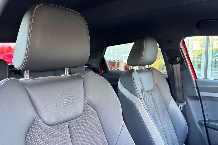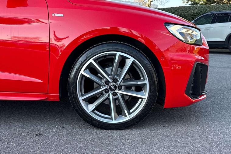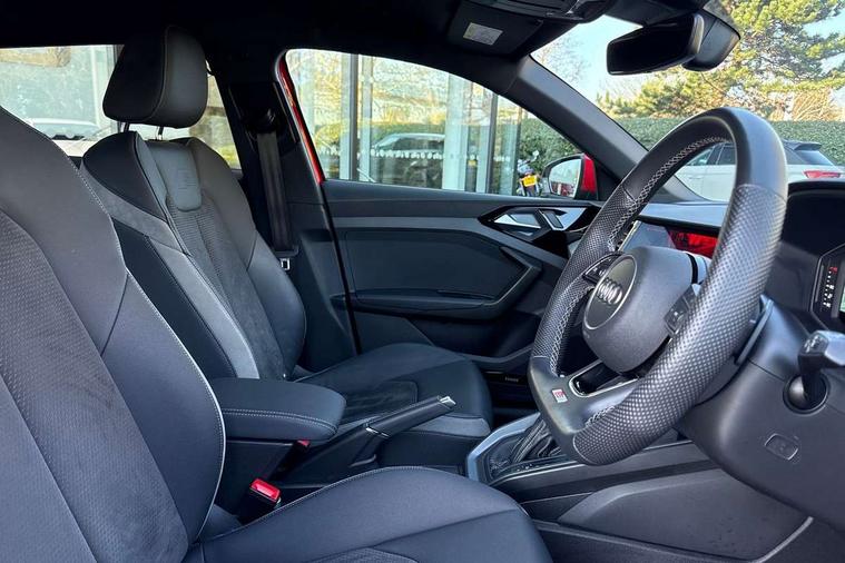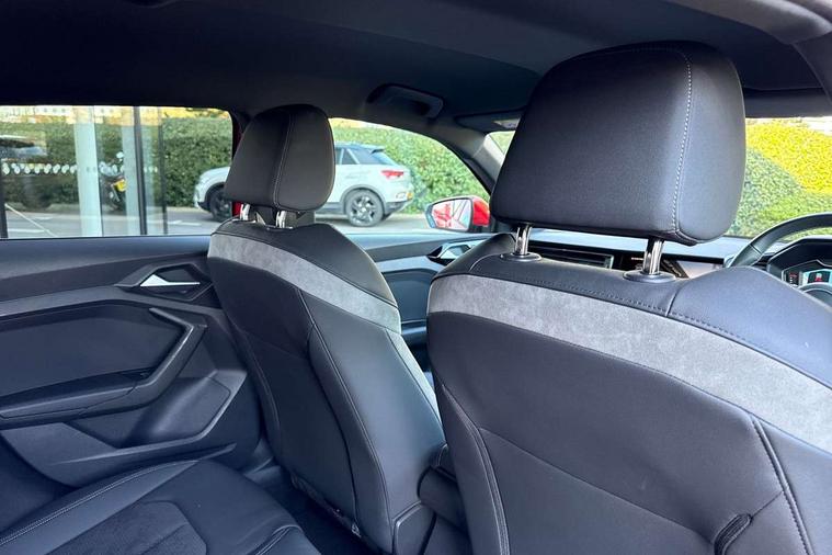Adaptive speed assist, Audi connect safety emergency and service including E-call, Audi drive select - power steering assistance + engine + gear shift 3 preset modes (auto, dynamic, efficiency and an Individual mode), Automatic start/stop system, Bluetooth interface, Cruise control, Driver's information system, Electromechanical power steering, Emergency services call system, Lane departure warning system, Service interval indicator, Speed limiter, Voice control system, Washer fluid level indicator, Sports suspension, 1 x SDXC card reader, 2 x USB type C connection points, DAB Digital radio, MMI radio plus with 8.8" colour MMI display screen and MMI touch, Auto dimming rear view mirror, Black Audi rings and black badging (with model name in black, no engine badging), Body coloured door mirrors, Door sill trims with aluminium inlays and logo, Electric front and rear windows, Electrically adjustable, heated, folding door mirrors with integrated LED side indicator, Front side air inlets in grained matt black and C frame in titanium black, Front wing badges, Heat insulating glass windscreen and side windows, Heated rear windscreen, High level LED brake light, LED headlights with LED rear lights + dynamic rear indicators + headlight adjustment and high beam, turning light + LED daytime running lights, Radiator protective grille frame in matt aluminium silver, Rain and light sensors, Rear diffuser strip in matt titanium black, Rear fog lights, Rear side wing doors, Rear wing door, Rear wiper, Side front spoiler lips in grained matt black, 12V socket in centre console with two cup holders, 3 rear seats with headrests, 3 seat bench in 2nd row, 3 spoke flat bottomed multi-function plus leather steering wheel with S badging, grips in preforated leather, contrast stitching and paddle shift, 40:60 Split folding rear seat or folded fully, Black cloth headlining, Driver and passenger seat with manual height adjust with forward and backwards adjustment, Frequency alcantara/leatherette upholstery and S embossed logo + front sports seats, Front and rear black floor mats with contrast stitching in fine silver, Front head restraints, Front passenger seat, Height and reach adjustable steering wheel, ISOFIX child seat mounting for front passenger and outer rear seats including top tether attachment point of outer rear seats, Leather gear knob with aluminium trim, Luggage compartment light with front and rear reading lights, Manually adjustable lumbar support in front seats, Stainless steel pedals, Black exterior styling pack - A1 Sportback Vorsprung, Comfort and sound pack - A1 Sportback, Luggage compartment pack - A1, Multicoloured LED Ambient lighting pack - A1 Sportback, Plus pack - A1 Sportback, Technology pack - A1 Sportback, 3x3 point rear seatbelts, Audi pre-sense front with pedestrain and cyclist recognition, Brake assist function, Driver and front passenger airbag with front side and head airbags, Electronic Stability Control including ABS, EBD, ASR and EDL, Front passenger airbag deactivation switch, Hill hold assist, Manual rear child locks, Seatbelt height adjustment for front seats, Seatbelt monitoring, Tyre pressure warning light, Warning triangle and first aid kit, Advanced key, Anti theft alarm, Anti theft wheel bolts and loose wheel warning, Immobiliser, Remote central locking with 2 foldaway keys, Aluminium trim for control switches, air vents and digital instrument cluster, Silver grey inlays polygon structure in diamond paint finish, Structured grey accent areas including air vents, door handle recesses and centre console in quartz paint finish, 18" 5 double arm design alloy wheels in matt titanium look with diamond cut finish,