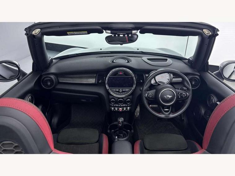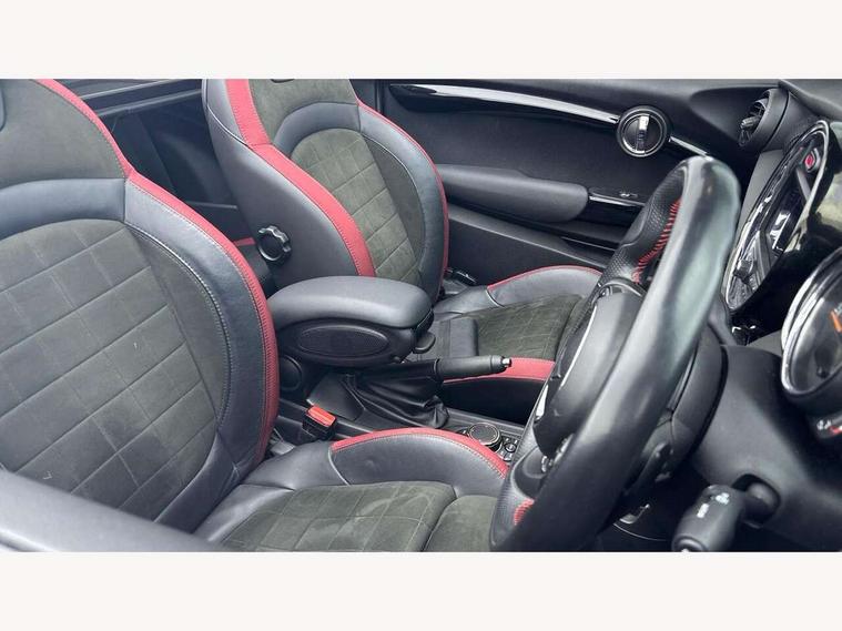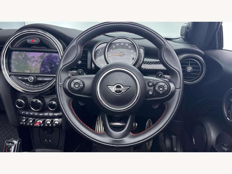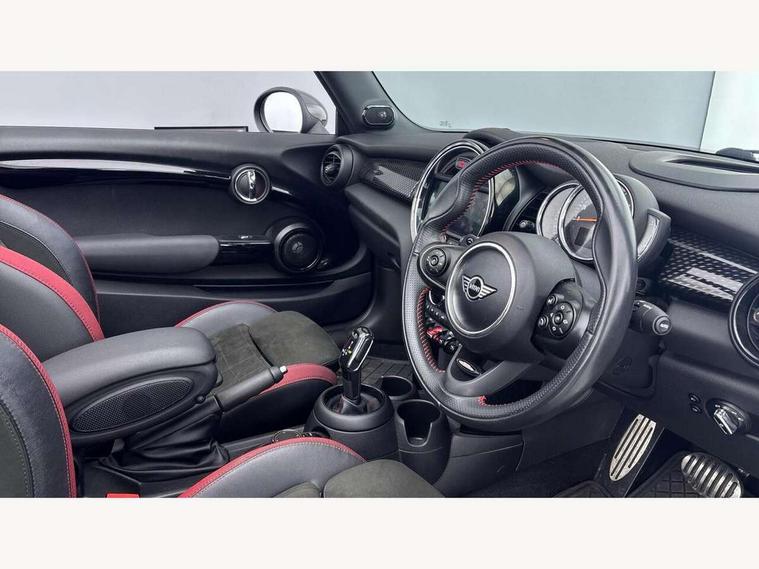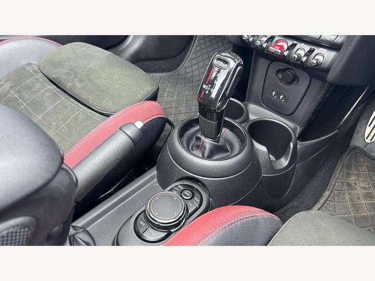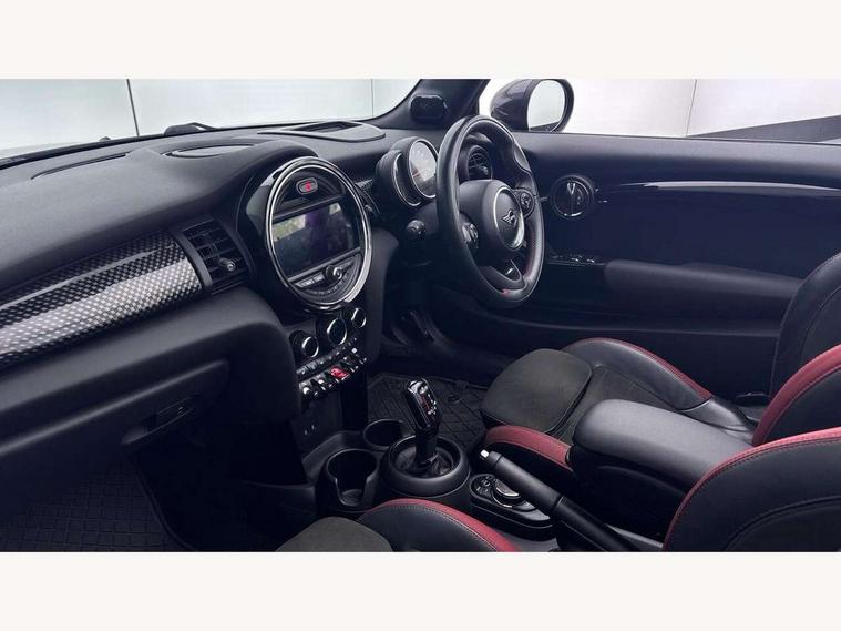 Automatic start/stop function with brake energy recuperation, Compatible mobile phone bluetooth with audio streaming, Electro-mechanical speed dependant steering assistance, Instrument cluster, Mini E-call, MINI TeleServices, On board computer, Rear park distance control, Service interval indicator, Double Vanos system, Fully variable valve control, High precision injection, Performance Control, Steptronic sport transmission with double clutch and steering wheel paddles, 6.5" touchscreen with LED ring, FM tuner and DAB digital radio, Automatic headlight activation switch, Bonnet scoop, Chrome border honeycomb structure radiator grille with S badge, Chrome plated fuel cap, Dynamic brake lights, Electric windows, Heated rear window, Heated windscreen washer jets, John Cooper Works - aerodynamic kit (front and rear apron, spoiler), front and rear sport bumpers and part-painted side sills with door sill finishers, LED headlight with closed ring and daytime driving lights, Metal door sill strips with Cooper S imprint, Model logo Cooper S on right of tailgate, Rain sensor window wipers, Rear fog lights, Rear LED lights with union jack design, Side scuttle panel with integrated indicator, Sun/heat protection glass, Two central exhaust tailpipes with chrome finisher, White indicator lenses, 12V Accessory socket in centre console, 4 lashing eyes in luggage compartment, 50/50 split folding rear seats, Chrome interior highlights, Cupholders, Easy Load boot handles, Front and rear isofix with front passenger airbag deactivation, Front seatback storage pockets, Glove compartment, Height and length steering column adjustment, Interior lighting with 12 basic colours selectable via toggle switch in roof, John Cooper Works perforated leather steering wheel with contrast stitching in chilli red and John Cooper Works logo, Leather gearshift lever and handbrake gaiters, LED reading lights, vanity mirror lights, front foot well light and spotlight on front seats, Manual air conditioning, Mechanical seat adjustment, driver seat height adjust, forward/back and front seats backrest, Mini logo projection on floor from drivers exterior mirror, Multifunction steering wheel, Storage compartments in doors, Sunvisors with vanity mirrors, Tool kit, 3 point seatbelts on all four seats, 6 Airbags - front, side and seat belt tensioners, Active rollover protection, Anti-lock braking system (ABS), DSC - Dynamic Stability Control, Front and rear disc brakes, Hill start assist, Two tone horn, Tyre pressure monitoring system, Alarm system with tilt sensor, monitoring doors, bonnet interior and tailgate, Electronic vehicle immobiliser, Keyless Go,