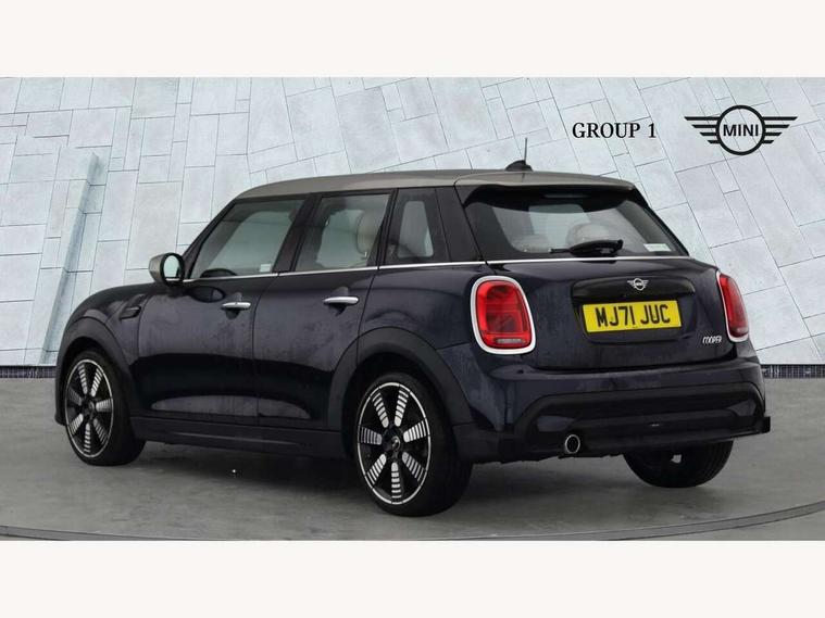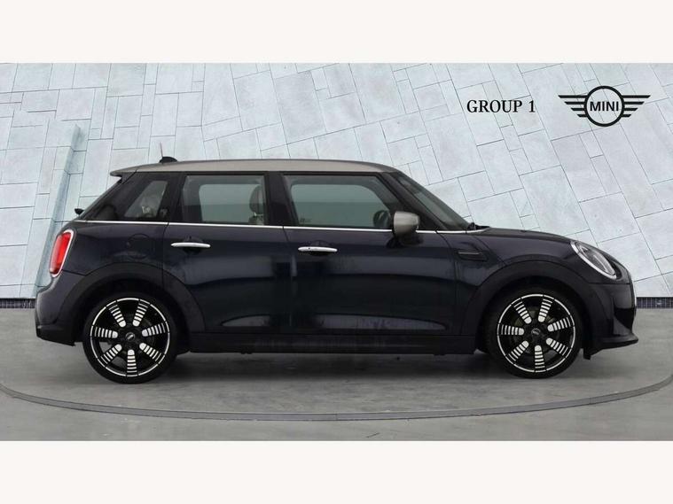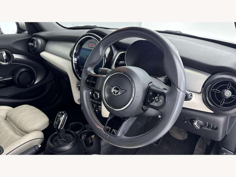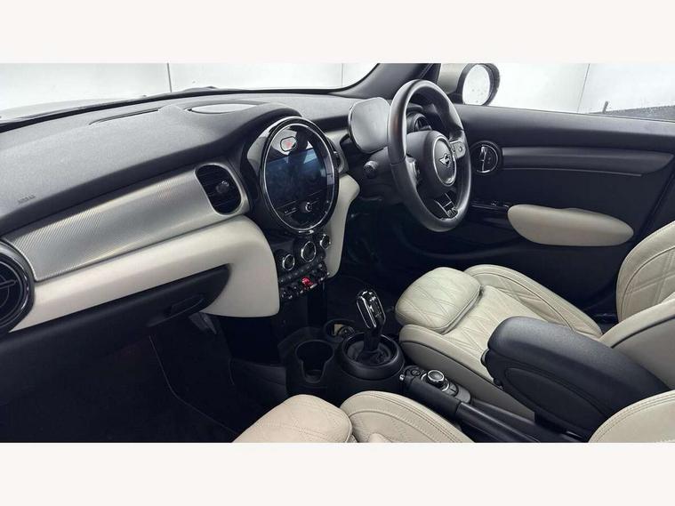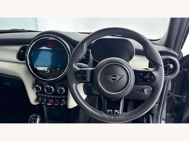 Automatic start/stop function with brake energy recuperation, Compatible mobile phone bluetooth with audio streaming, Cruise control with brake assist, Electro-mechanical speed dependant steering assistance, Flexible car sharing preparation, Instrument cluster, MINI Driving Modes - centre toggle switch to control driving setting (sport, mid and green), Mini E-call, MINI TeleServices, On board computer, Rear park distance control, Service interval indicator, Double Vanos system, Fully variable valve control, Gear change indicator display, High precision injection, Performance Control, Steptronic transmission with double clutch, 6 speakers in front door trims and underneath front seats, 8.8" touchscreen with LED ring, FM tuner and DAB digital radio, Automatic headlight activation switch, Body colour fuel filler cap, Chrome line exterior - radiator grille bars, tailgate handle, lower front grille grating and rear central fog-light, Dynamic brake lights, Electric front+rear windows, Heated rear window, Heated windscreen washer jets, LED headlight with closed ring and daytime driving lights, Metal door sill strips with MINI imprint, Model logo Cooper on right of tailgate, Rain sensor window wipers, Rear fog lights, Rear LED lights with union jack design, Rear window wiper, Side scuttle panel with integrated indicator, Sun/heat protection glass, White indicator lenses, 12V Accessory socket in centre console, 4 lashing eyes in luggage compartment, 60/40 split folding rear seat, Anthracite headliner including grab handles and clothes hooks, Carbon black colour line - Knee roll and door armrest, Chrome interior highlights, Chrome line interior - air vents, gear lever base, door handles and speakers in doors, Cupholders, Front and rear head restraints, Front and rear isofix with front passenger airbag deactivation, Glove compartment, Height and length steering column adjustment, Interior lighting with 12 different colours across the dashboard, underneath door bezel with illuminated laser-engraved design on central display, Leatherette gearshift lever and handbrake gaiters, LED reading lights, vanity mirror lights, front foot well light and spotlight on front seats, Manual air conditioning, Mechanical seat adjustment - forward/back & backrest for front seats and driver seat height adjust, MINI yours badge on exterior pillar, Multifunction steering wheel, Storage compartments in doors, Sunvisors with vanity mirrors, Velour floor mats, Walknappa leather steering wheel with grey seam and MINI Yours badge on Piano Black lower steering wheel spoke, 3 point seatbelts on all five seats, 6 Airbags - front, side, head and seat belt tensioners, Anti-lock braking system (ABS), DSC - Dynamic Stability Control, Front and rear disc brakes, Hill start assist, Single tone fanfare horn, Tyre pressure monitoring system, Alarm system with tilt sensor, monitoring doors, bonnet interior and tailgate, Electronic vehicle immobiliser, Start/stop toggle with keyless go, Tool kit,