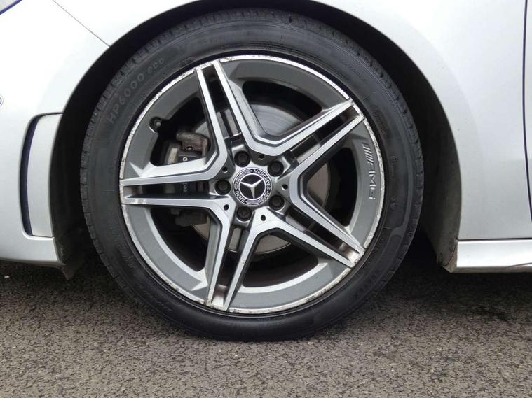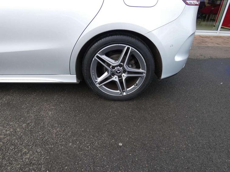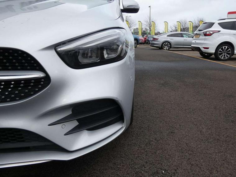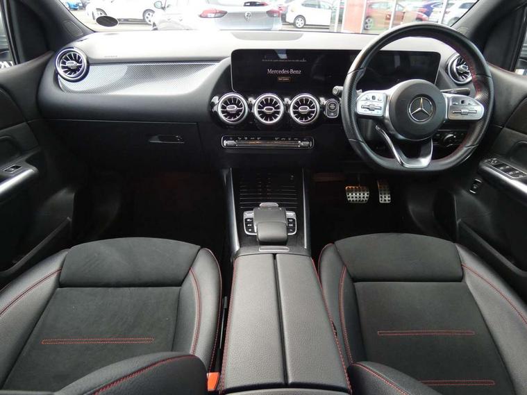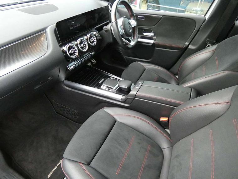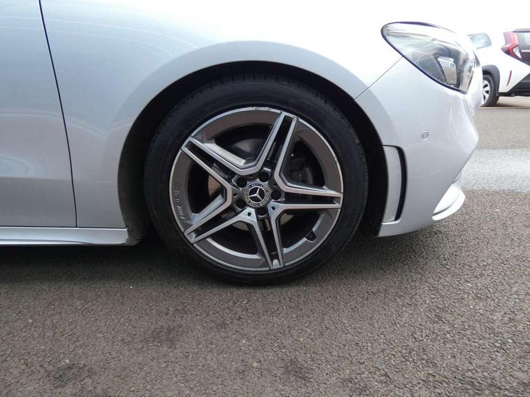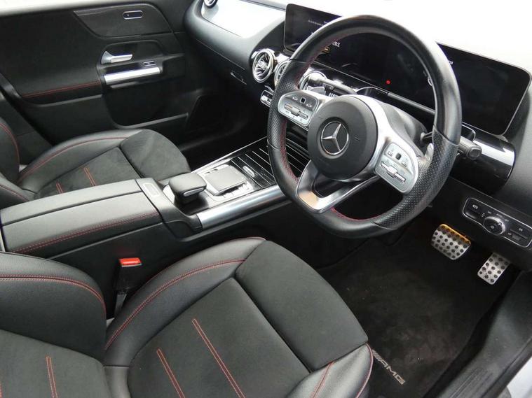 10.25" Digital instrument cluster display screen, 10.25" media display, Active lane keeping assist, Attention assist - Monitors steering behaviour and long journey fatigue, Brake pad wear indicator warning light, Cruise control + speed limiter, Direct steer system, Dual bluetooth interfaces, DYNAMIC SELECT with a choice of driving modes (ECO, Comfort, Sport and Individual), Easy-pack tailgate, ECO start/stop function, Fluid level warning indicator for fuel, oil, coolant and washer fluid, Lamp failure indicator, Live traffic information, MBUX multimedia system with Hey Mercedes, DAB Digital Radio and hard disc navigation, Mercedes me connect including emergency call system, accident recovery, breakdown and maintenance management, Mercedes me remote services, Outside temperature gauge, Owners manual and service booklet in English, Pre-installation for private car sharing, Preinstallation for Mercedes Benz link, Service indicator (ASSYST), Smartphone integration with Apple CarPlay and Android auto, Speed limit assist, Speed sensitive power steering, Trip computer in multifunction display with current consumption indicator, Wireless charging, Lowered comfort suspension, Rear axle multi-link, 2 USB ports (type C) in rear stowage compartment and one in front of center console, Mercedes-Benz advanced sound system - 225W, 4 Electric Front and Rear windows, Active radiator shutters open for cooling air and close when not needed to improve aerodynamics and fuel efficiency, Adaptive brake lights, AMG body styling - AMG front apron with chrome front splitter, AMG side sill panels and AMG rear apron with chrome trim and visible exhaust tailpipe, Body coloured bumpers, Body coloured door handles, Body coloured side skirts, Car wash function, Chrome beltline strips, Chrome weather strip, Diamond radiator grille pins in chrome with silver painted louvres and chrome insert, Electric adjustable and heated door mirrors with integrated LED side indicators, Headlamp assist automatic headlamp activation, Heated glass rear windscreen + timer control, High level LED third brake light, Interior mirror with black reading lamps and frameless, LED high performance headlamps with integrated LED daytime running lights, LED tail lamp, Pre-installation for trailer coupling, Privacy glass, Radio aerial, Rain sensing windscreen wipers with two sensitivity settings, Rear fog lamp, Rear windscreen wiper, Window line trim strip in chrome, 3 spoke multifunction sports steering wheel in nappa leather with flattened bottom and perforated grip area, 40:20:40 split folding rear seat backrests, Air conditioning - air vents with silver chrome surround, Air conditioning - Two zone thermotronic luxury automatic climate control with display, Artico man-made leather/Microfibre Dinamica upholstery with red contrast stitching, Automatic child seat recognition sensor, Black roof lining, Brushed stainless steel sports pedals with rubber studs, Floor mats with stitched AMG lettering, Freight packaging without tie-down hooks, Front and rear head restraints, Front centre armrest with stowage, Front seat cushion length adjustment, Front sports seats with adjustable head restraints, Galvanished gear shift paddles on steering wheel, Heated front seats, Illuminated front door sills with changeable cover, Illuminated glove compartment stowage, Interior lighting - 64 colour Ambient lighting, Luggage net on driver/front passenger seat backrest, Manually adjustable front seats, Manually height and reach adjustable steering column, Rear armrest with 2 cupholders, Rear seats with fore/aft adjustment, Seat occupancy sensor for front passenger seat, Stowage compartment in centre console with retractable cover, Sunvisors with illuminated vanity mirrors, Touchpad on center console, Twin front cupholders, Two outer rear seat isofix and top tether child seat fixing points, Interior lighting with light and sight pack - B Class, Mirror package - B Class, Parking pack - B Class, Seat comfort pack - B Class, 3 rear three point seatbelts, Active bonnet pedestrian safety measure which detects an impact and raises bonnet, Active brake assist includes forward collision warning system with autonomous braking, Adaptive brake assist with hold function and hill start assist, Airbags - kneebag for driver, Anti-lock braking system (ABS) with brake assist, Black seat belts, Childproof locks manually operated for rear doors and electrically operated for rear power windows, Crash responsive emergency lighting, Curve dynamic assist, Driver and front passenger head and sidebags, Driver and front passenger windowbags, Dual stage driver/passenger airbags, Electric parking brake, Electronic stability programme with acceleration skid control, Front and rear seatbelt reminder, Front brake callipers with Mercedes Benz lettering, Tyre pressure monitoring system, Warning triangle and first aid kit, Alarm system with immobiliser and interior protection -Thatcham category 1, Keyless entry lock/unlock, Remote central locking and crash sensor with emergency opening function, Urban guard vehicle protection - Anti theft alarm system, tow away protection with visual and acoustic warning and alarm siren, Carbon structure trim, Light switch in high-gloss black with ring in silver chrome, 18" AMG 5 twin spoke design alloy wheels painted in titanium grey with high sheen finish, Summer tyres, Tirefit tyre sealant kit,