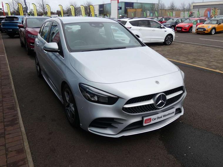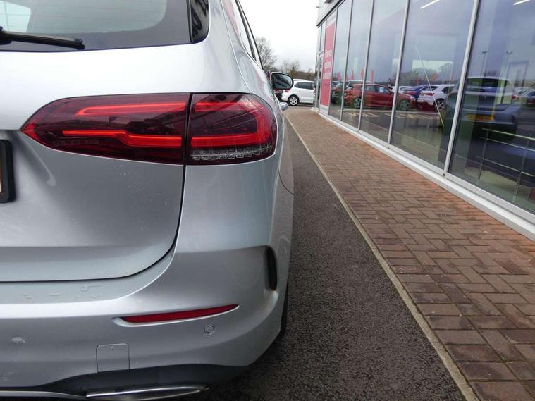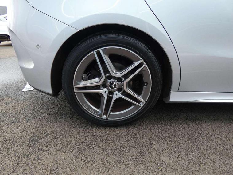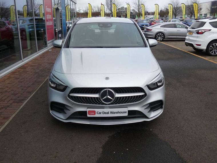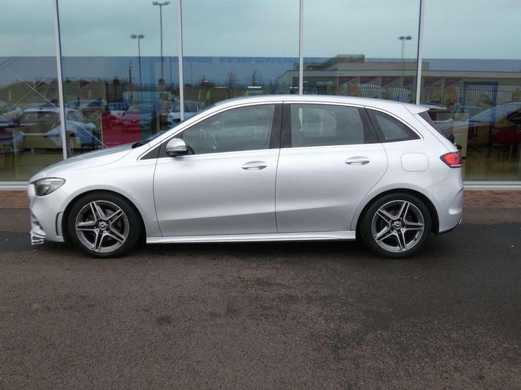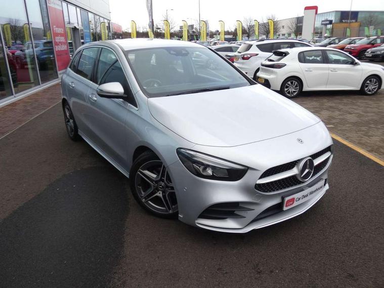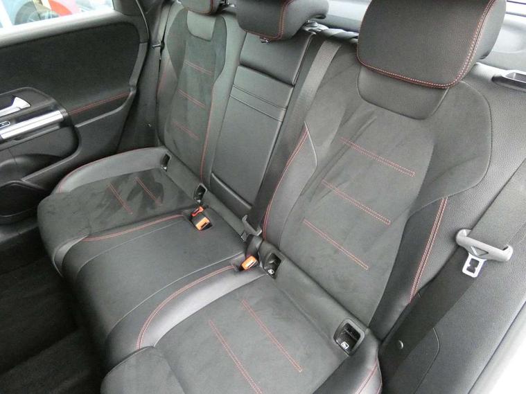 10.25" Digital instrument cluster display screen, 10.25" media display, Active lane keeping assist, Attention assist - Monitors steering behaviour and long journey fatigue, Brake pad wear indicator warning light, Cruise control + speed limiter, Direct steer system, Dual bluetooth interfaces, DYNAMIC SELECT with a choice of driving modes (ECO, Comfort, Sport and Individual), Easy-pack tailgate, ECO start/stop function, Fluid level warning indicator for fuel, oil, coolant and washer fluid, Lamp failure indicator, Live traffic information, MBUX multimedia system with Hey Mercedes, DAB Digital Radio and hard disc navigation, Mercedes me connect including emergency call system, accident recovery, breakdown and maintenance management, Mercedes me remote services, Outside temperature gauge, Owners manual and service booklet in English, Pre-installation for private car sharing, Preinstallation for Mercedes Benz link, Service indicator (ASSYST), Smartphone integration with Apple CarPlay and Android auto, Speed limit assist, Speed sensitive power steering, Trip computer in multifunction display with current consumption indicator, Wireless charging, Lowered comfort suspension, Rear axle multi-link, 2 USB ports (type C) in rear stowage compartment and one in front of center console, Mercedes-Benz advanced sound system - 225W, 4 Electric Front and Rear windows, Active radiator shutters open for cooling air and close when not needed to improve aerodynamics and fuel efficiency, Adaptive brake lights, AMG body styling - AMG front apron with chrome front splitter, AMG side sill panels and AMG rear apron with chrome trim and visible exhaust tailpipe, Body coloured bumpers, Body coloured door handles, Body coloured side skirts, Car wash function, Chrome beltline strips, Chrome weather strip, Diamond radiator grille pins in chrome with silver painted louvres and chrome insert, Electric adjustable and heated door mirrors with integrated LED side indicators, Headlamp assist automatic headlamp activation, Heated glass rear windscreen + timer control, High level LED third brake light, Interior mirror with black reading lamps and frameless, LED high performance headlamps with integrated LED daytime running lights, LED tail lamp, Pre-installation for trailer coupling, Privacy glass, Radio aerial, Rain sensing windscreen wipers with two sensitivity settings, Rear fog lamp, Rear windscreen wiper, Window line trim strip in chrome, 3 spoke multifunction sports steering wheel in nappa leather with flattened bottom and perforated grip area, 40:20:40 split folding rear seat backrests, Air conditioning - air vents with silver chrome surround, Air conditioning - Two zone thermotronic luxury automatic climate control with display, Artico man-made leather/Microfibre Dinamica upholstery with red contrast stitching, Automatic child seat recognition sensor, Black roof lining, Brushed stainless steel sports pedals with rubber studs, Floor mats with stitched AMG lettering, Freight packaging without tie-down hooks, Front and rear head restraints, Front centre armrest with stowage, Front seat cushion length adjustment, Front sports seats with adjustable head restraints, Galvanished gear shift paddles on steering wheel, Heated front seats, Illuminated front door sills with changeable cover, Illuminated glove compartment stowage, Interior lighting - 64 colour Ambient lighting, Luggage net on driver/front passenger seat backrest, Manually adjustable front seats, Manually height and reach adjustable steering column, Rear armrest with 2 cupholders, Rear seats with fore/aft adjustment, Seat occupancy sensor for front passenger seat, Stowage compartment in centre console with retractable cover, Sunvisors with illuminated vanity mirrors, Touchpad on center console, Twin front cupholders, Two outer rear seat isofix and top tether child seat fixing points, Interior lighting with light and sight pack - B Class, Mirror package - B Class, Parking pack - B Class, Seat comfort pack - B Class, 3 rear three point seatbelts, Active bonnet pedestrian safety measure which detects an impact and raises bonnet, Active brake assist includes forward collision warning system with autonomous braking, Adaptive brake assist with hold function and hill start assist, Airbags - kneebag for driver, Anti-lock braking system (ABS) with brake assist, Black seat belts, Childproof locks manually operated for rear doors and electrically operated for rear power windows, Crash responsive emergency lighting, Curve dynamic assist, Driver and front passenger head and sidebags, Driver and front passenger windowbags, Dual stage driver/passenger airbags, Electric parking brake, Electronic stability programme with acceleration skid control, Front and rear seatbelt reminder, Front brake callipers with Mercedes Benz lettering, Tyre pressure monitoring system, Warning triangle and first aid kit, Alarm system with immobiliser and interior protection -Thatcham category 1, Keyless entry lock/unlock, Remote central locking and crash sensor with emergency opening function, Urban guard vehicle protection - Anti theft alarm system, tow away protection with visual and acoustic warning and alarm siren, Carbon structure trim, Light switch in high-gloss black with ring in silver chrome, 18" AMG 5 twin spoke design alloy wheels painted in titanium grey with high sheen finish, Summer tyres, Tirefit tyre sealant kit,