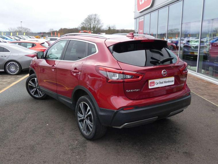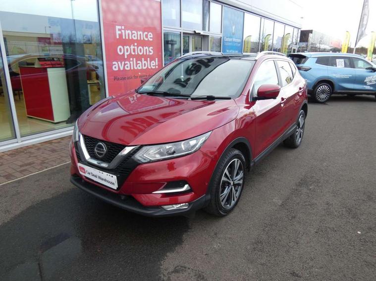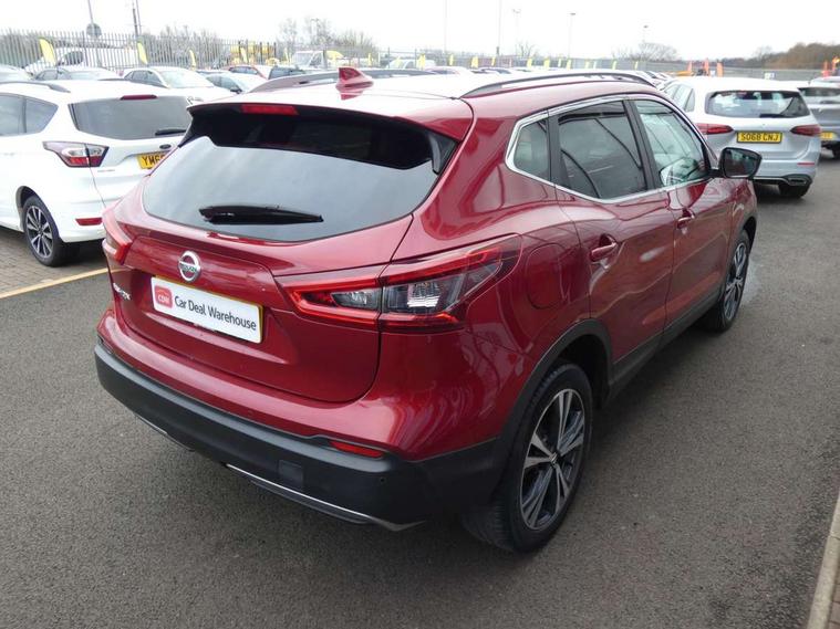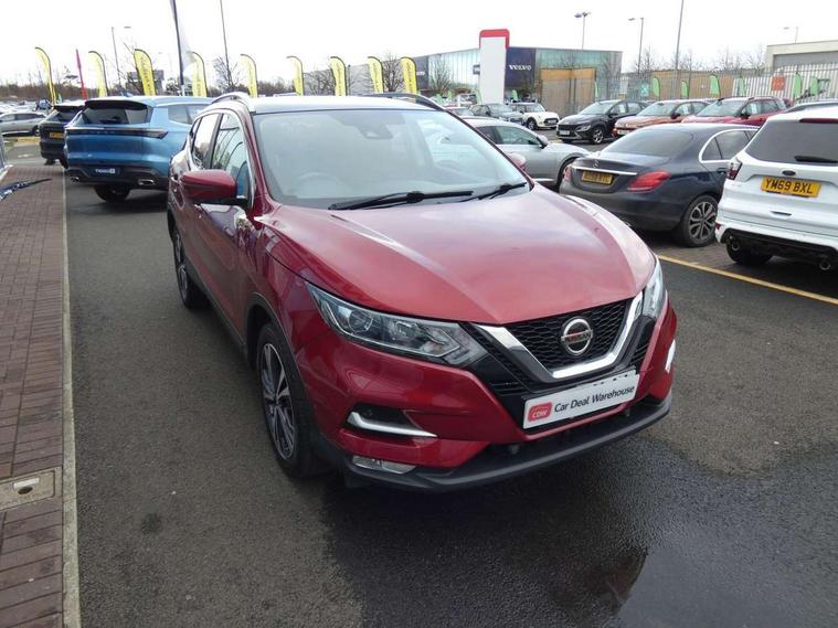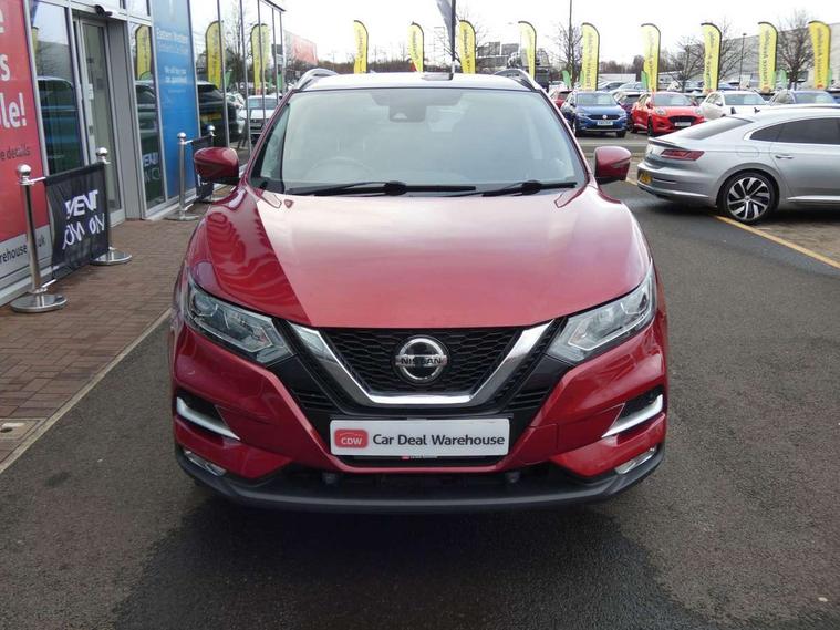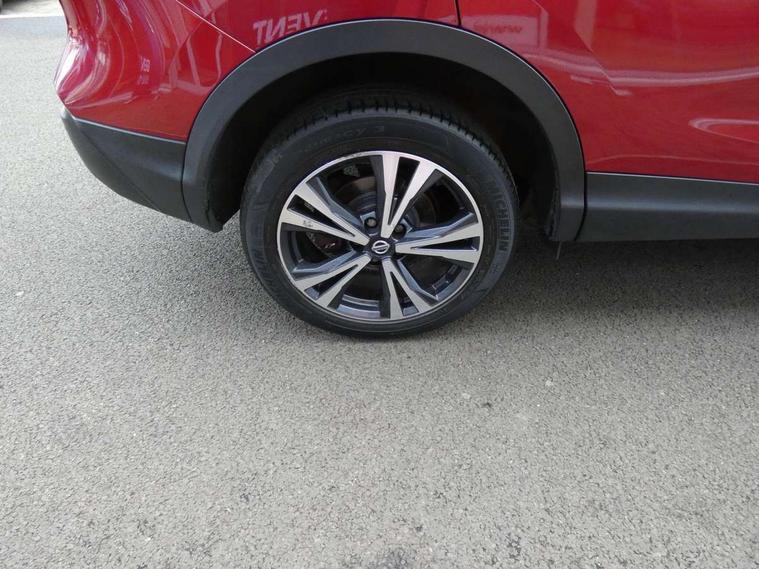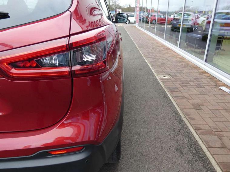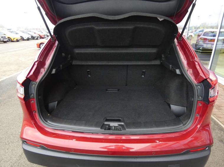 Advanced drive assist display 5'' TFT coloured screen, Android Auto, Apple CarPlay preparation, Bluetooth connectivity, Electric speed sensitive power steering, Front parking sensors, Intelligent around view monitor, Intelligent parking assist, Lane departure warning system, Nissan connect evo 7" touchscreen navigation and entertainment system, Normal or sport selectable steering, Outside temperature sensor, Push button starter, Rear parking sensors, Rear view camera, Service interval indicator, Smartphone integration, Stop/start system, Tomtom connected services, Traffic sign recognition, Trip computer, Voice control system, Diesel particulate filter, 6 speakers, AM/FM radio, CD audio system, Aux-in socket, DAB Digital radio, Rear USB connection, Steering wheel mounted audio controls, USB port, Anti dazzle rear view mirror, Auto wipers, Body colour bumpers, Body coloured door handles, Body coloured door mirrors, Chrome window surround, Daytime running lights dip function when turn signal applied, Electric folding door mirrors, Electric front and rear windows with one touch illuminated window controls, Electric front/rear windows, Electrically adjustable door mirrors, Front fog lights, Halogen headlights, Heated door mirrors, High beam assist, Intelligent auto headlights, LED indicators in door mirrors, Matt silver roof rails, One touch 4x auto windows with illuminated switches, Privacy glass, Rear roof spoiler, Rear wiper with reverse link, Shark fin antenna, Signature LED daytime running lights, Underbody vortex generators, 2 X front 12v power sockets, 3 height adjustable rear headrests, 60/40 split folding rear seat, Ambient lighting, Ambient lighting in centre console, Boot lighting, Centre console storage box/armrest, Chrome interior door handles, Cloth upholstery, Configurable luggage board system, Driver's seat manual height adjust, Dual zone climate control, Front and rear door pockets with bottle holders, Front and rear seat belt pre-tensioners with load limiters, Height adjustable front headrests, ISOFIX restraints on outer rear seats x2, Leather D shaped steering wheel, Leather gear lever, Leather knee pad, Manual height adjustable front passenger seat, Manual lumbar support on driver seat, Manual lumbar support on passenger seat, Parcel shelf stow function under luggage board, Pollen filter, Rear armrest with 2 cupholders, Synthetic leather wrapped door handle with contrasting stitching, Tilt/telescopic adjustable steering wheel, Safety shield plus pack - Qashqai, 6 airbags - Driver, front passenger, curtain and side airbags, ABS, ESP, EBD and brake assist, Auto hold function, Child locks on rear doors, Electronic parking brake, Front and rear seat belt warning, Front passenger airbag deactivation, Height adjustable front seatbelts, Hill start assist, Intelligent emergency braking with pedestrian recognition, Three 3 point rear seatbelts, Tyre pressure monitoring system, Anti-theft immobiliser, Intelligent Key, Remote central locking, Thatcham Cat.1 alarm, Glossy black dash trim, Tyre puncture repair kit,